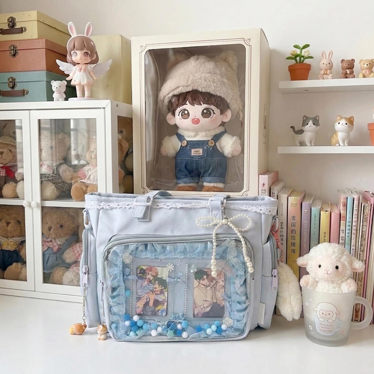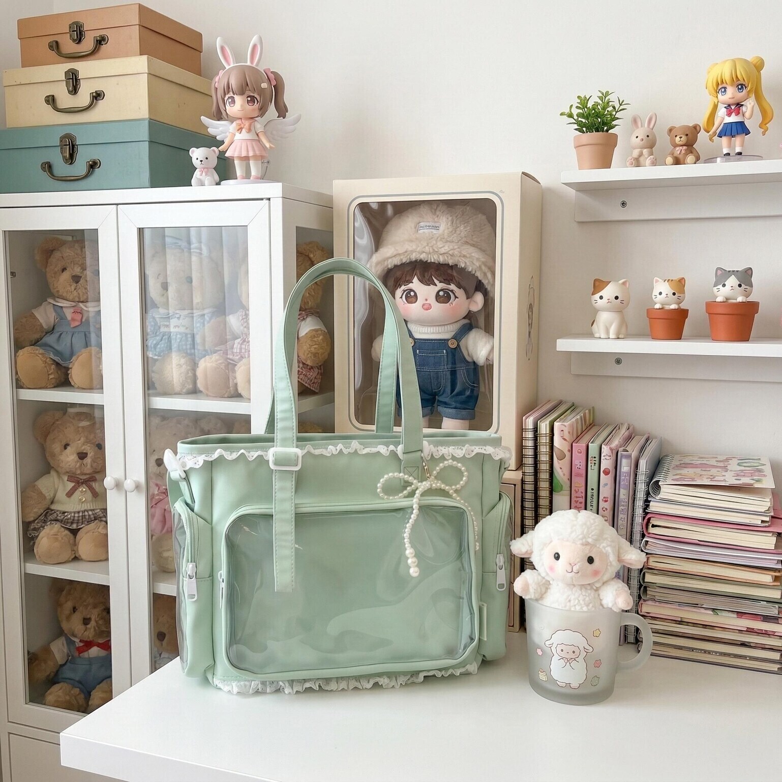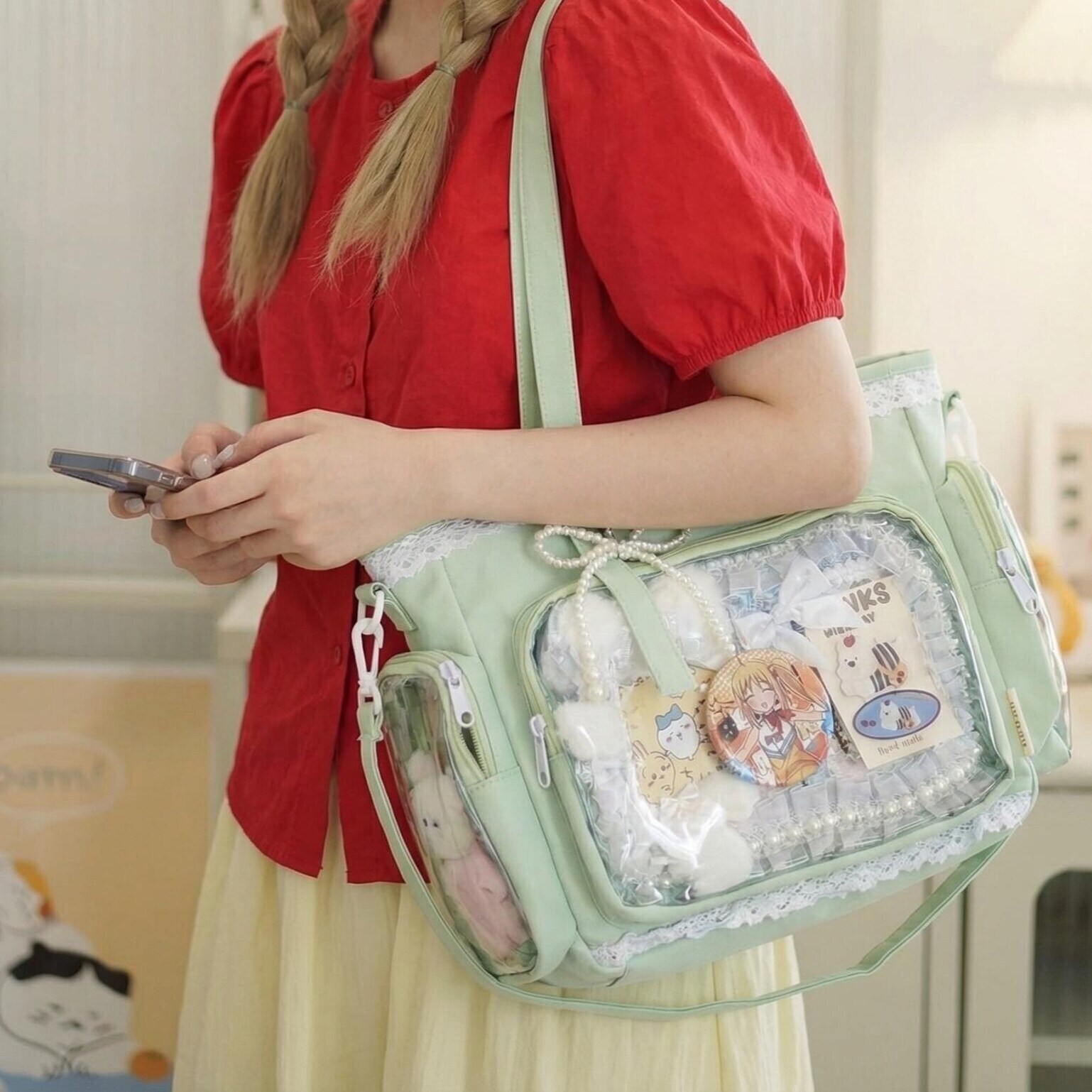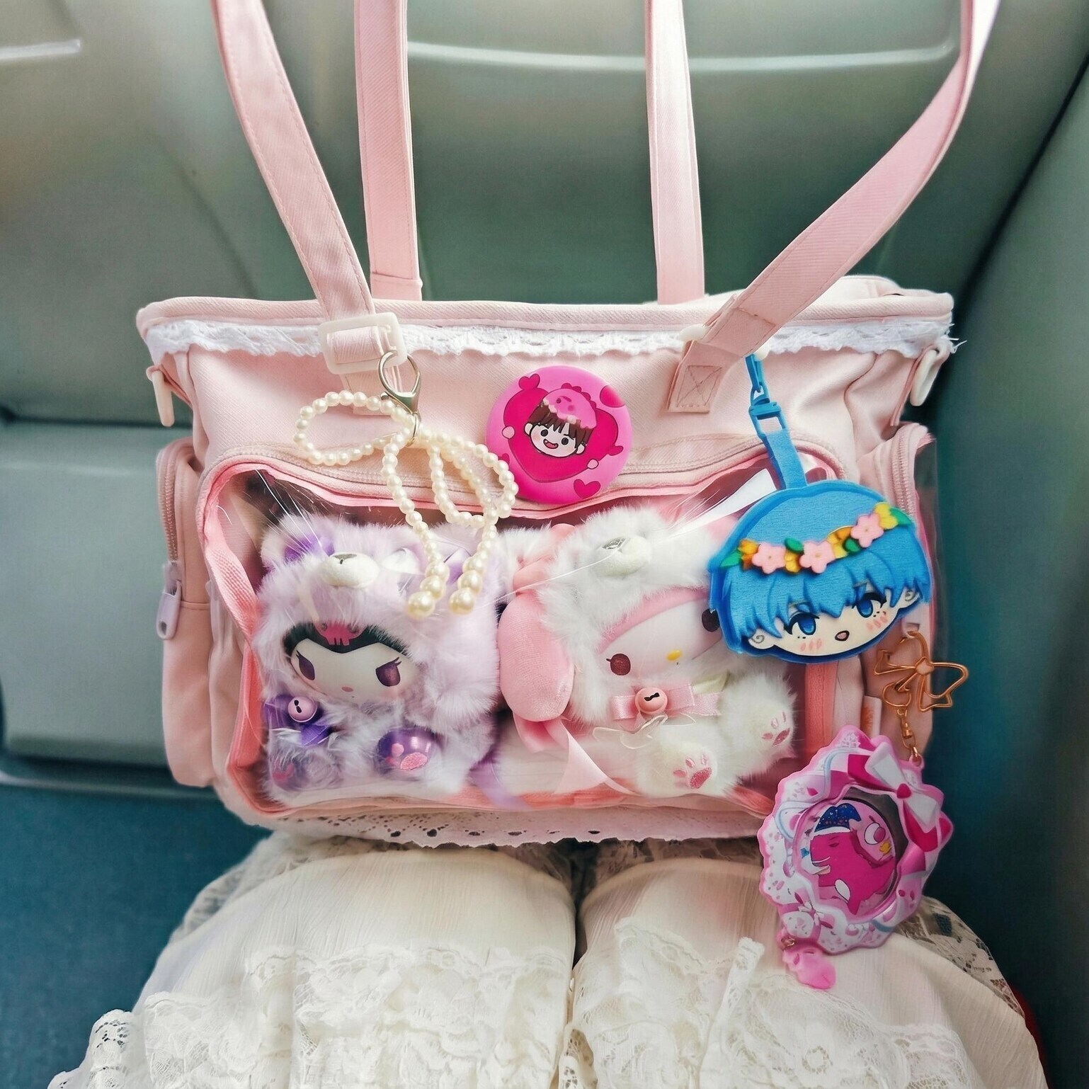 Pastel Kawaii Ita Shoulder Bag with Clear Window for Plushies and Pins