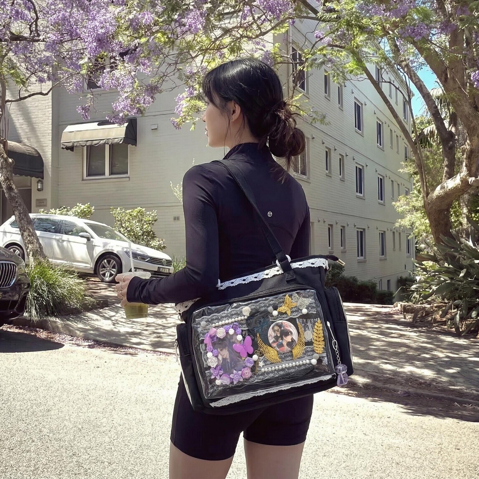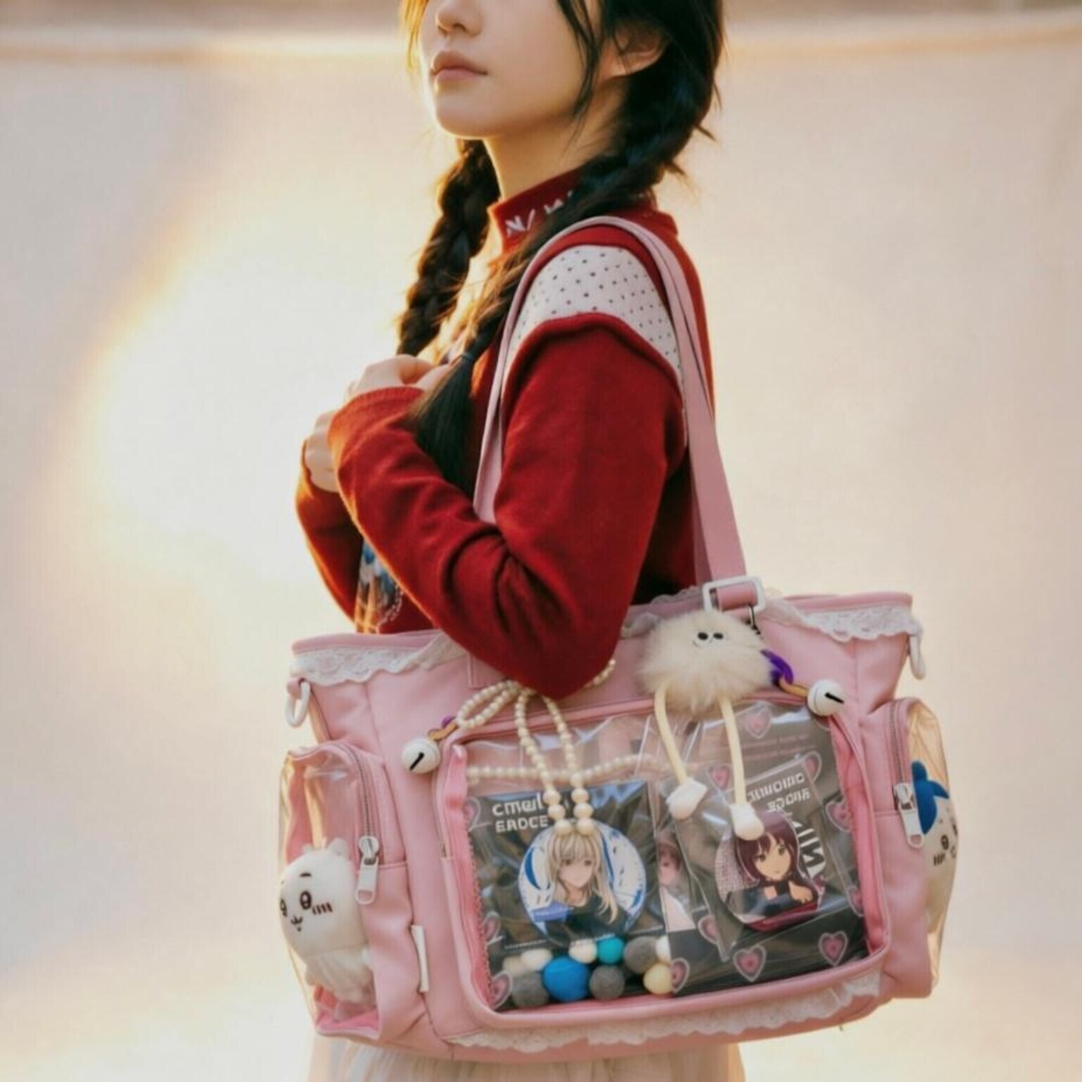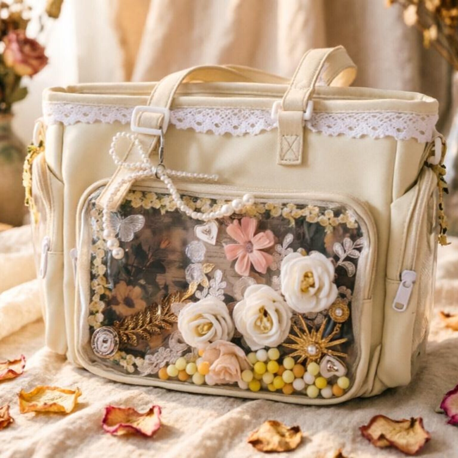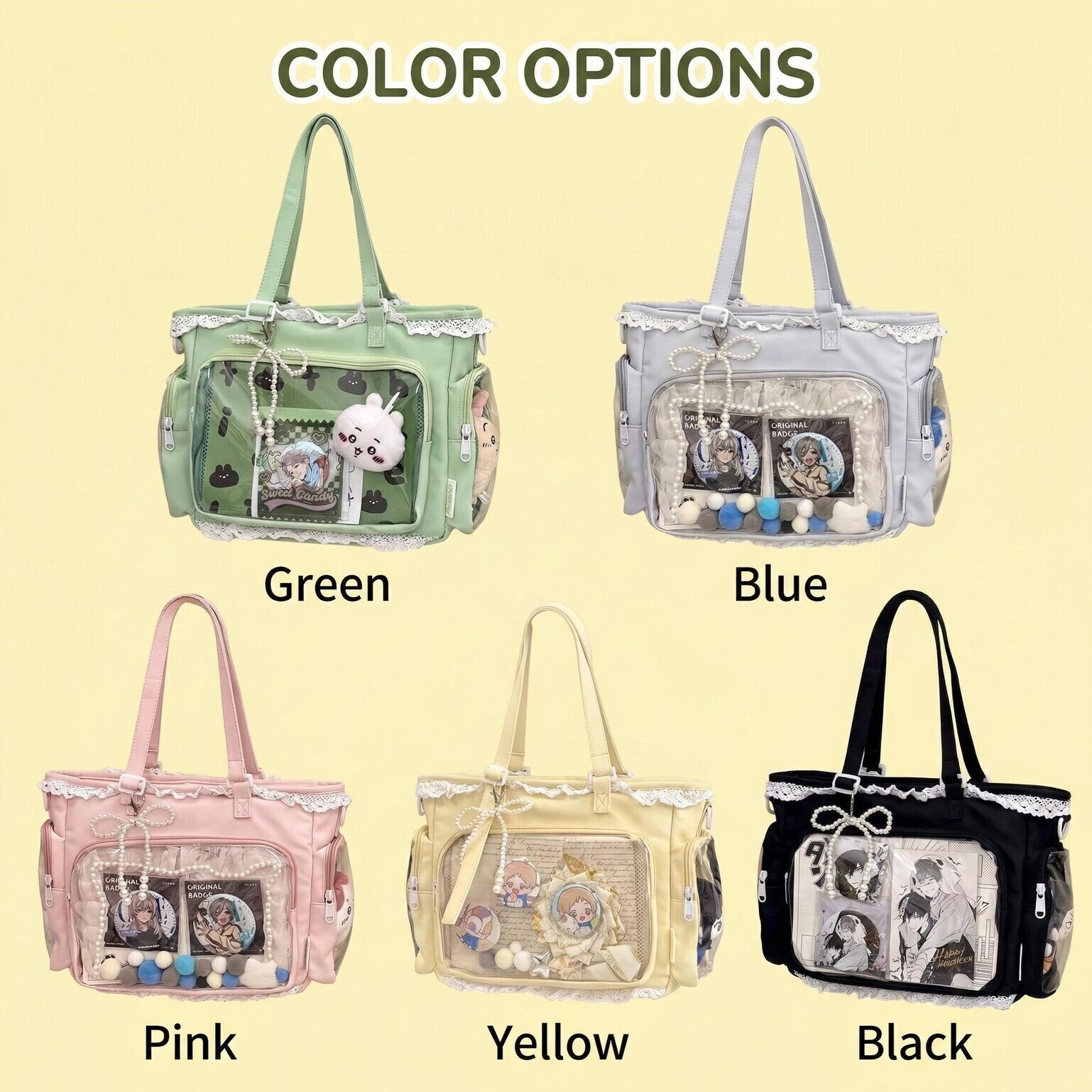 Pastel Kawaii Ita Shoulder Bag with Clear Window for Plushies and Pins