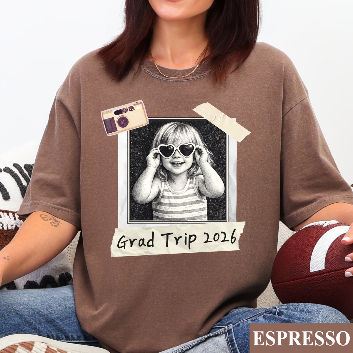 Celebrate your remarkable journey with our Personalised Vintage Photo And Year Senior Shirt Custom Grad. This stylish t-shirt perfectly captures the essence of your graduation milestone, blending nostalgia with a contemporary flair. Made for the modern graduate who wants to stand out, this shirt is an ideal choice for commemorating your achievements while embracing a vintage aesthetic.