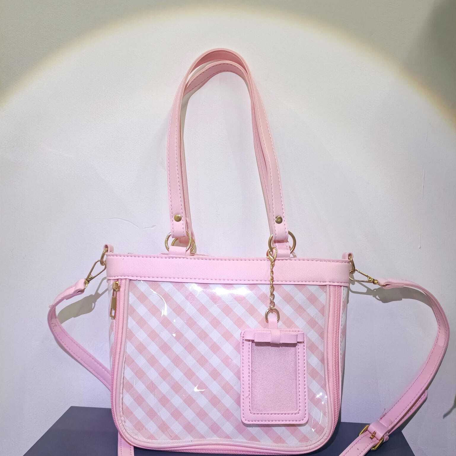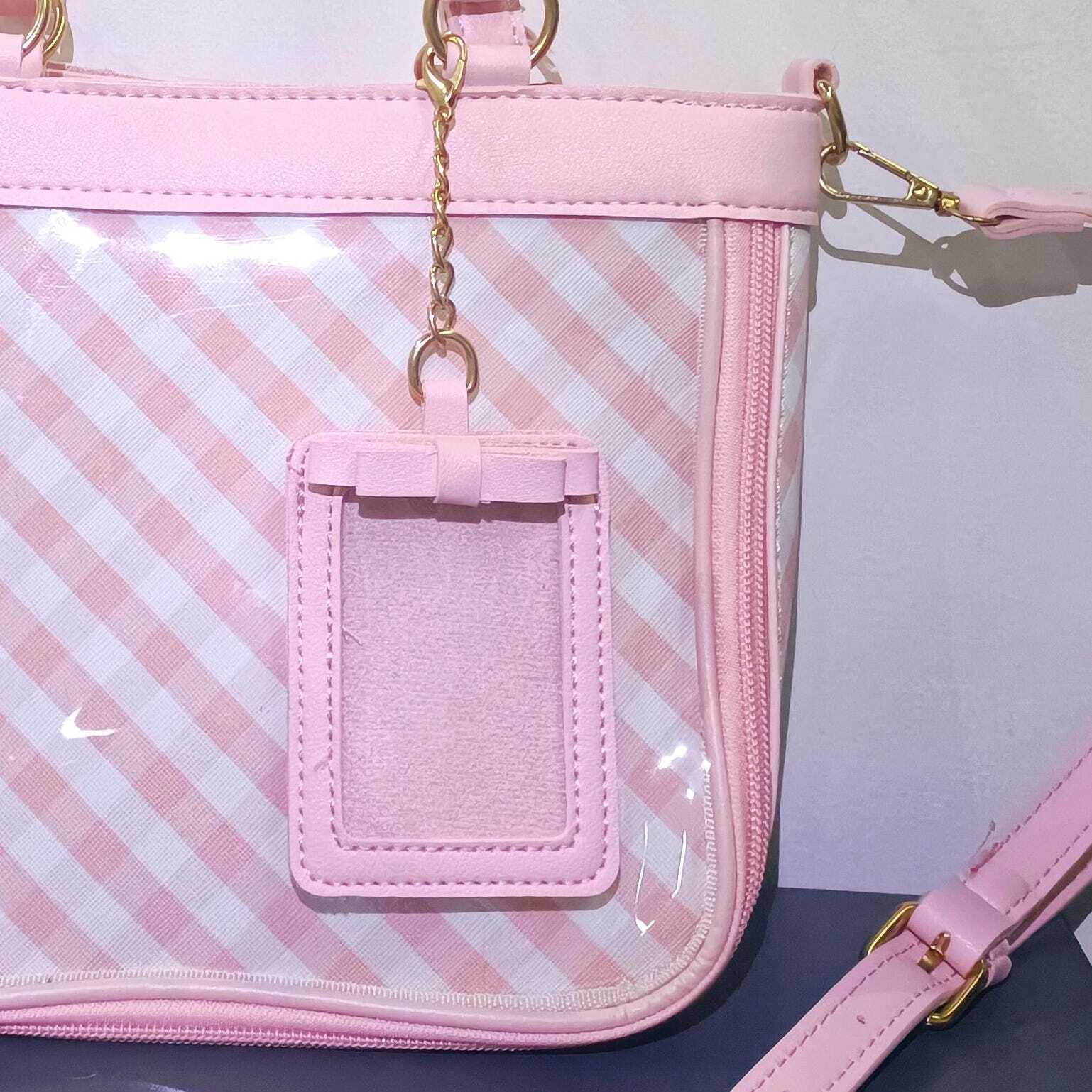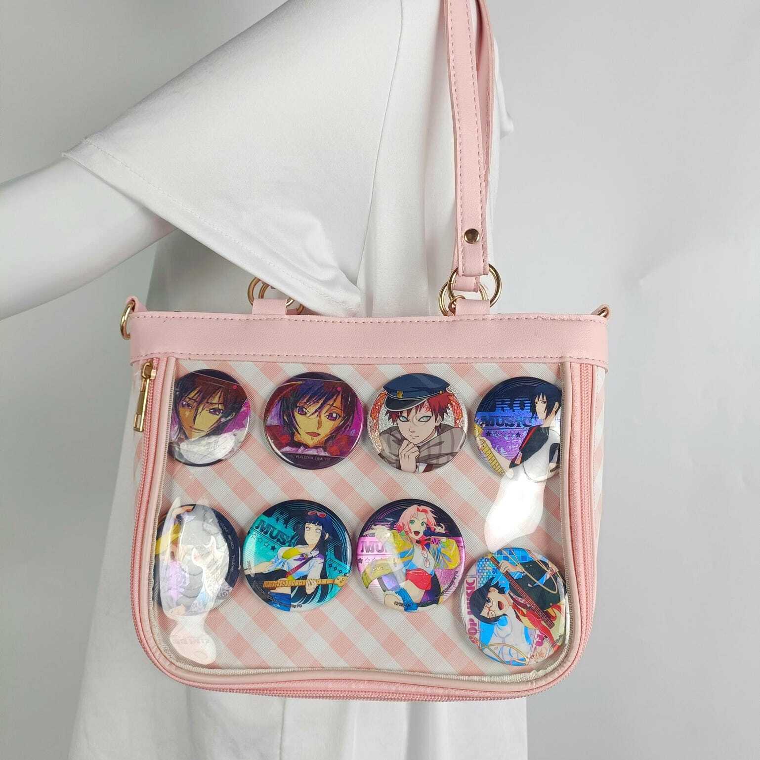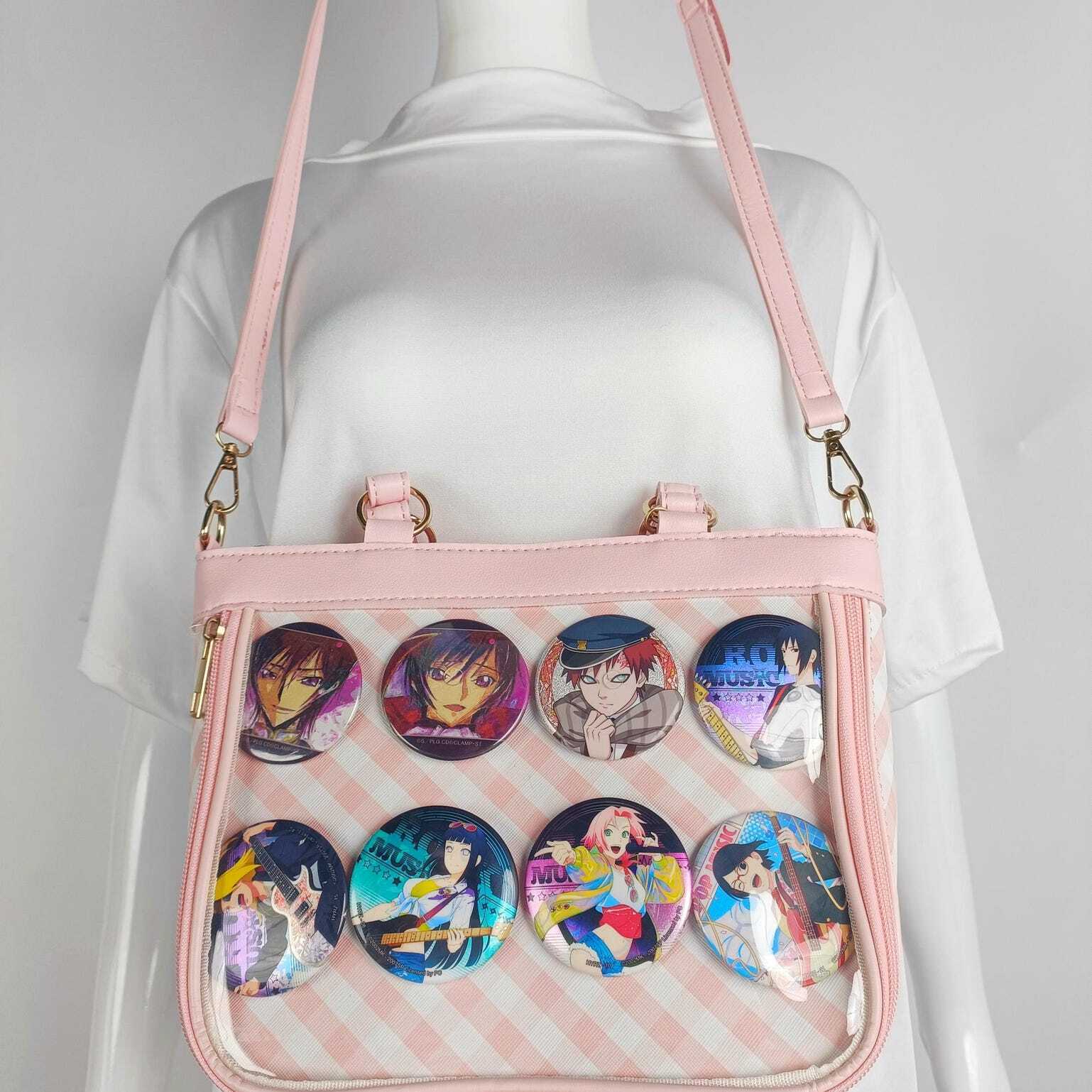 Pink Convertible Ita Bag with Clear Window for Pin Display combines everyday carry with a clear display area for pins, badges, charms, or character merch.