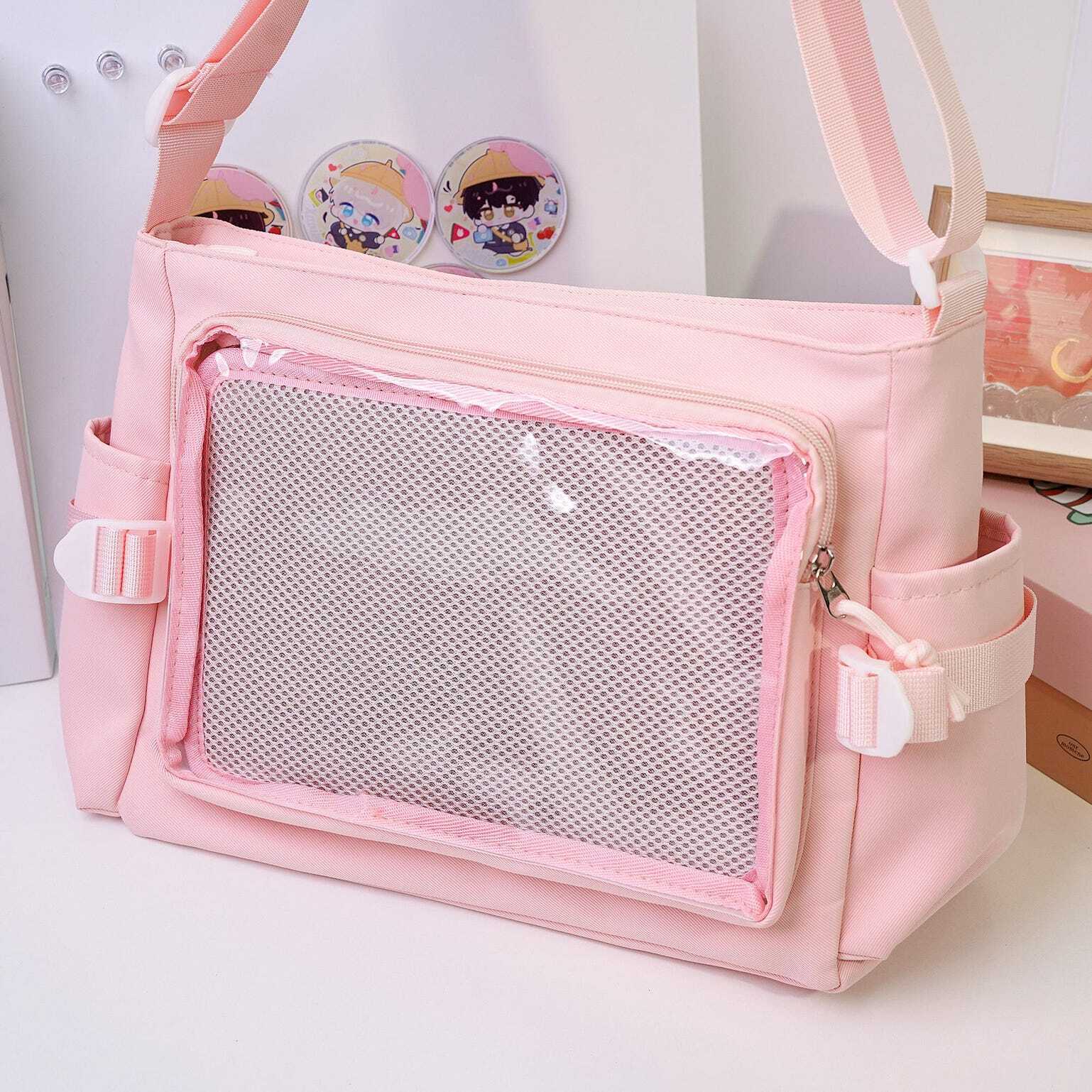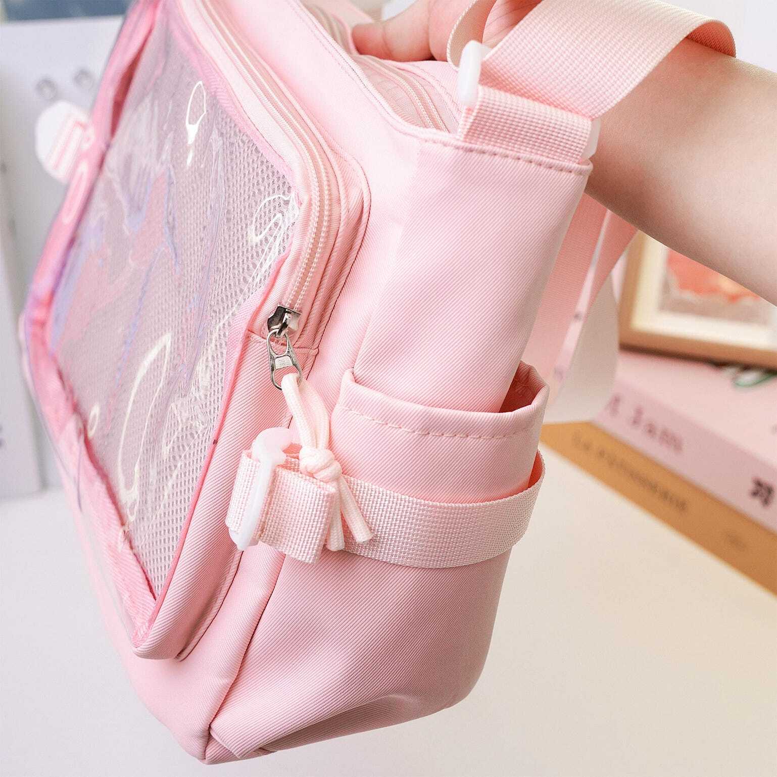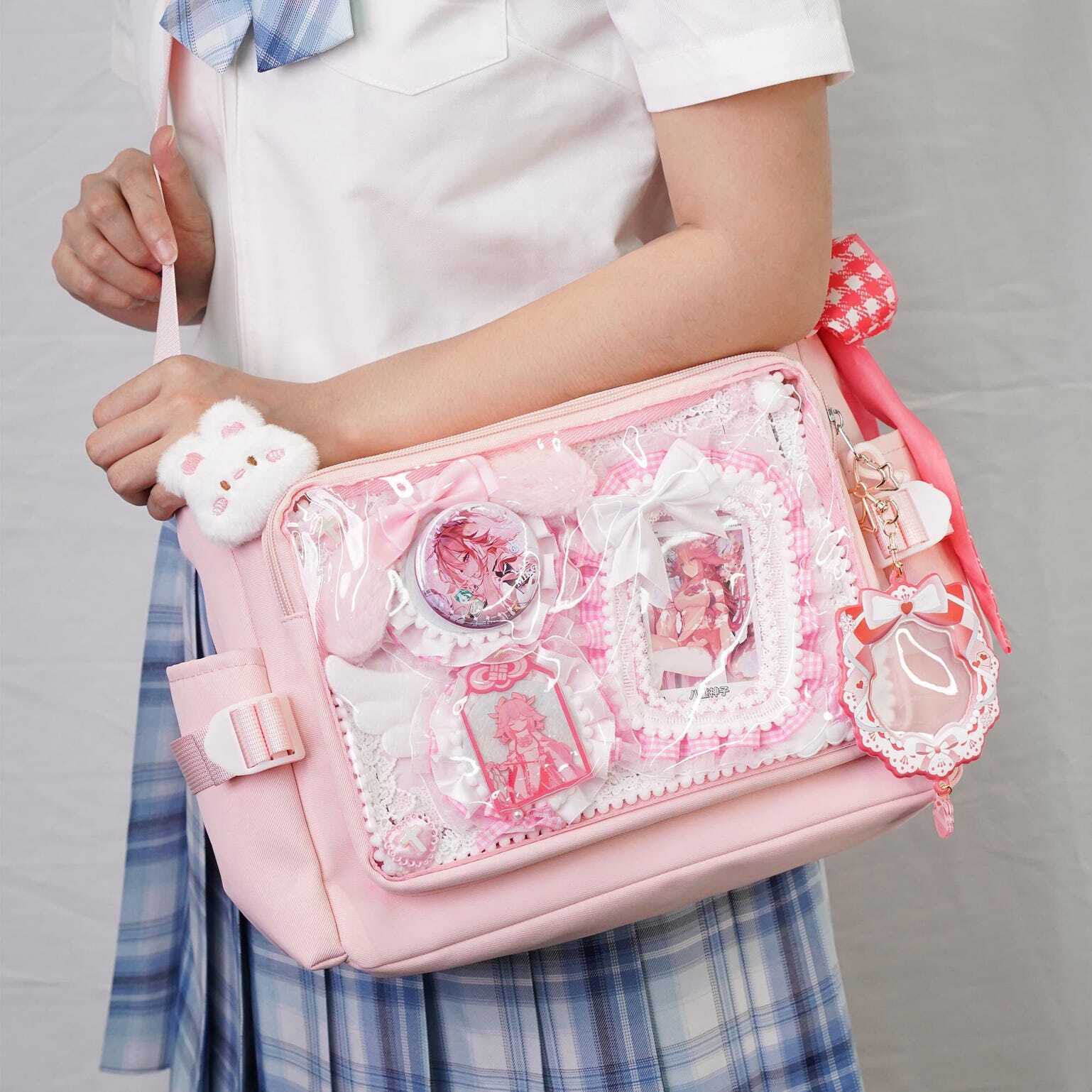 Pink Kawaii Convertible Ita Bag with Clear Window for Plushies and Pins