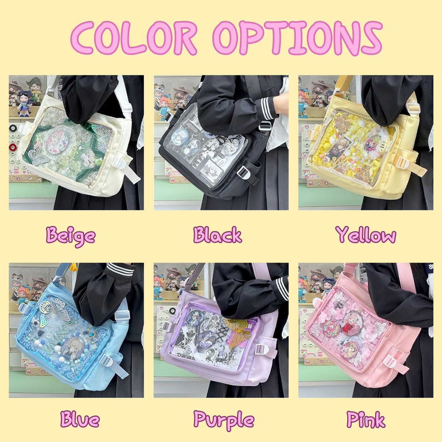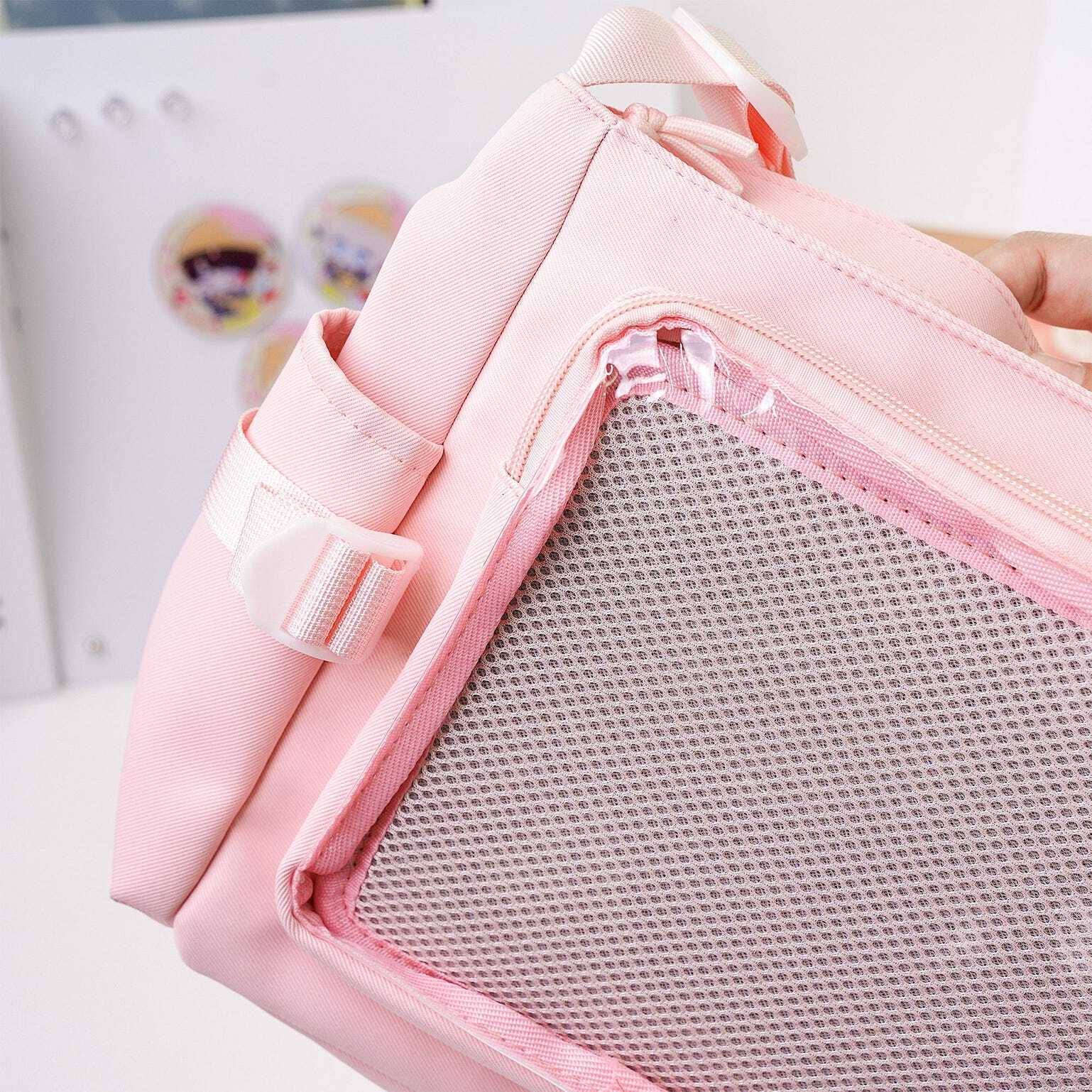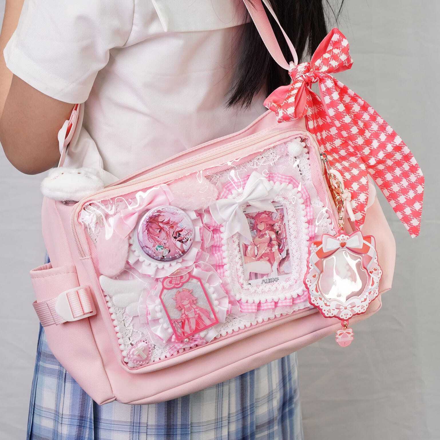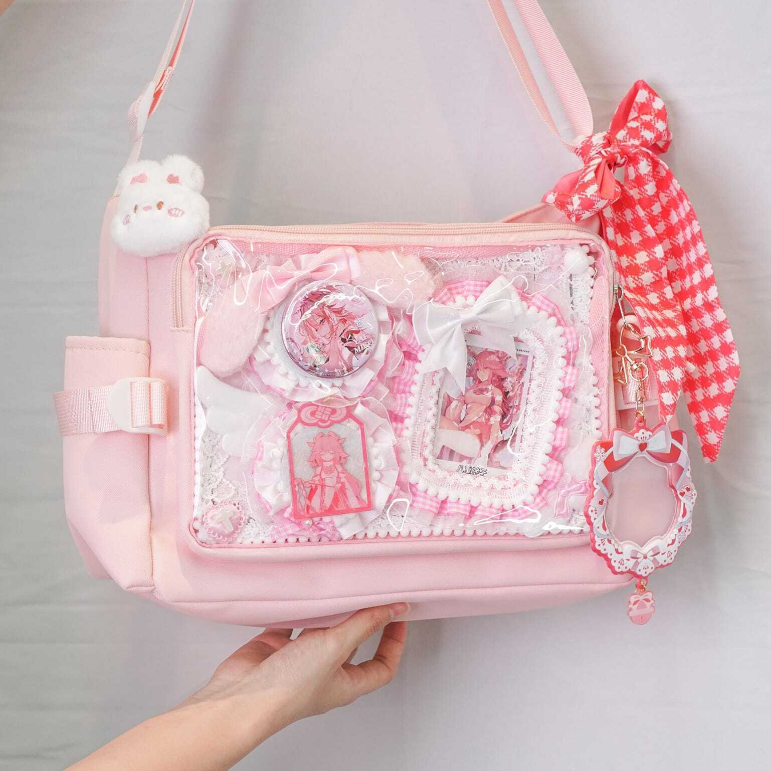 Pink Kawaii Convertible Ita Bag with Clear Window for Plushies and Pins