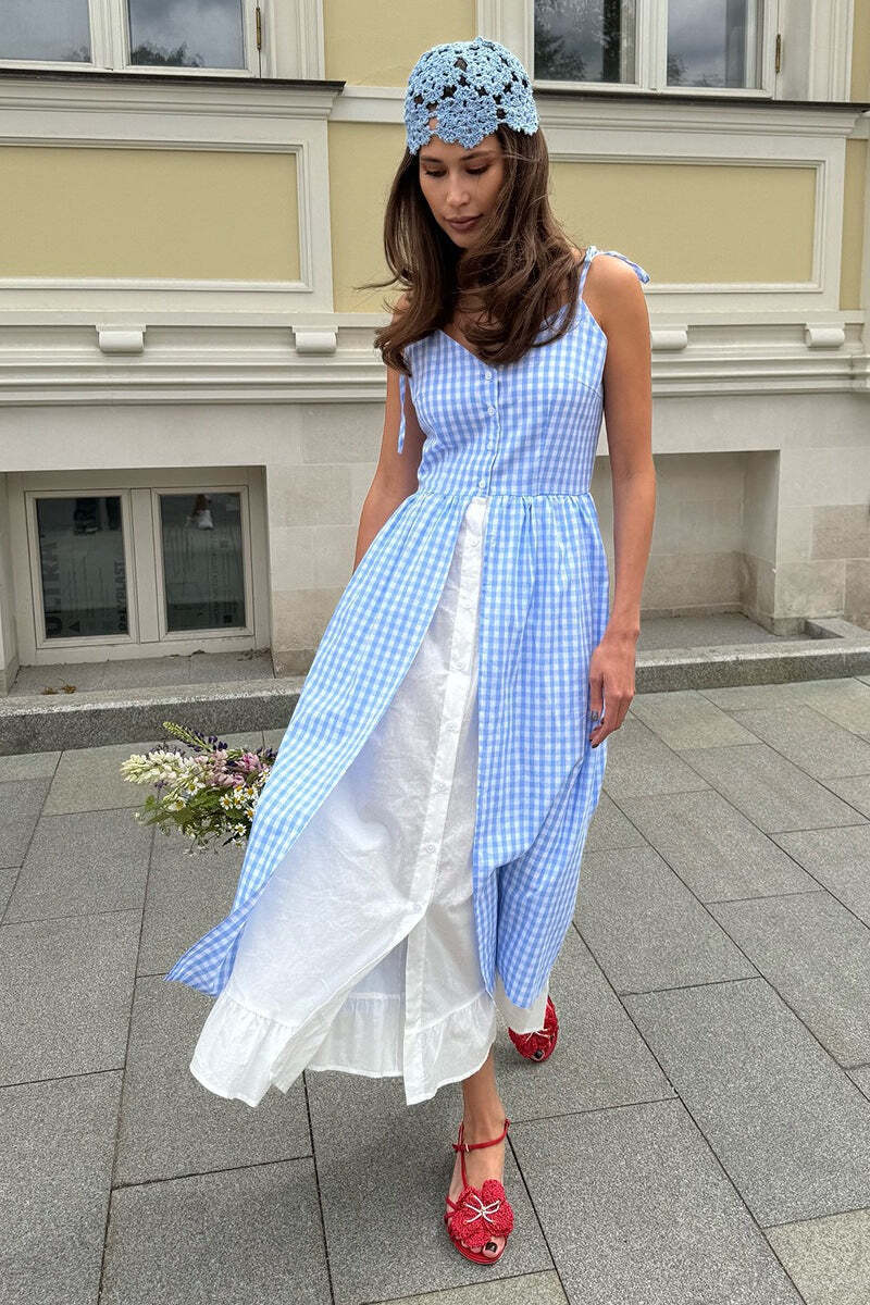 Dresses, two piece sets and bodysuits. Base your size on whichever is larger — bust or hips.