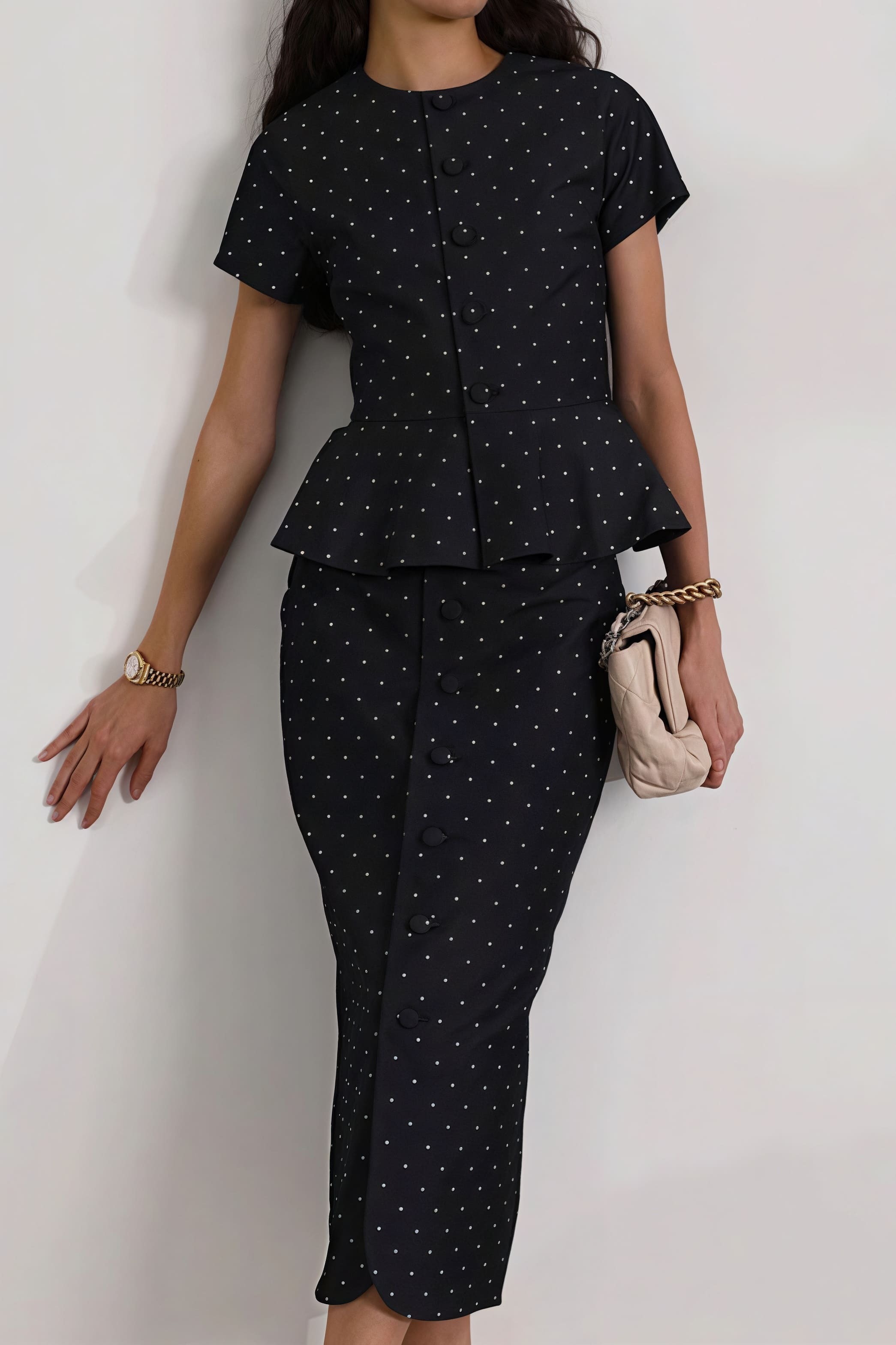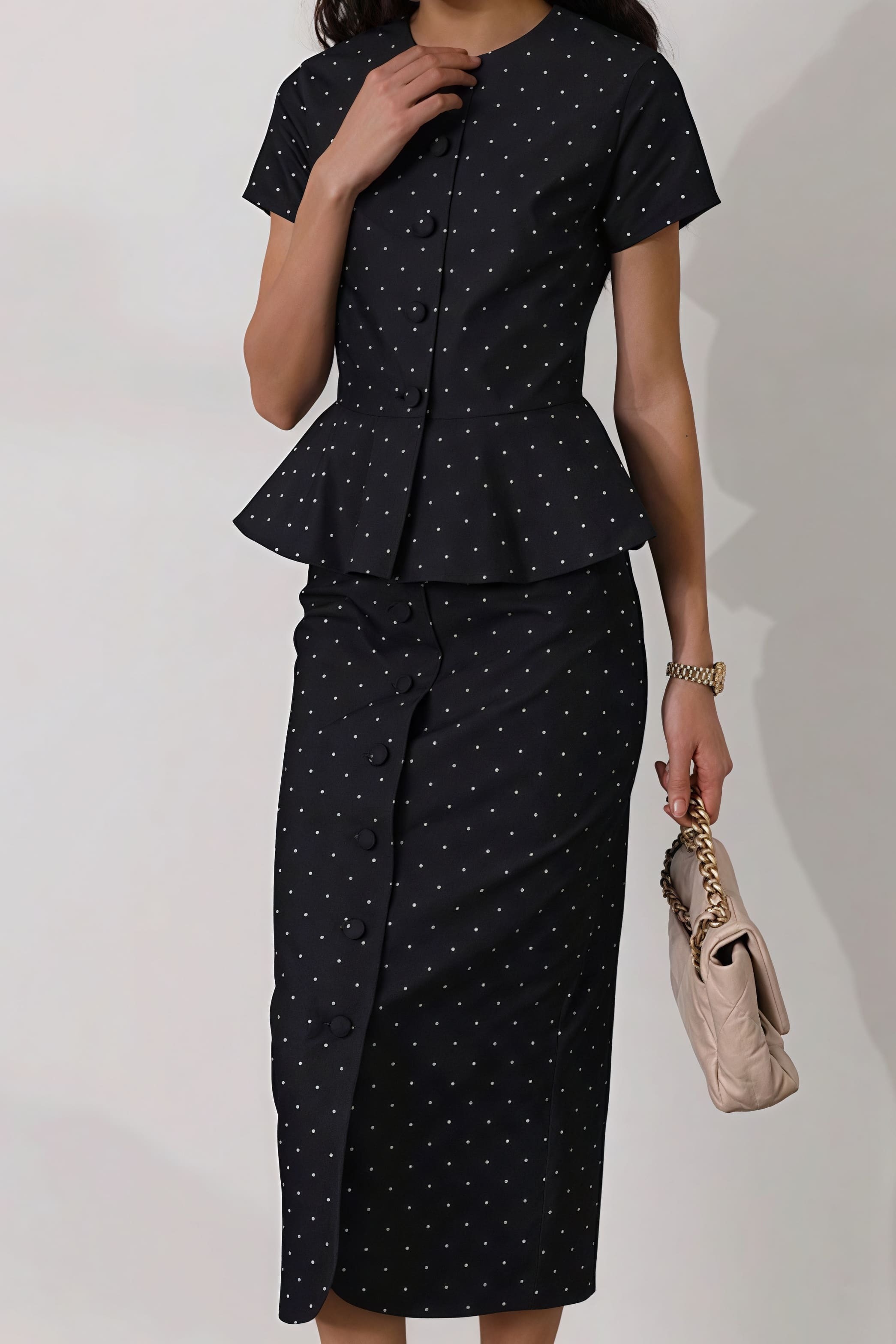 Polka Dot Print Short Sleeve Bodycon Skirt Set