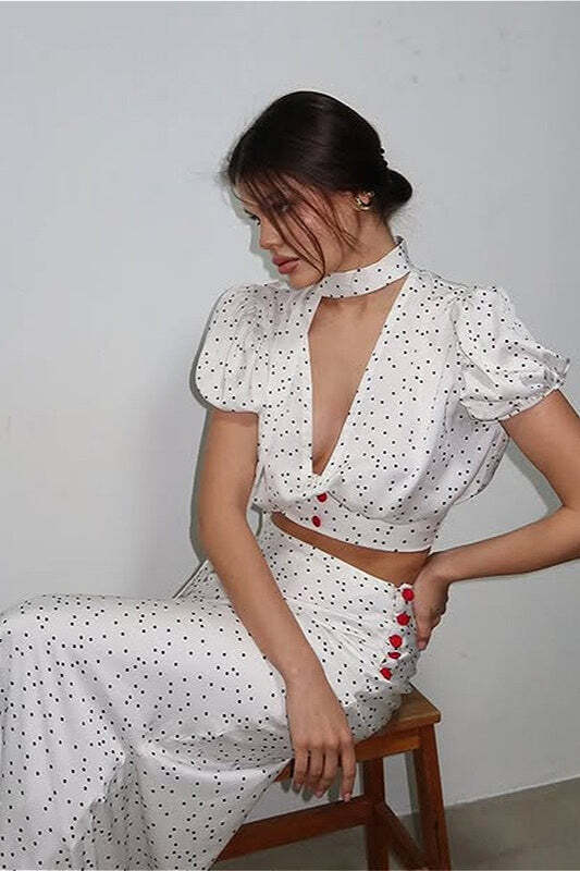 Dresses, two piece sets and bodysuits. Base your size on whichever is larger — bust or hips.