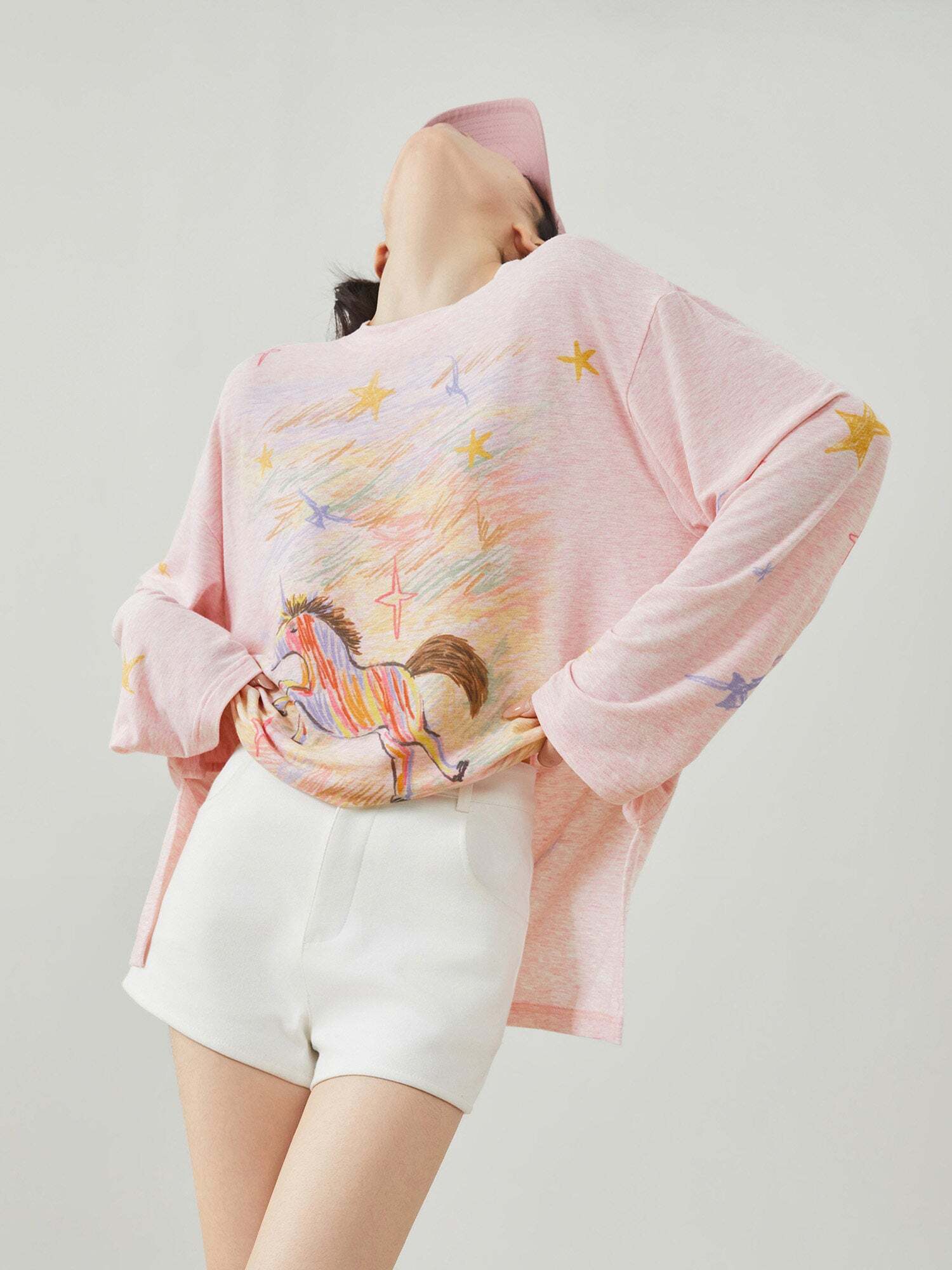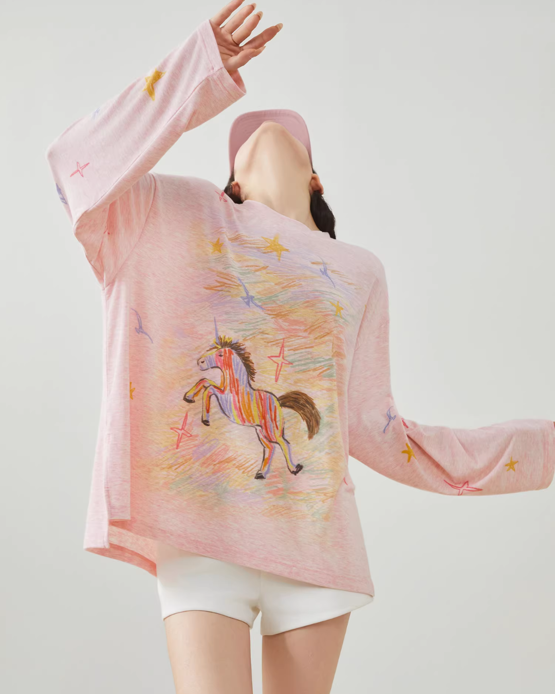 Long-sleeve T-shirt with a playful design in a handwritten style.