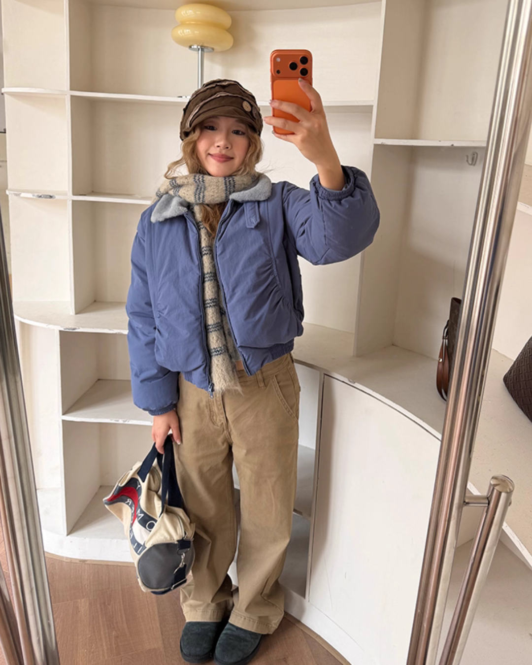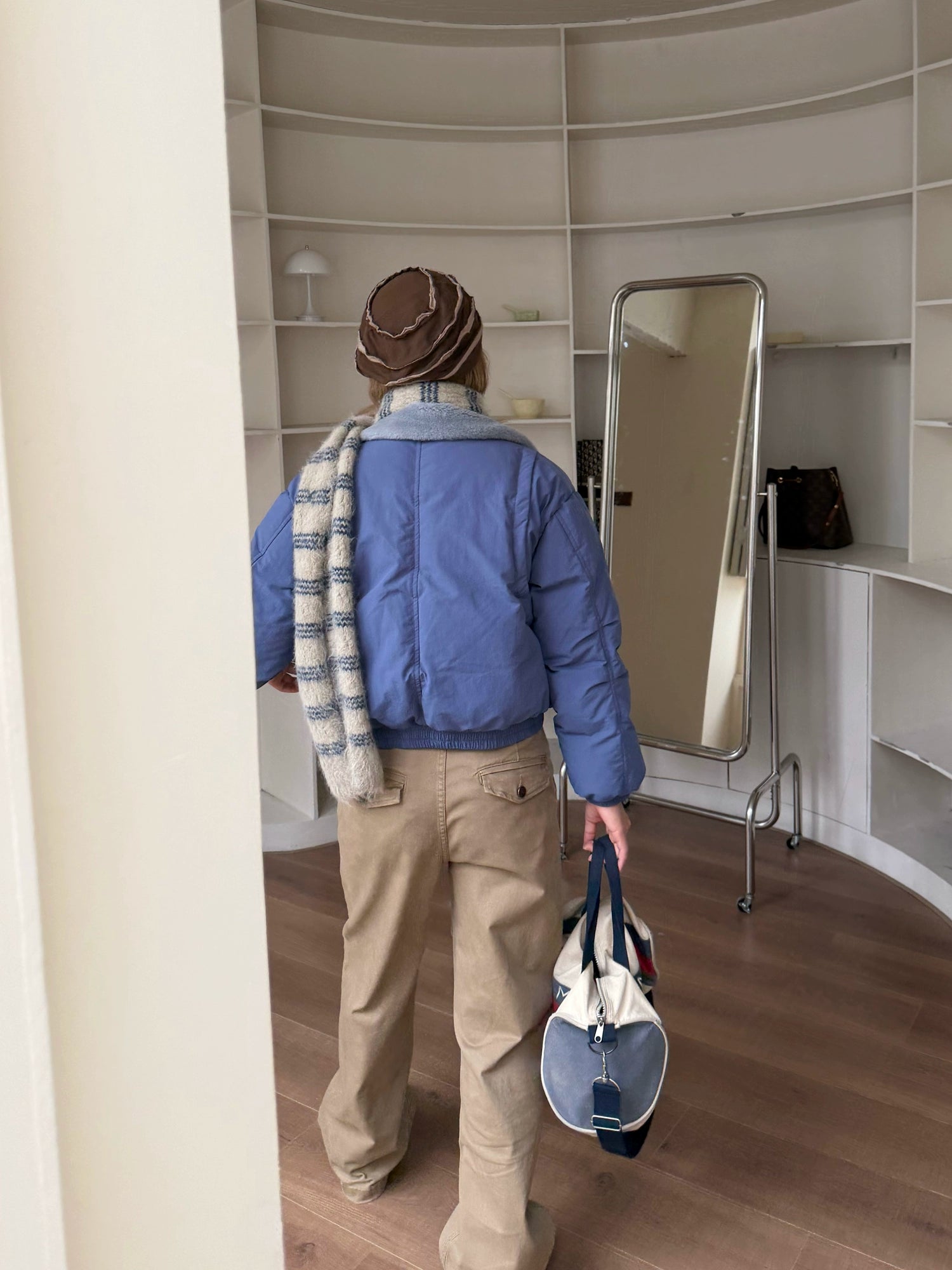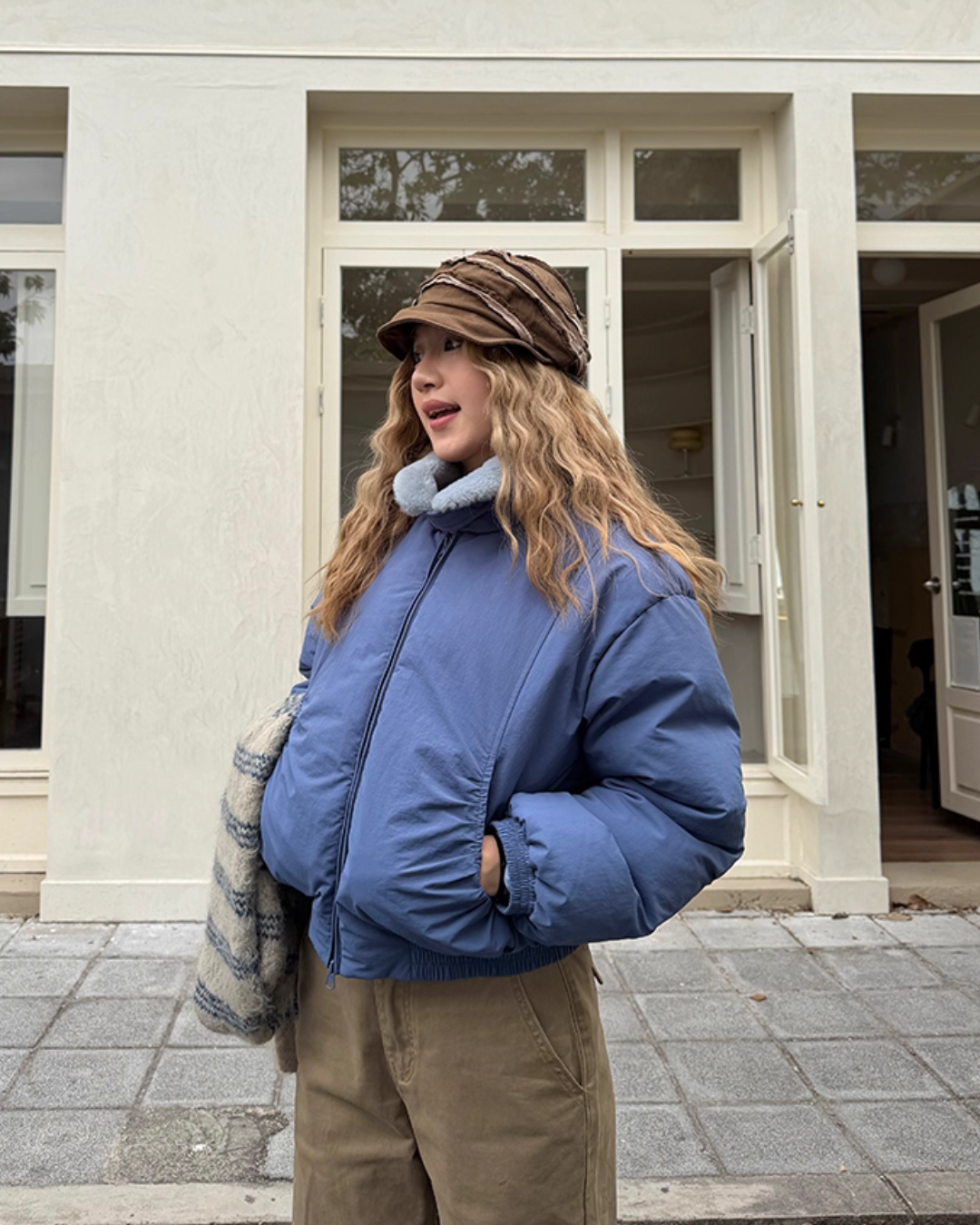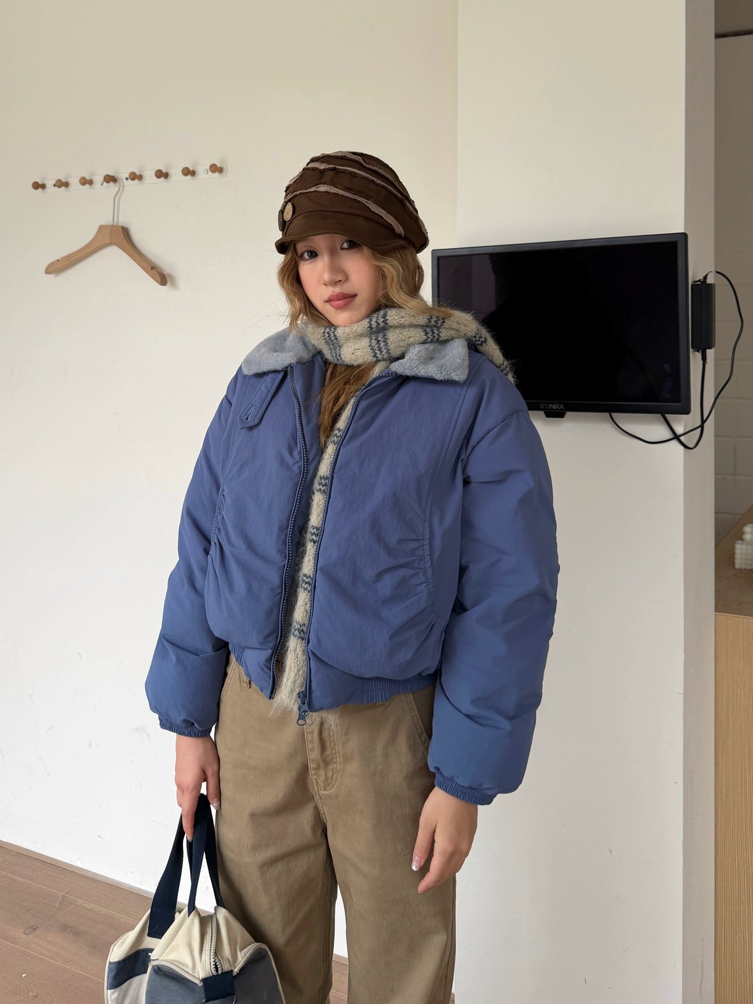 The down jacket with a three-dimensional voluminous silhouette catches the eye.