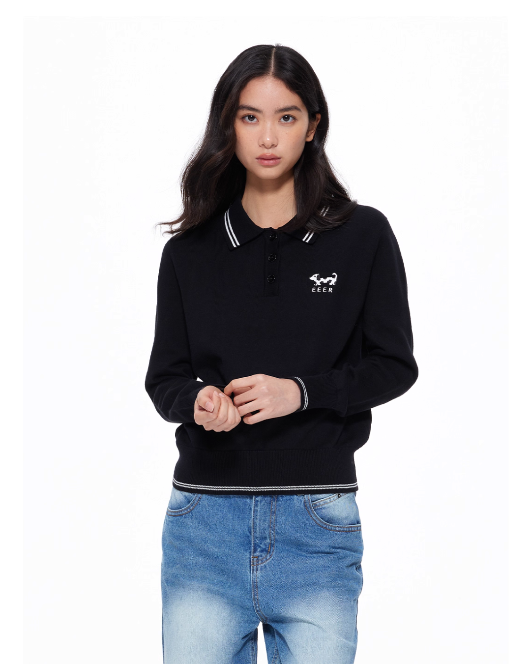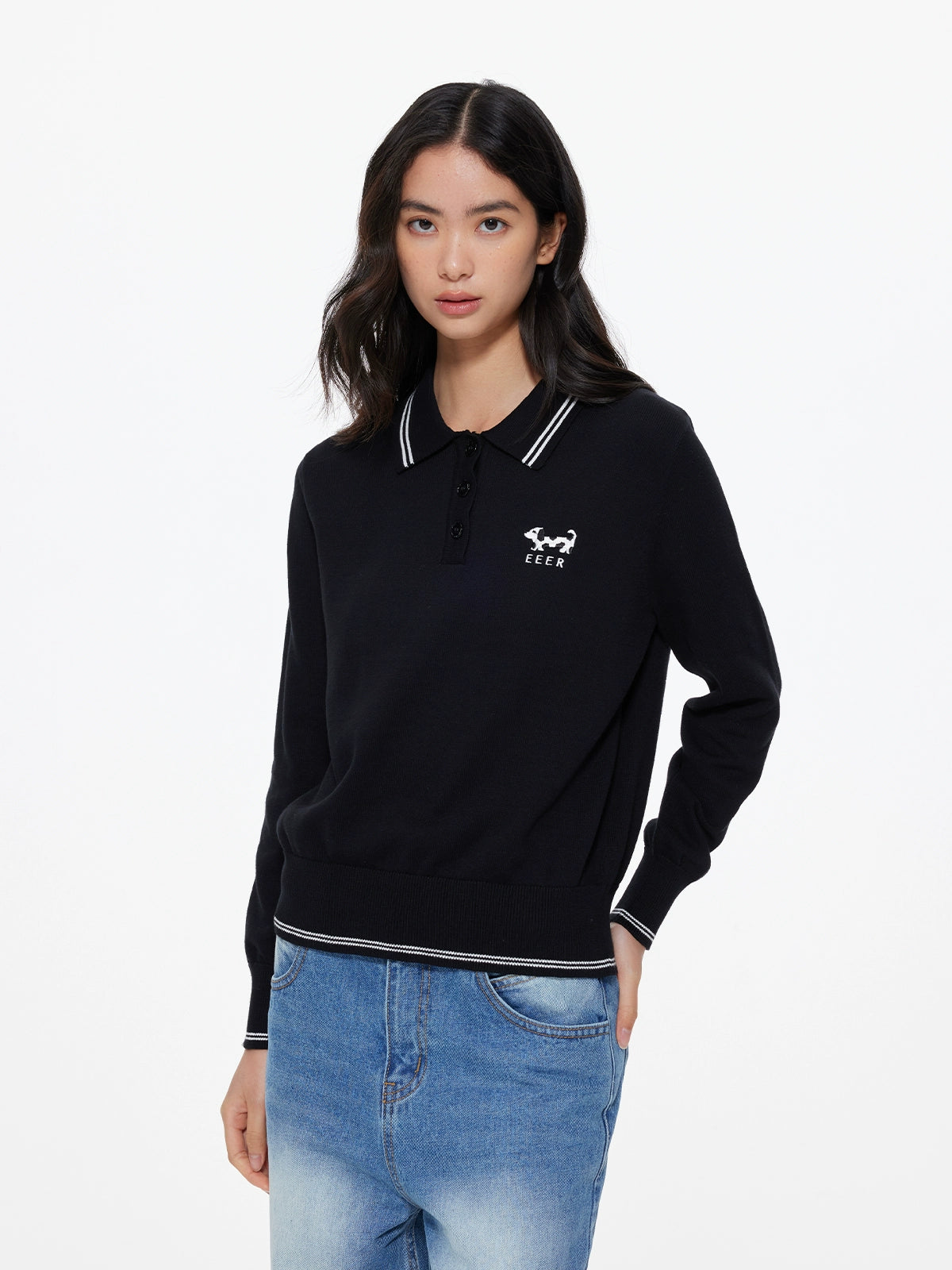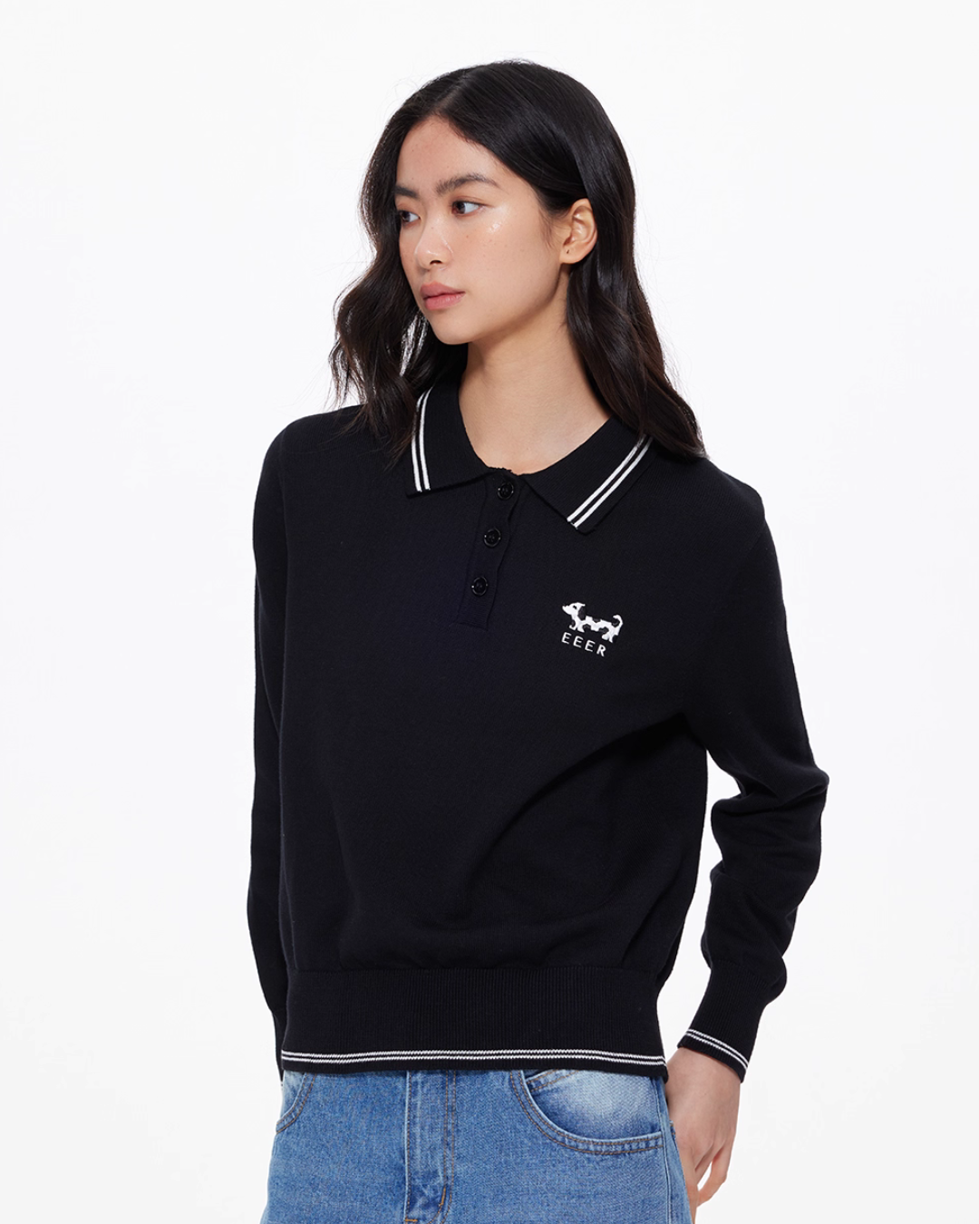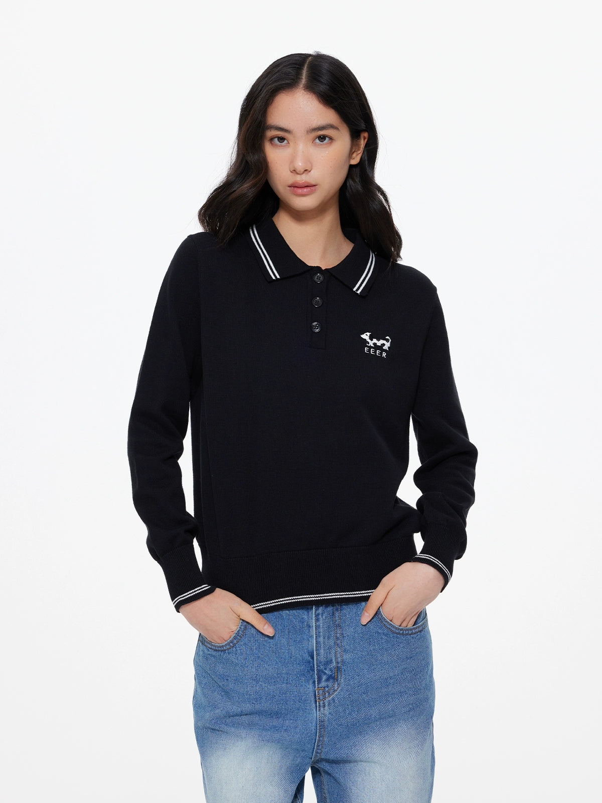 A knit top that achieves a neat look with a color-coordinated polo design.