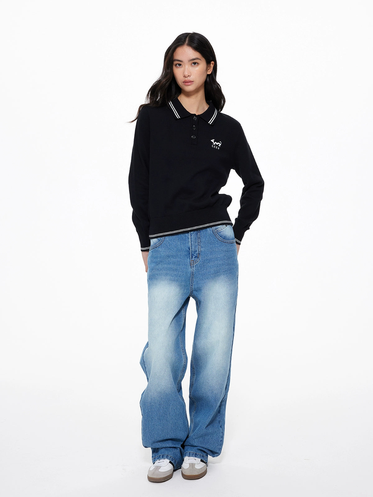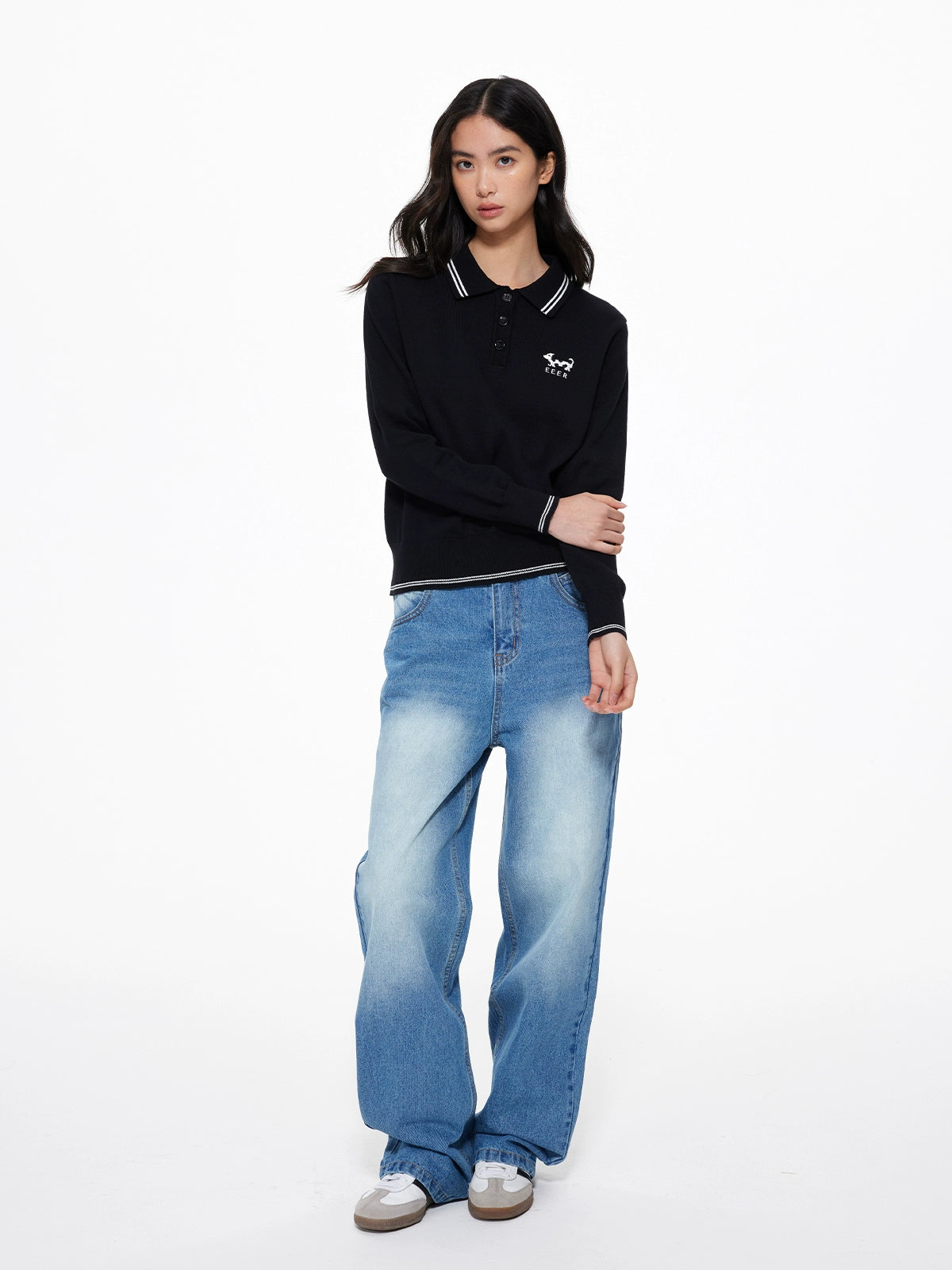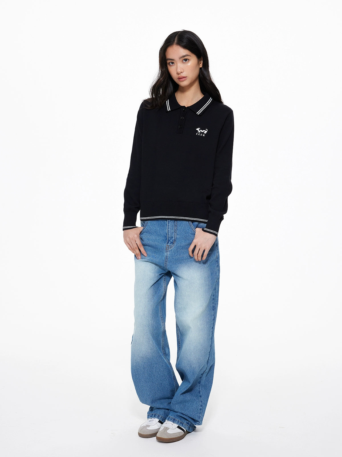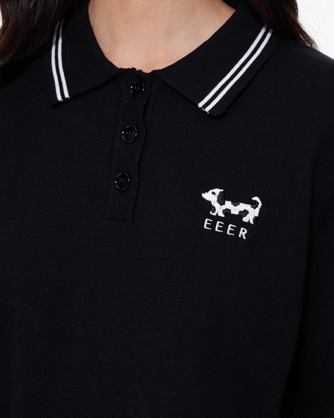 A knit top that achieves a neat look with a color-coordinated polo design.