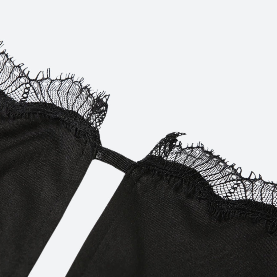 Bring the heat in the Baddie Backless Slit Mini Dress—a sultry statement-maker with lace-trimmed cups, a daring cutout front, and open sides that scream main character energy. Designed for the bold, this curve-skimming mini turns heads whether you’re hitting the club or styling it down with streetwear edge.