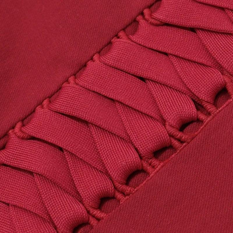 The Zip Up Halter Top is rendered in bold red stretch fabric with a plunging neckline and halter collar. A central front zipper provides functional closure while panels of woven detailing at the sides introduce visual depth. Fitted through the bust and waist, this top balances structure and flexibility for styled nighttime or streetwear ensemble.