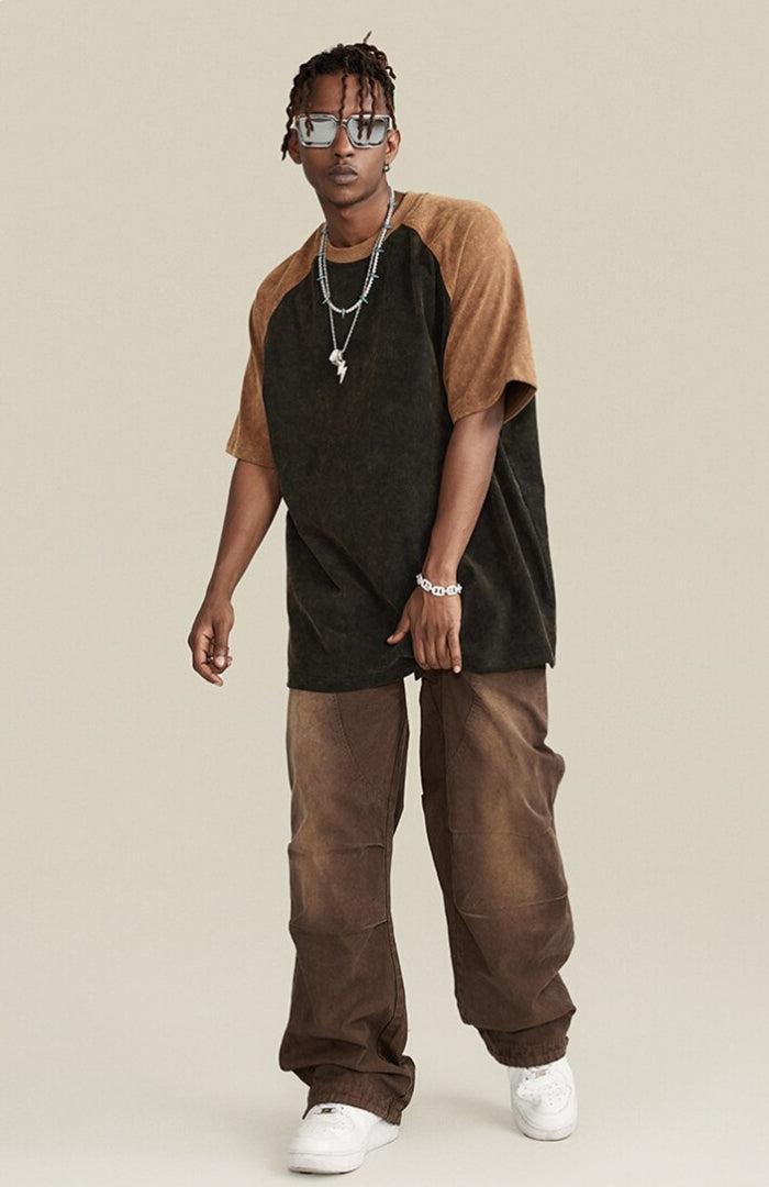 Our Raglan tee, a blend of comfort and style, is designed for those who love casual chic. The subtle patchwork elevates the charm, while the comfortable crew neck and soft cotton fabric ensure a cozy feel. This unisex tee, available in red and brown, is your ultimate pick for relaxed, everyday wear.
