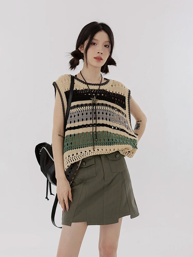The Vintage Crochet Sweater Vest brings a nostalgic boho charm with its intricate crochet design and earthy tones. Its sleeveless, relaxed fit makes it ideal for layering over tees or blouses, adding texture and retro flair to any look.