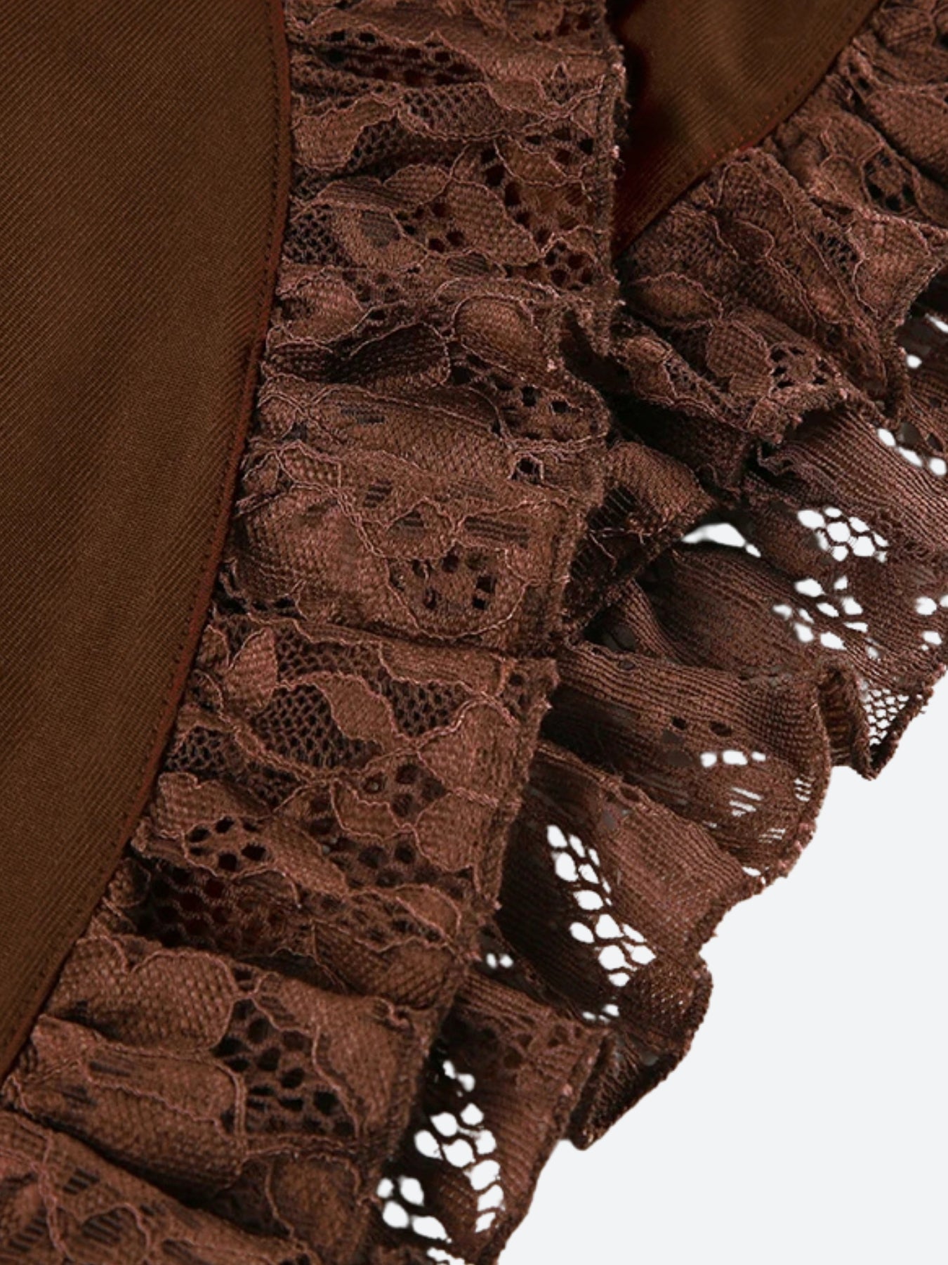 This isn’t your average mini skirt. With raw lace ruffles, an edgy asymmetric cut, and rivet stud detailing, this fairy grunge piece blends softness with rebellion. Made for layering or standing alone, it’s got all the chaotic forest nymph vibes your closet’s craving.