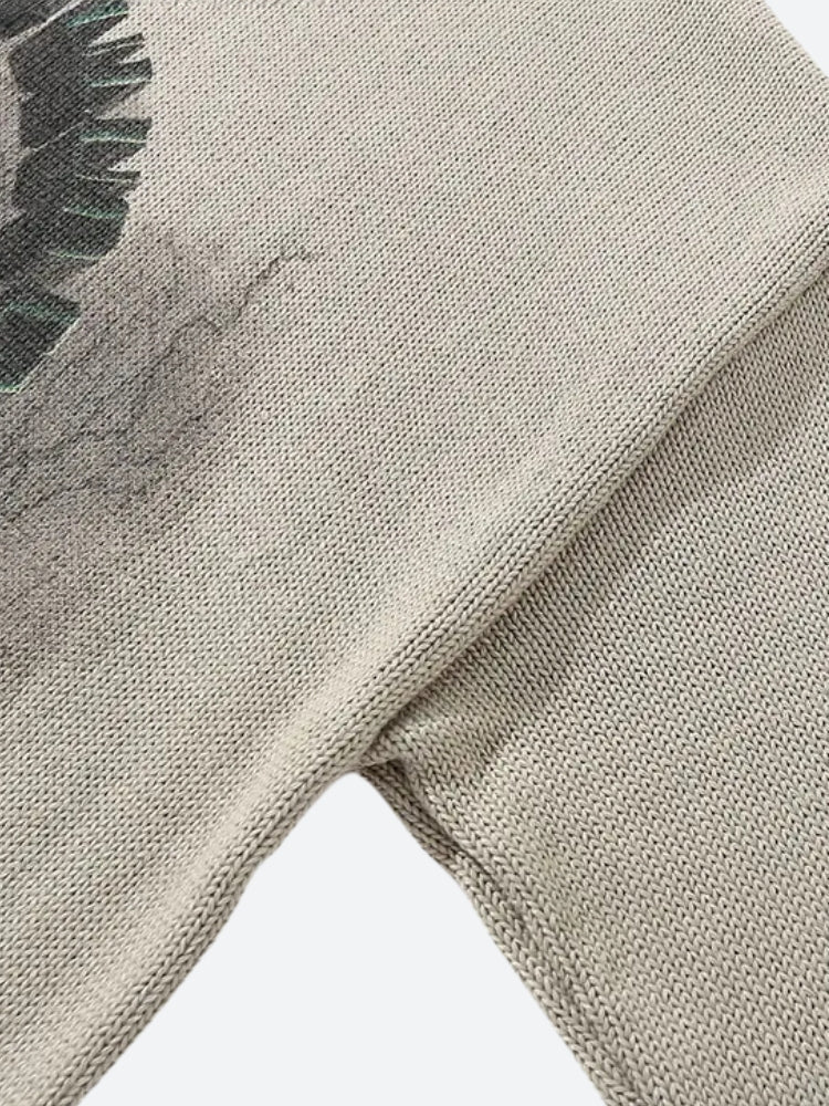 The Goth Angel Knitted Sweater combines comfort with a bold gothic style, showcasing an angel graphic on cozy knit fabric. With a relaxed fit and versatile neutral tone, it’s perfect for layering in streetwear and alternative looks.