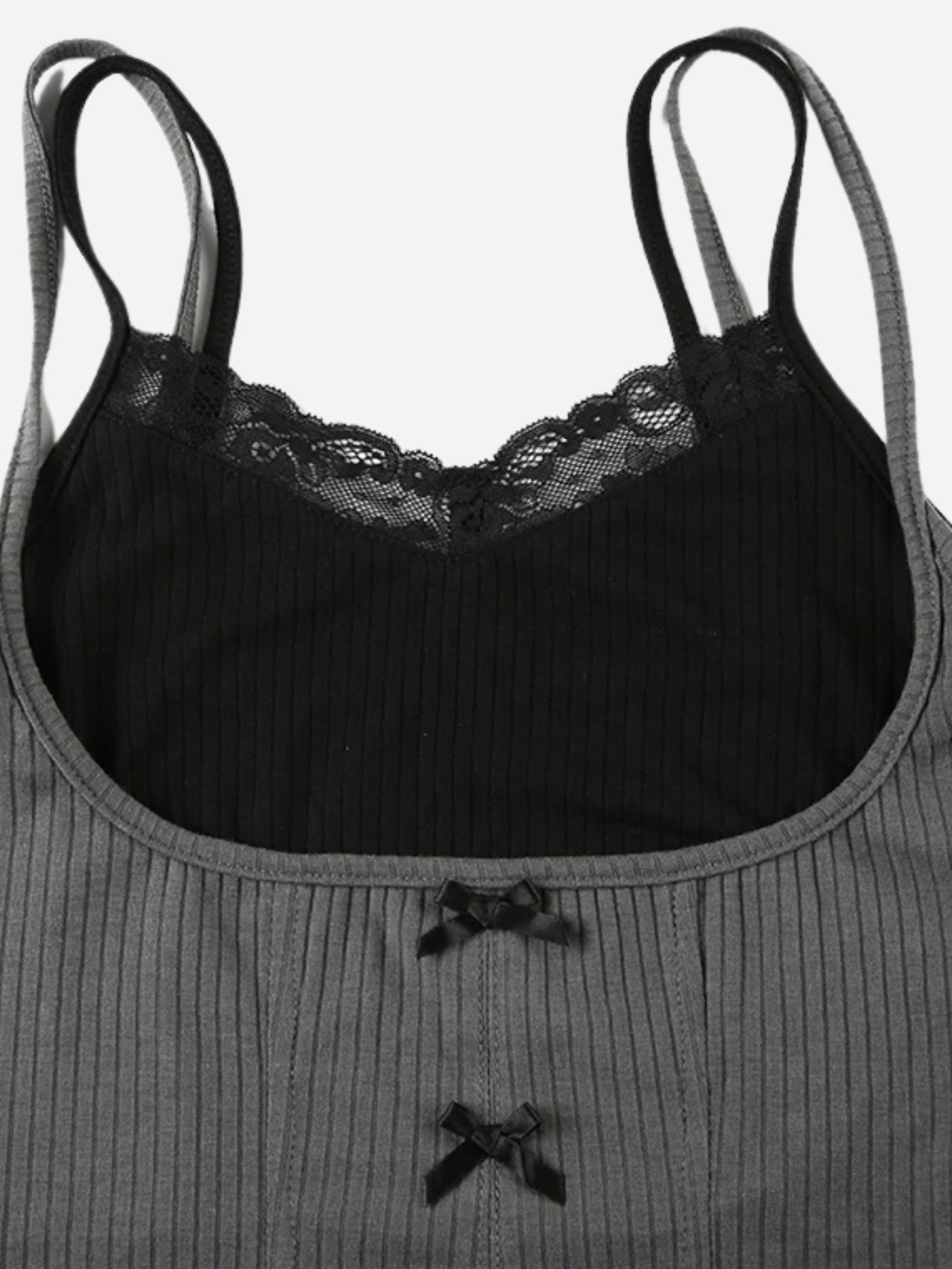 - Lace trim at bust