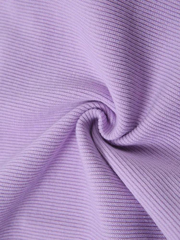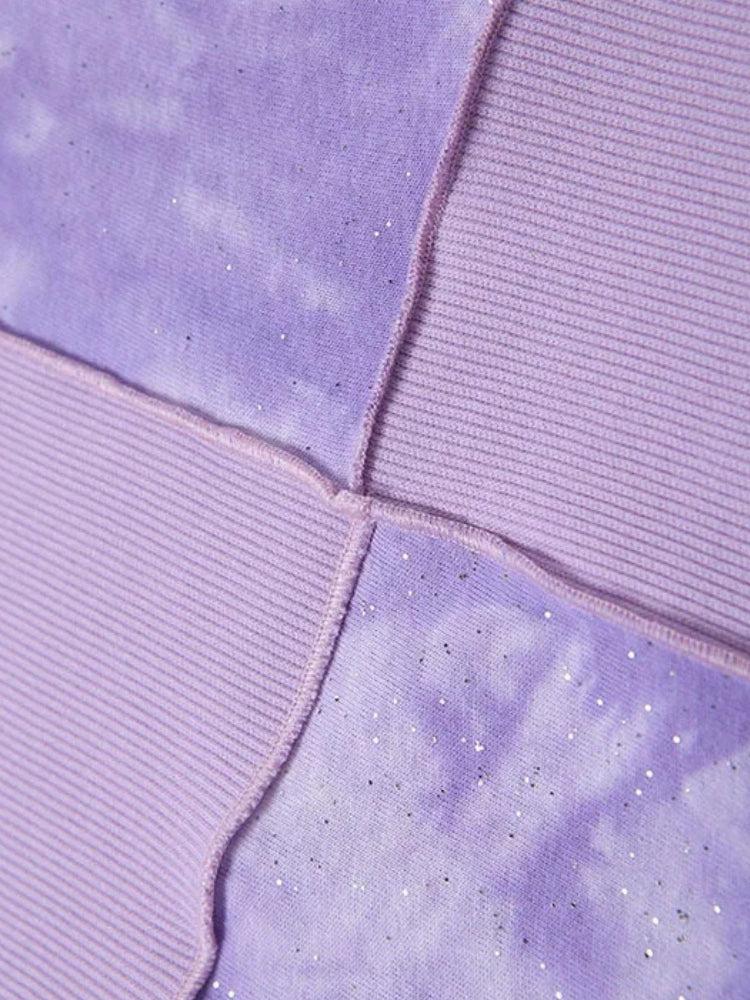 Colorblock meets cosmic girl. This lilac dream features contrast ribbed patchwork panels with raw lettuce edges, giving major Y2K energy. The galaxy-dye twist adds a soft grunge vibe—perfect for styling with pleated skirts, cargos, or layered chains.