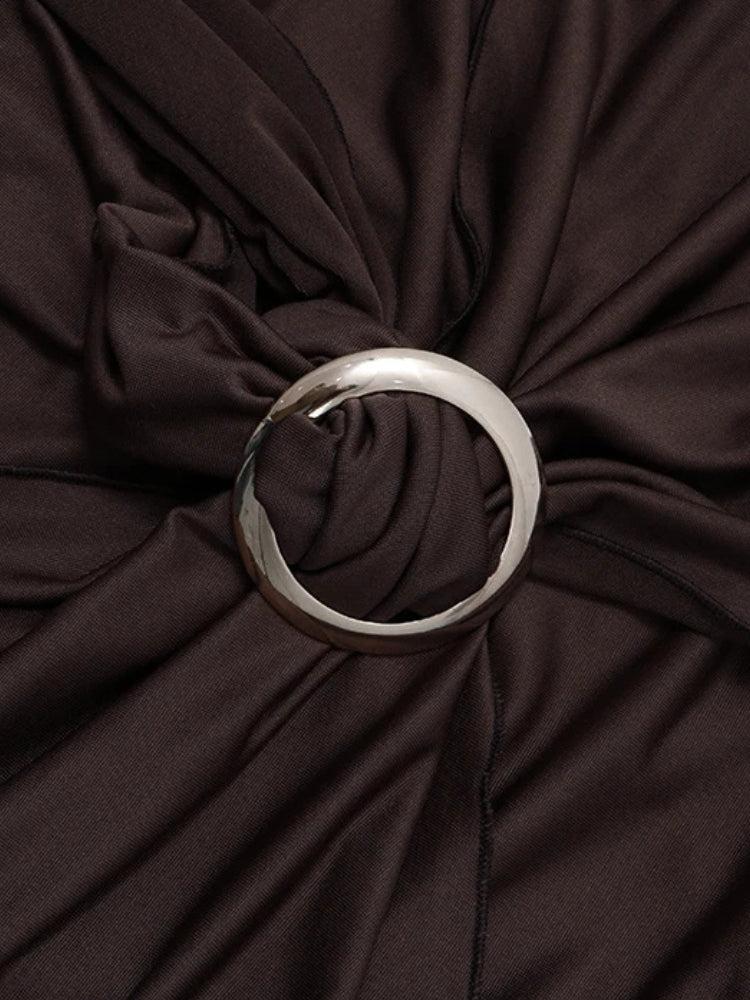 Sleek and sultry, this halter mini dress hugs in all the right places. The ruched waist and draped sash detail give it that chic edge made for city nights or gallery parties.
