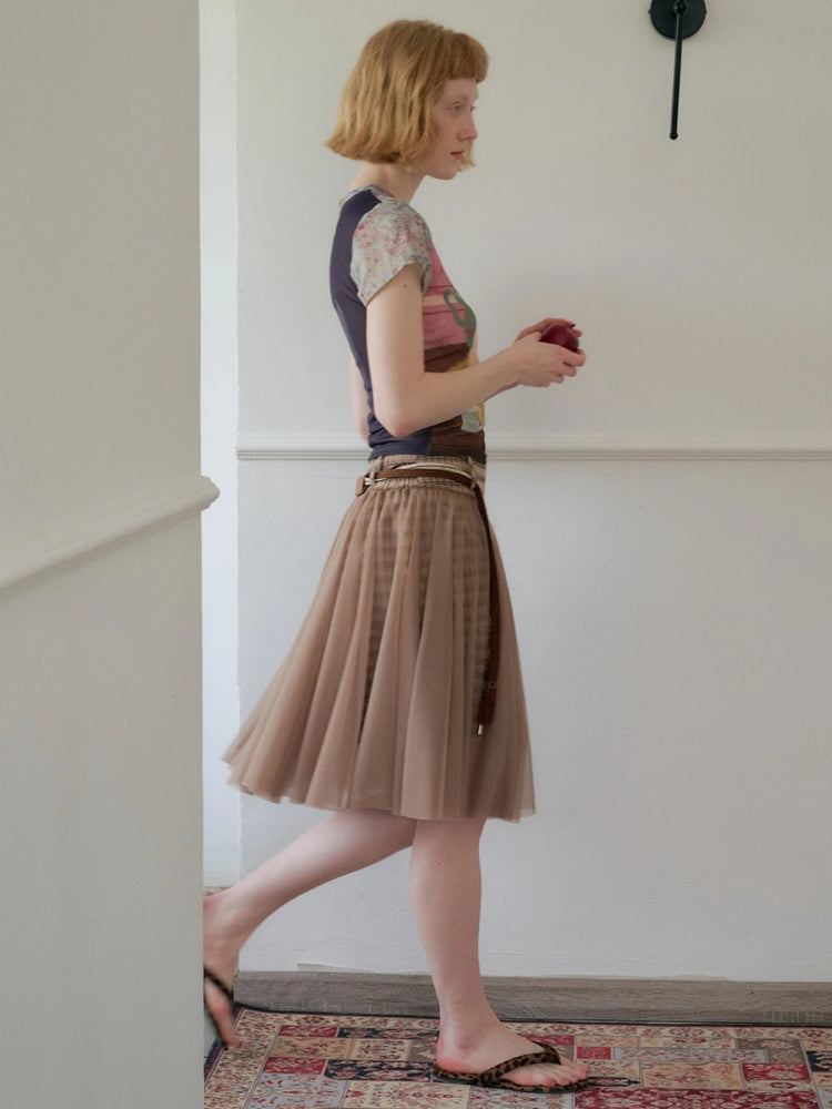 Playful and quirky, this fitted mesh tee pairs a vintage-style cat print with a sheer back and patterned sleeves. Lightweight and breathable, it brings a pop of personality to Y2K streetwear, perfect for layering over bralettes or pairing with cargo pants.