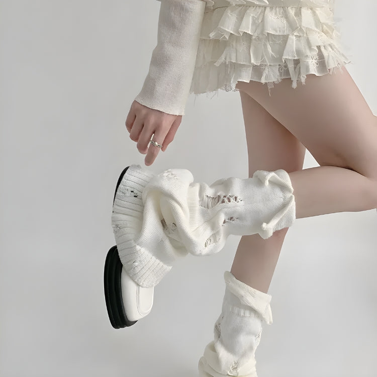 Quick Outfits, Modest Fashion Outfits Ideas Y2K Grunge Distressed Knitted Leg Warmers