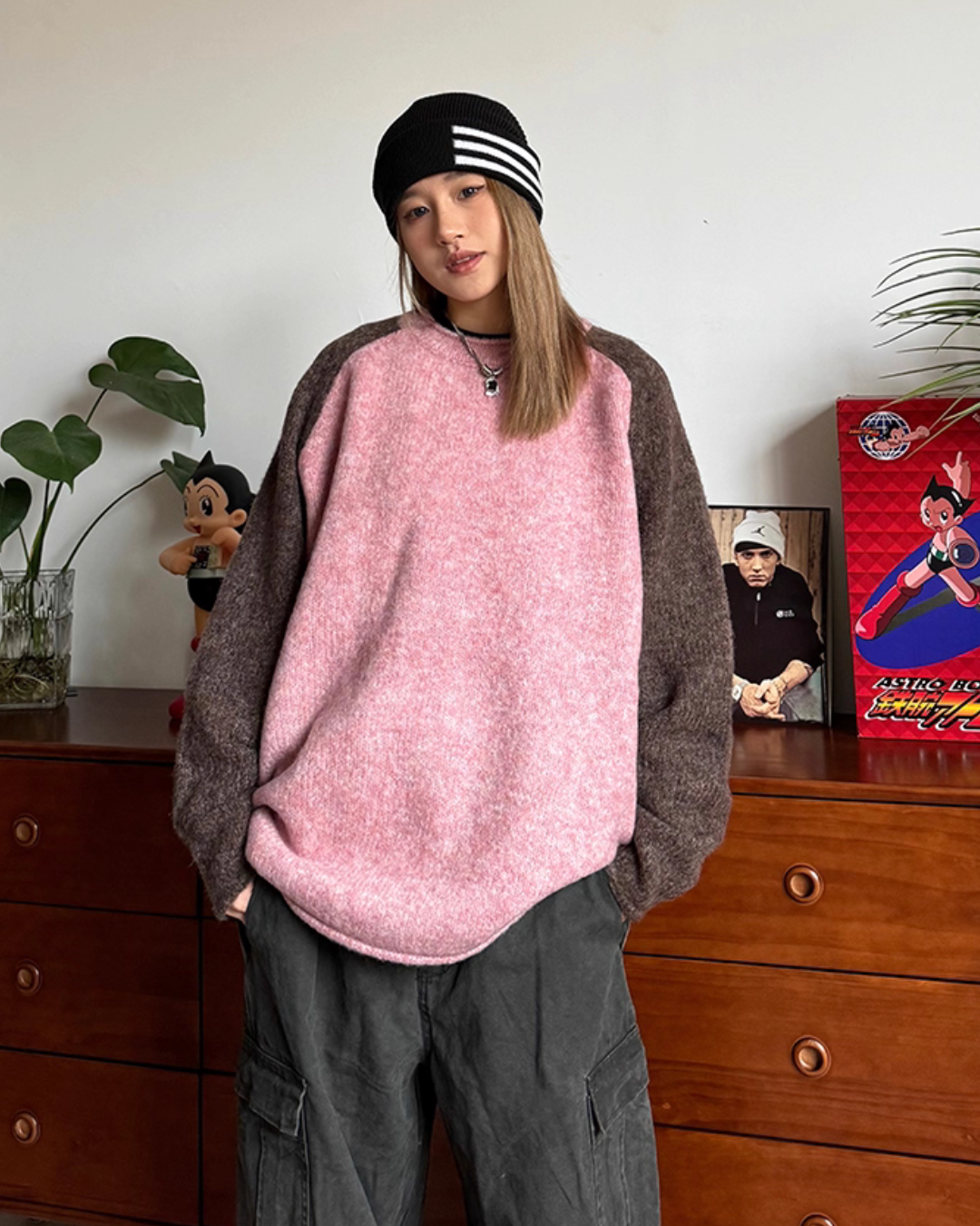 A piece that expresses a vintage taste with a bicolor design of raglan.