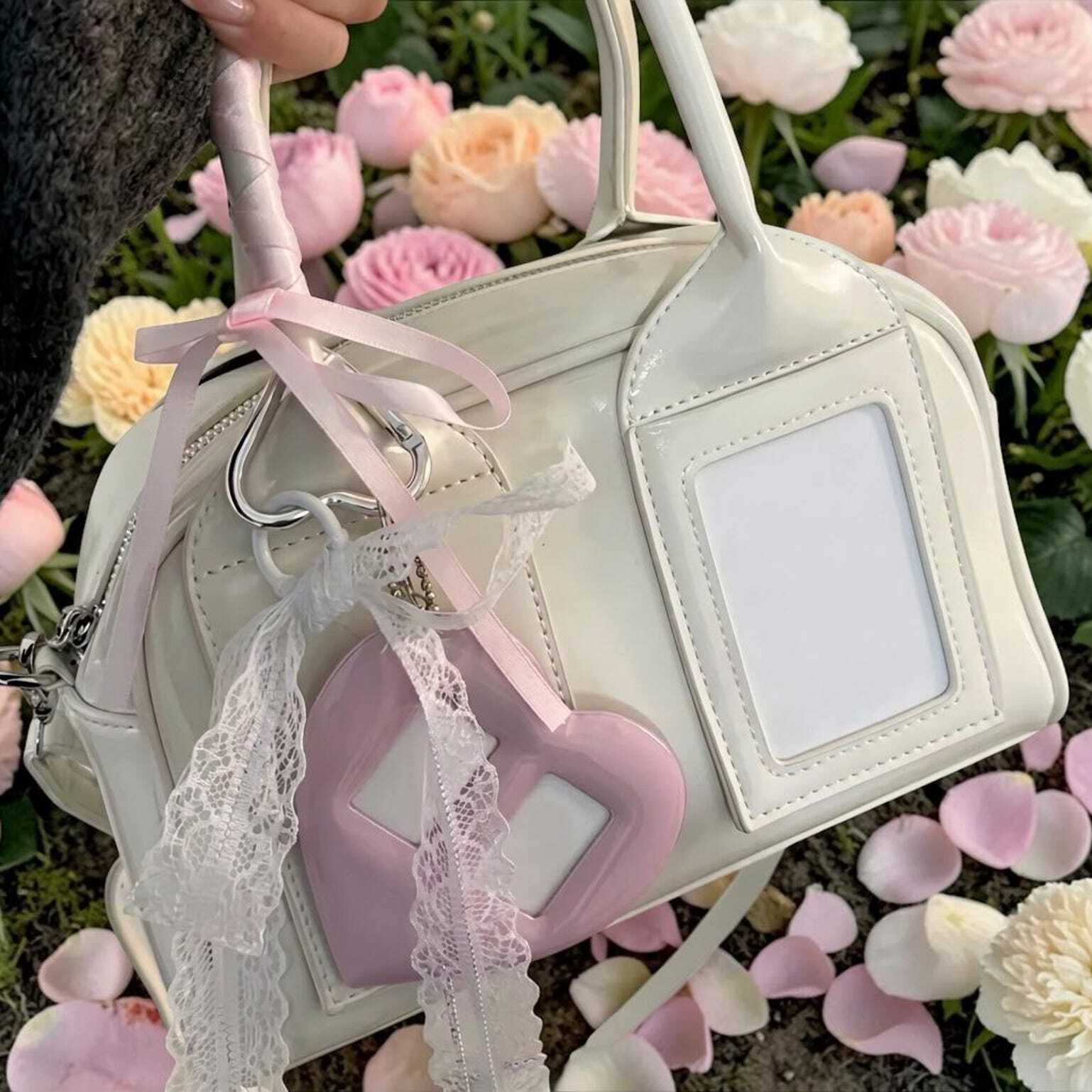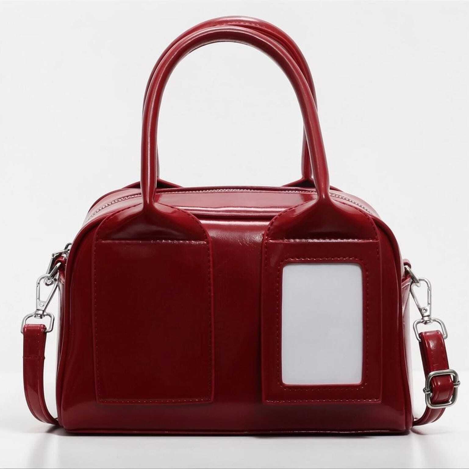 Red Kawaii Convertible Ita Bag with Clear Window for Pin Display combines everyday carry with a clear display area for pins, badges, charms, or character merch.