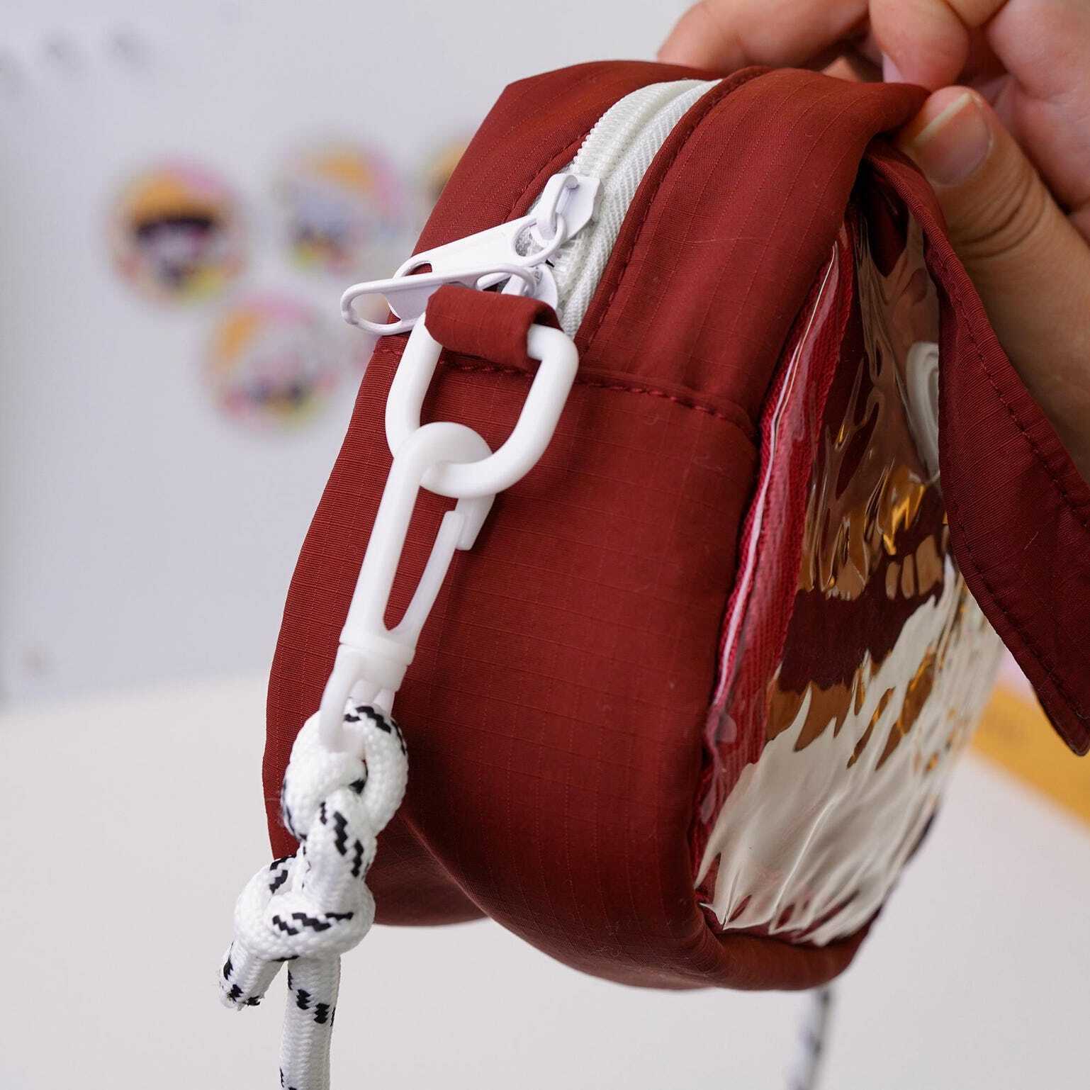 Red Sporty Ita Bag: A versatile clear-front bag to showcase your anime pins, badges & keychains in style!