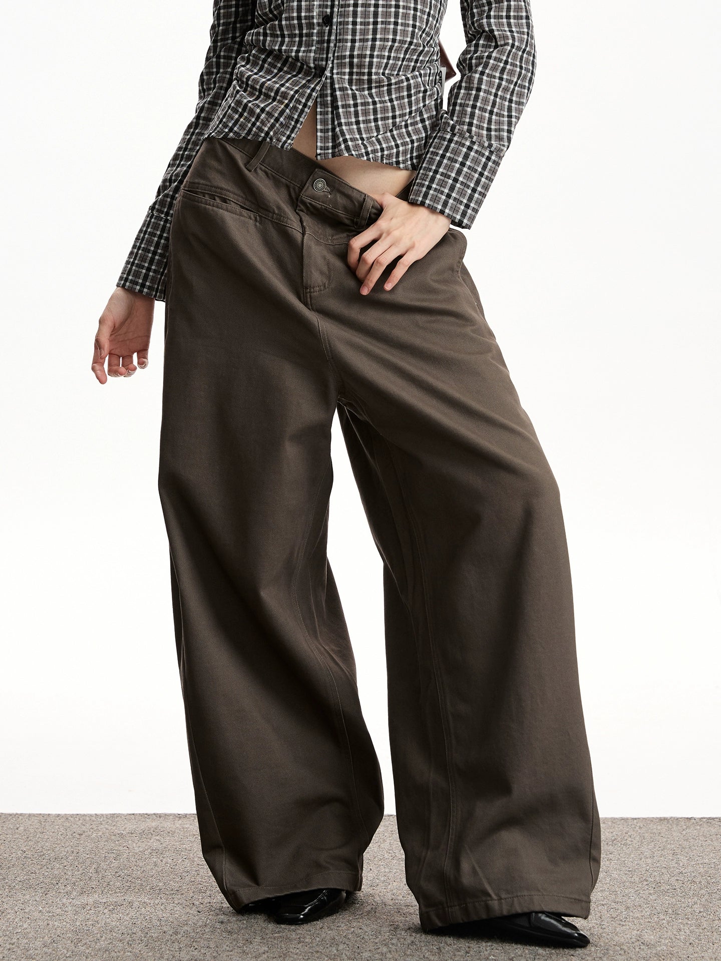 Wide pants with a trendy wide silhouette that gives a contemporary feel.