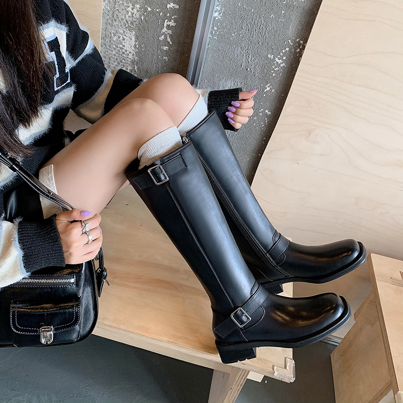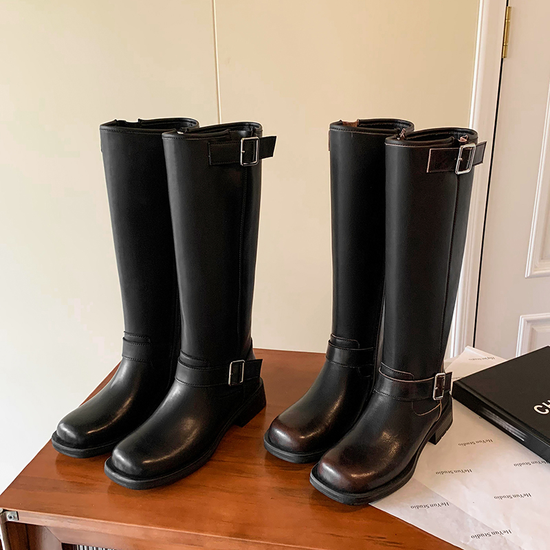 Retro British Knee High Riding Boots Women, Genuine Leather Straight Tube Belt Buckle, Footwear High-quality product featuring fashion outfits, work outfits women, western outfits women and more. Modern design that fits the latest trends. Premium materials ensure durability and comfort. Order now for special offers! Product designed with attention to every detail. Suitable for all occasions and personal styles.