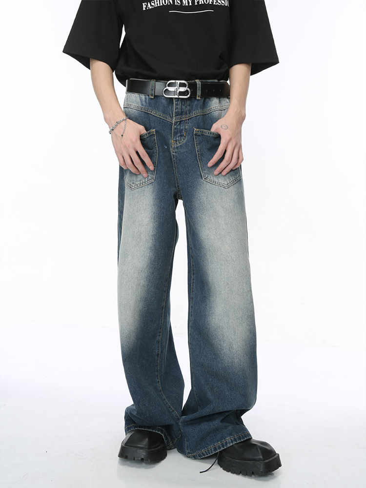 Step into effortless style with our Retro Cleanfit Washed Front Pocket Denim Pants for Men. Crafted for comfort, these loose straight wide-leg trousers embody the Y2K aesthetic, making them the perfect addition to your casual streetwear collection. With practical front pockets and a trendy washed finish, these pants offer both functionality and flair. Elevate your everyday look and embrace the retro vibe add to your cart today!