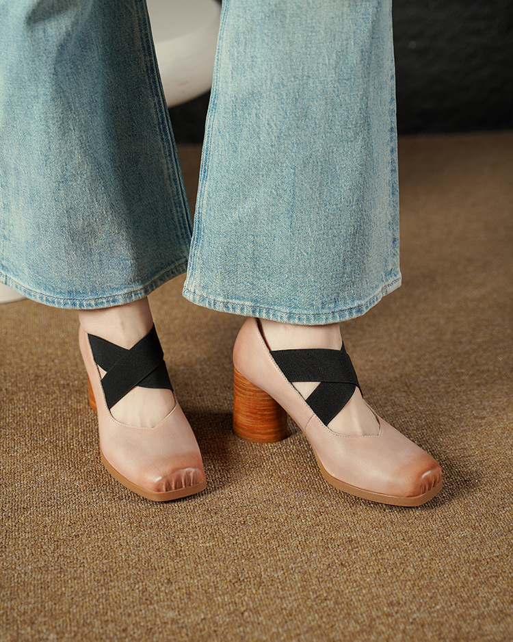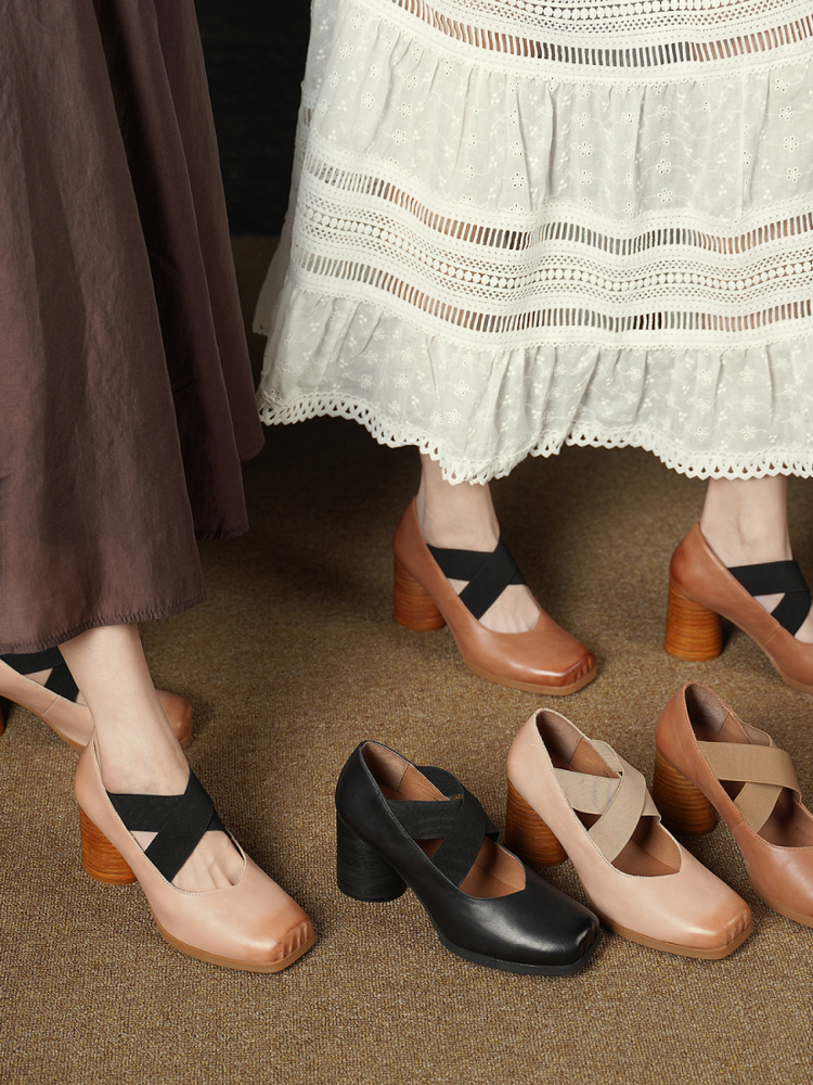 Step into timeless elegance with our Retro Lace-Up Pig Nose Ballet Shoes for Women, crafted from genuine leather for a luxurious feel. These square toe chunky high heel flats combine Y2K style with unmatched comfort, making them perfect for any occasion, from casual outings to chic events. With their unique design and versatile fit, these shoes not only elevate your wardrobe but also provide all-day support. Don’t miss out on this must-have addition to your collection shop now and take your style to new heights!