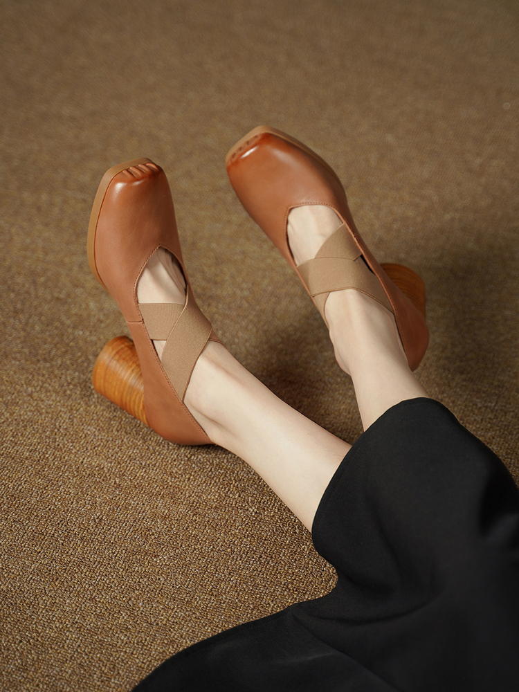 I absolutely love these Retro Lace Up Pig Nose Ballet Shoes! The genuine leather feels luxurious, and the chunky heel provides excellent comfort and support. They add a stylish touch to any outfit!