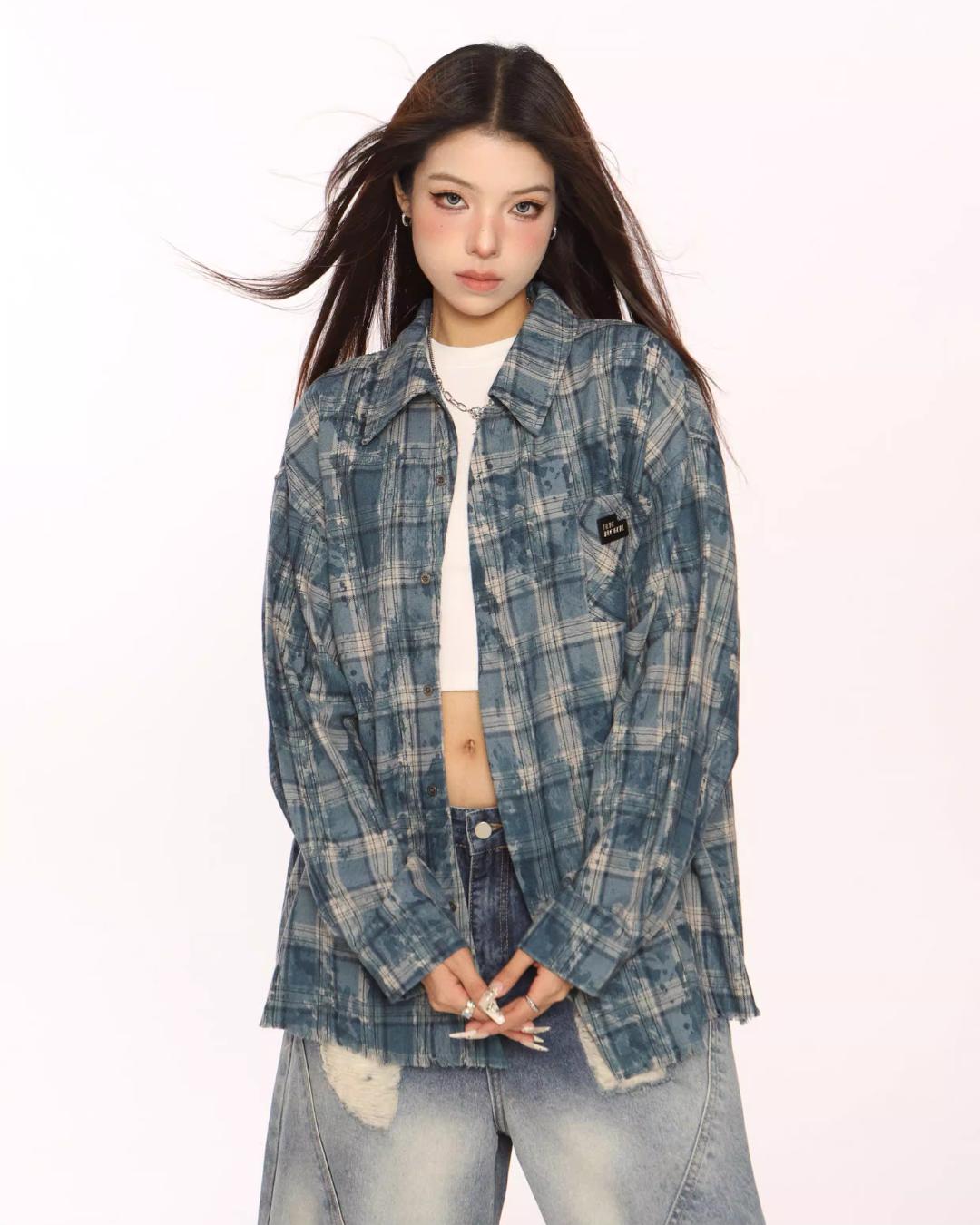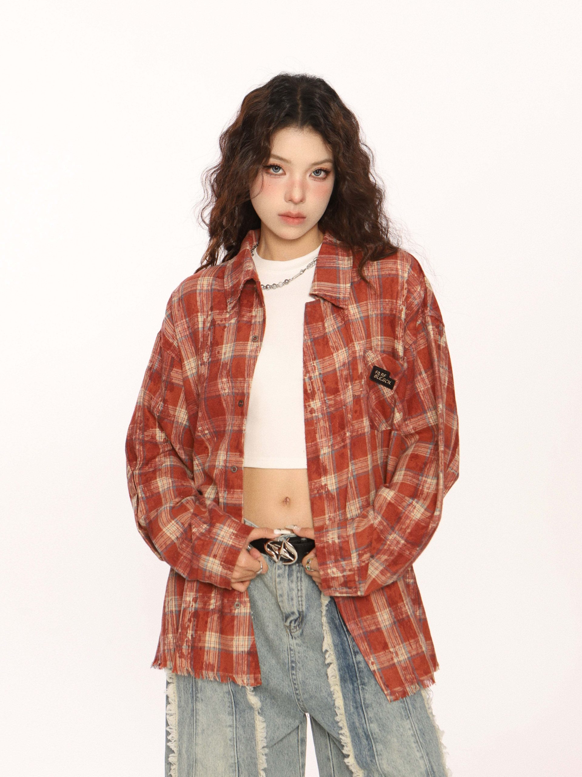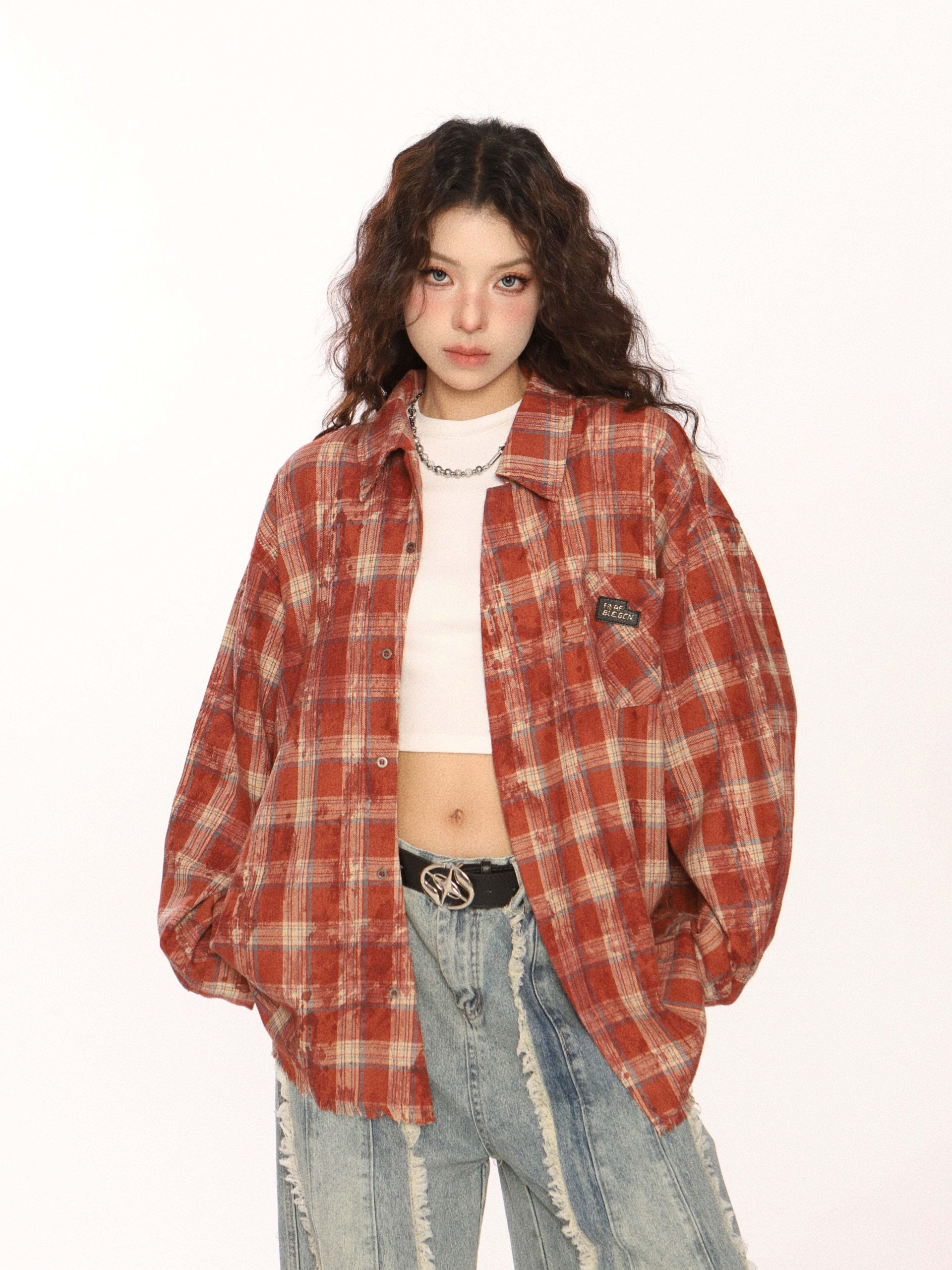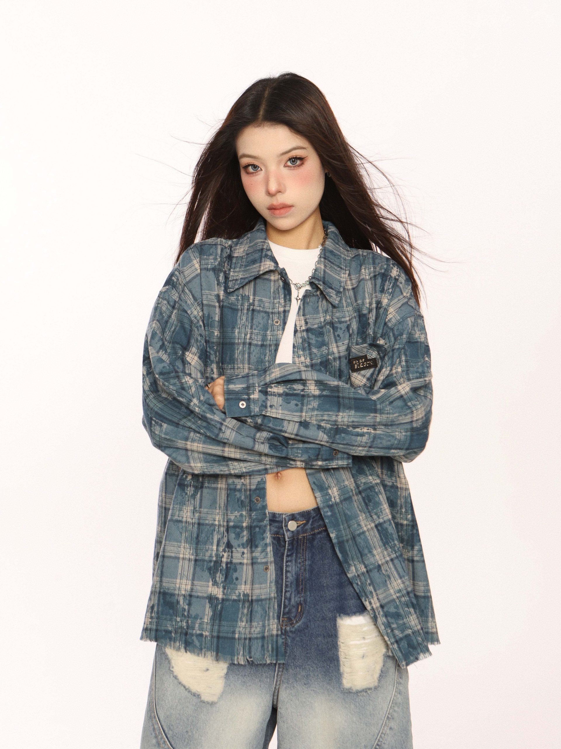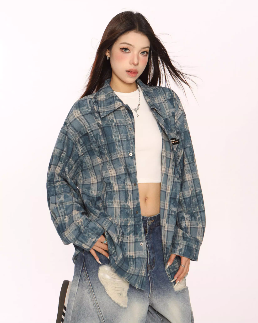 Trendy vintage-style long-sleeve shirt.