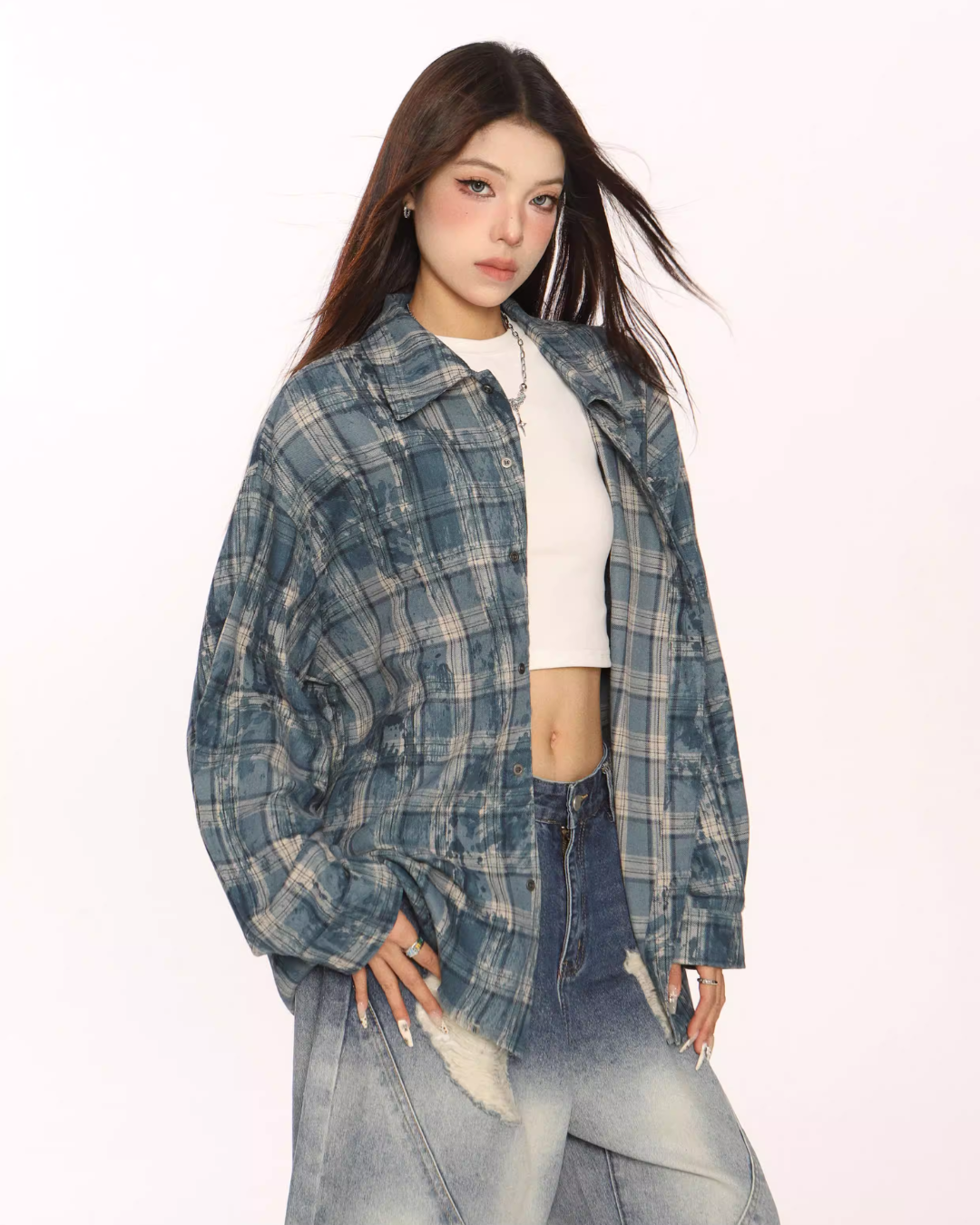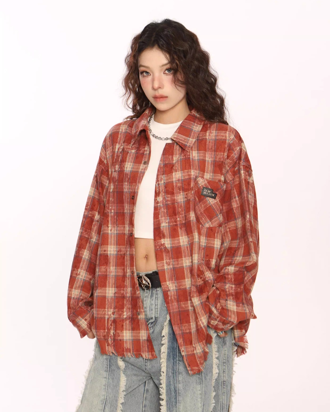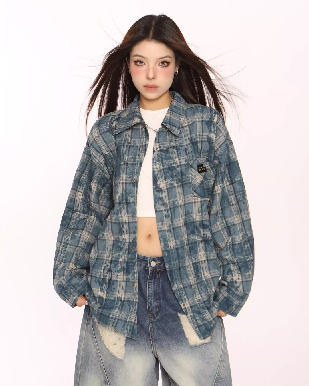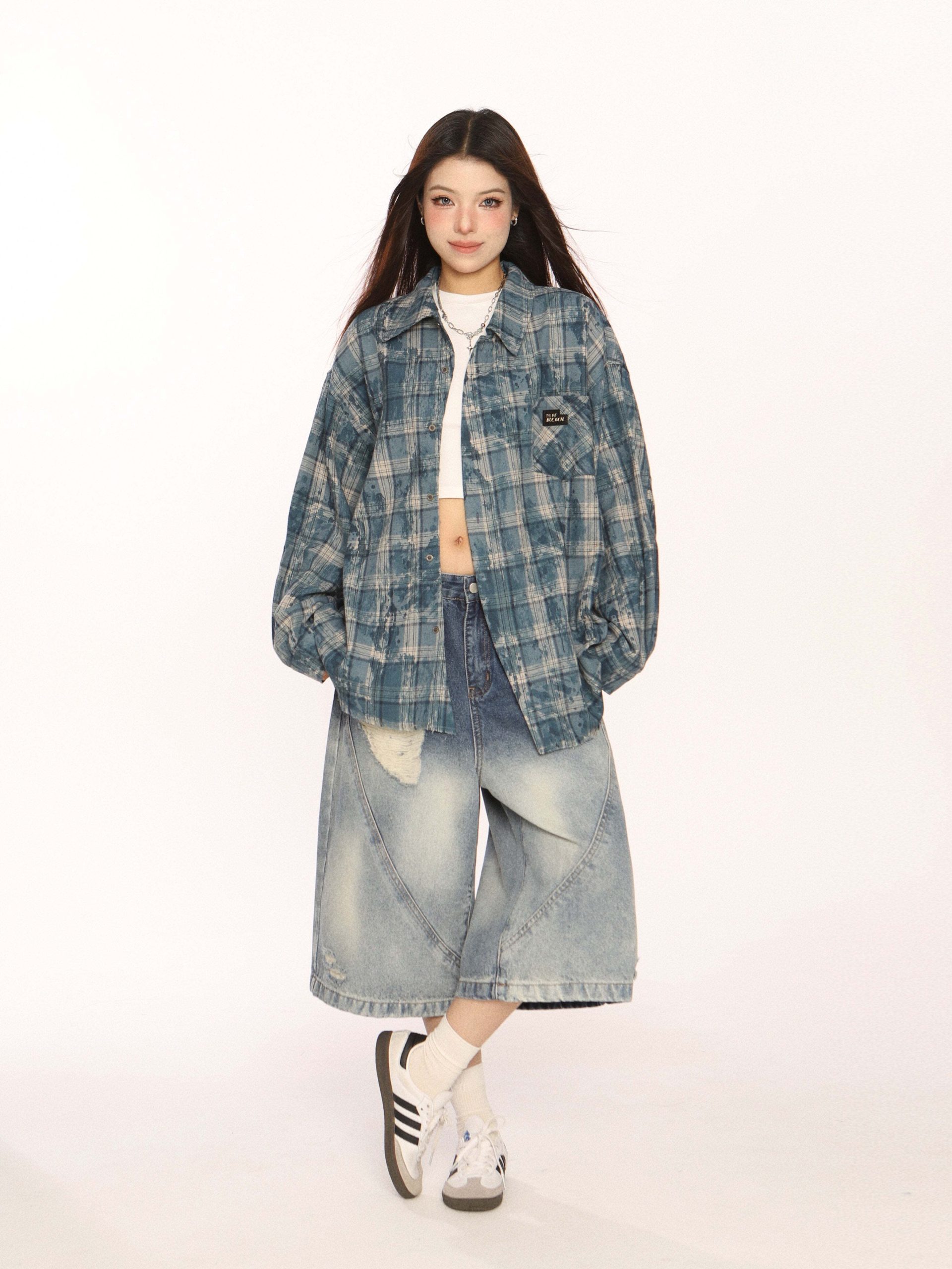 Trendy vintage-style long-sleeve shirt.