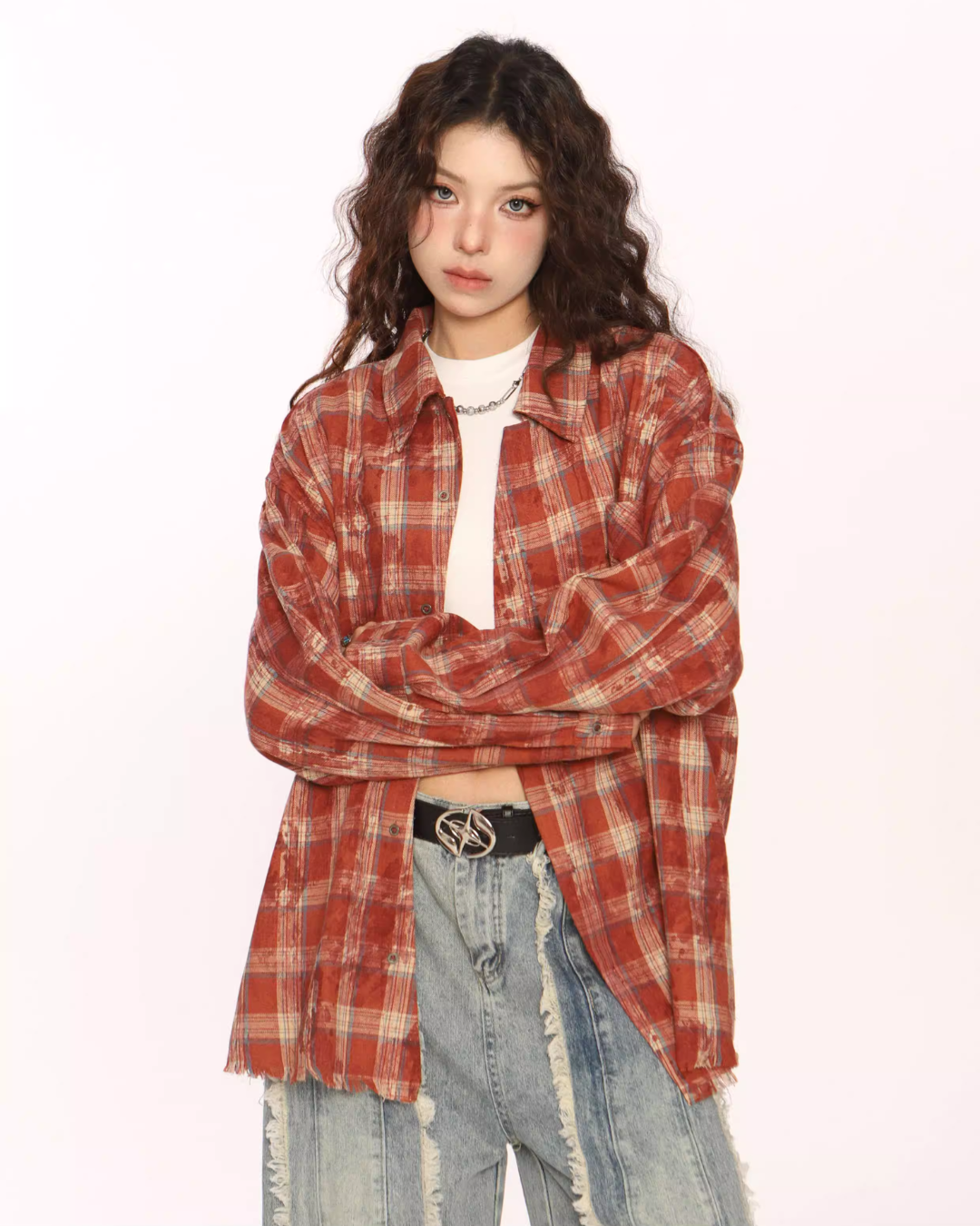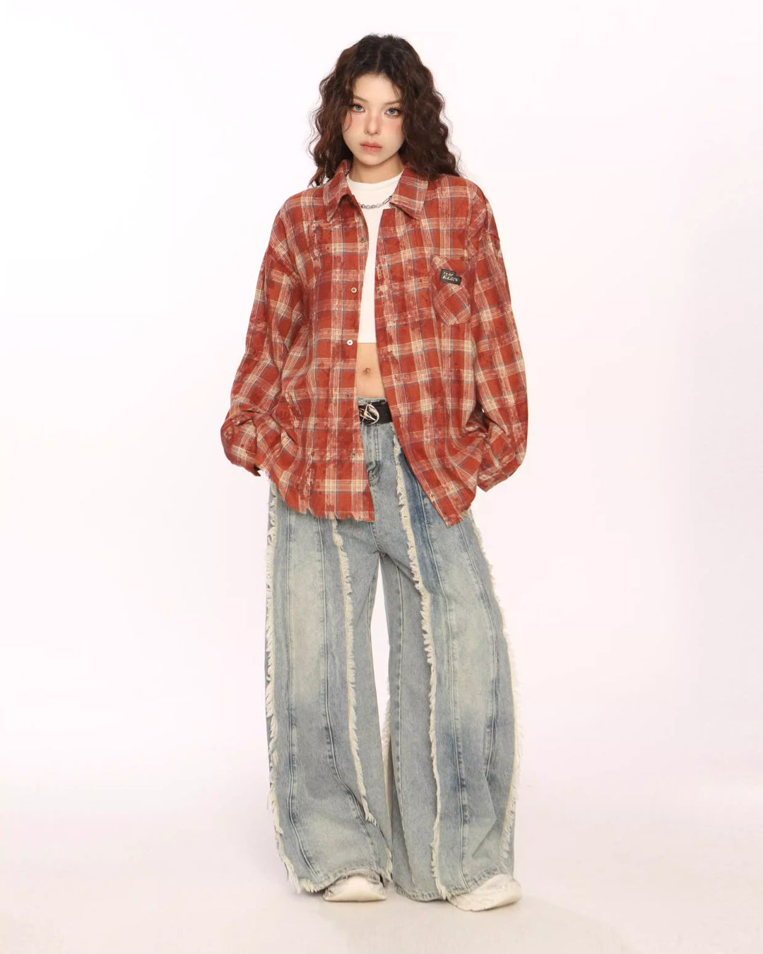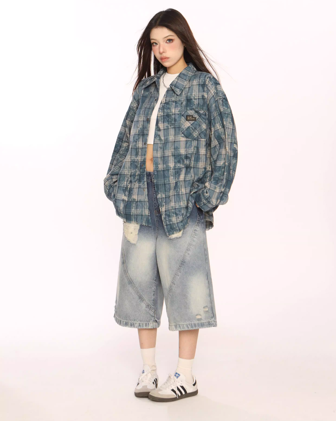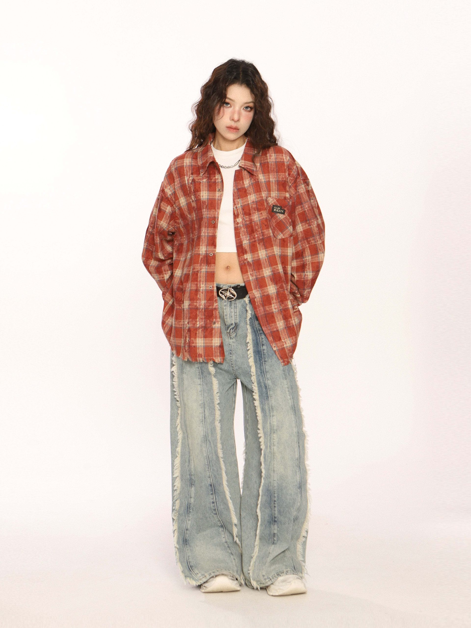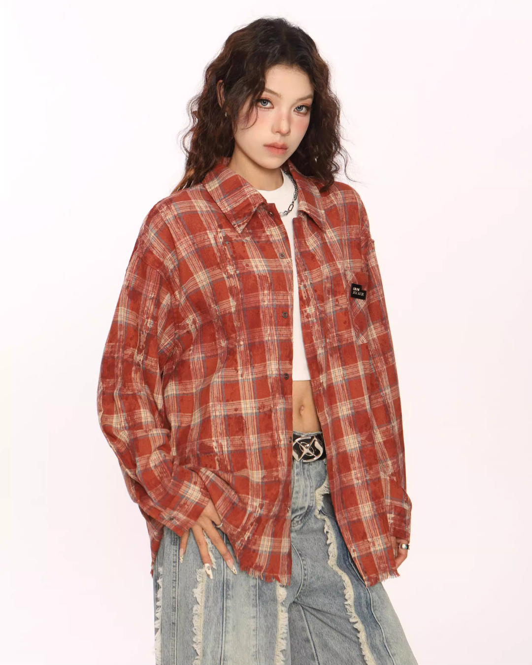 Trendy vintage-style long-sleeve shirt.