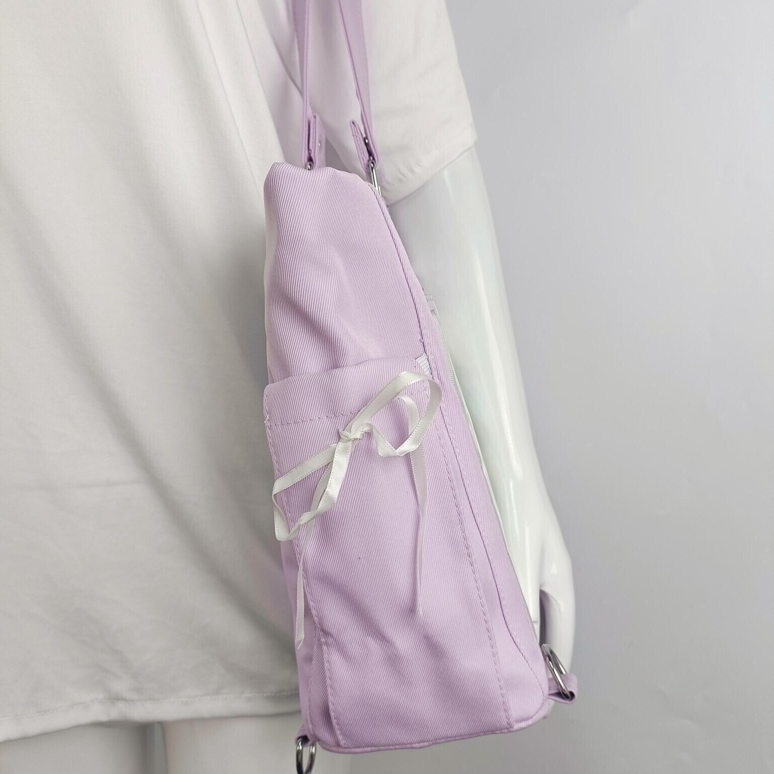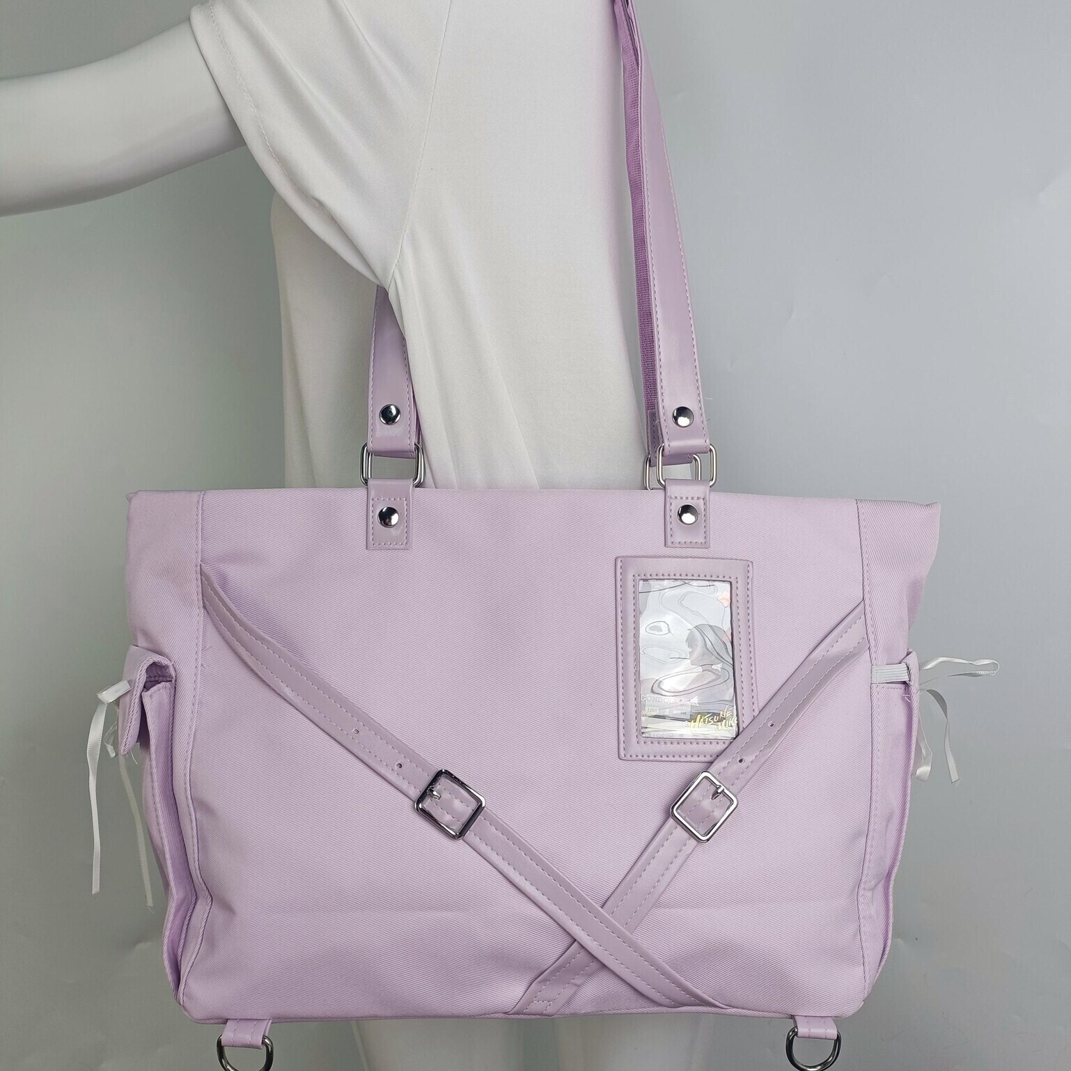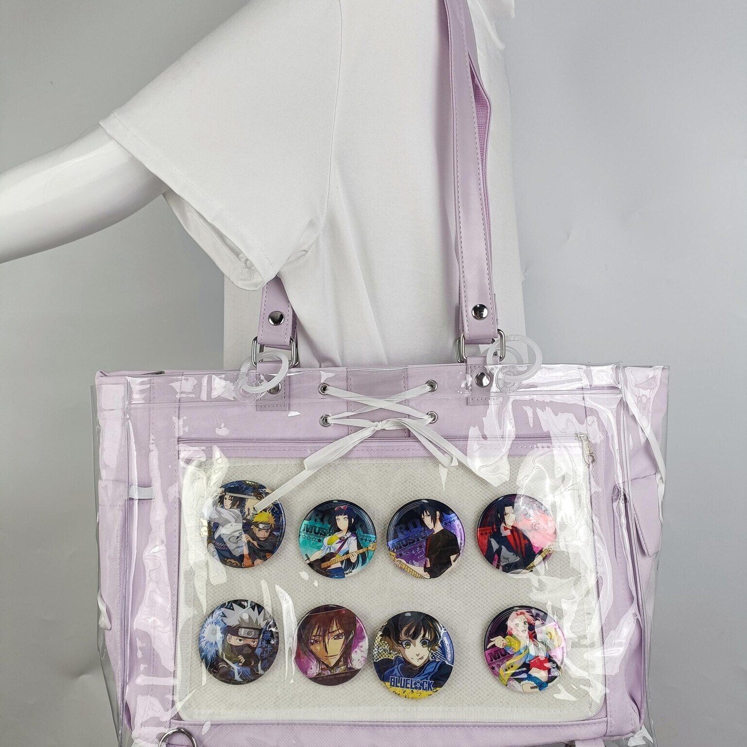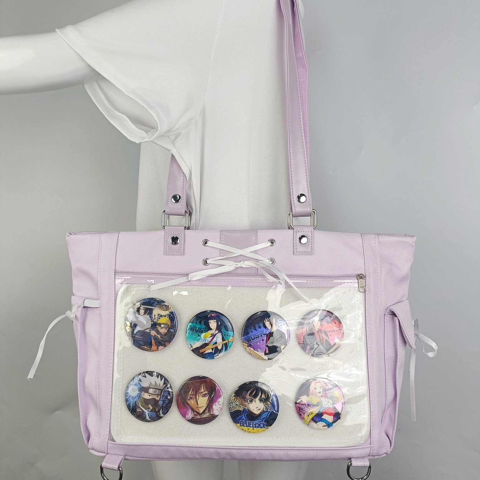 Ribbon Ita Backpack with Clear Window and Included Insert for Plushies and Pins is designed to display plushies, dolls, pins, and badges while keeping everyday essentials organized.