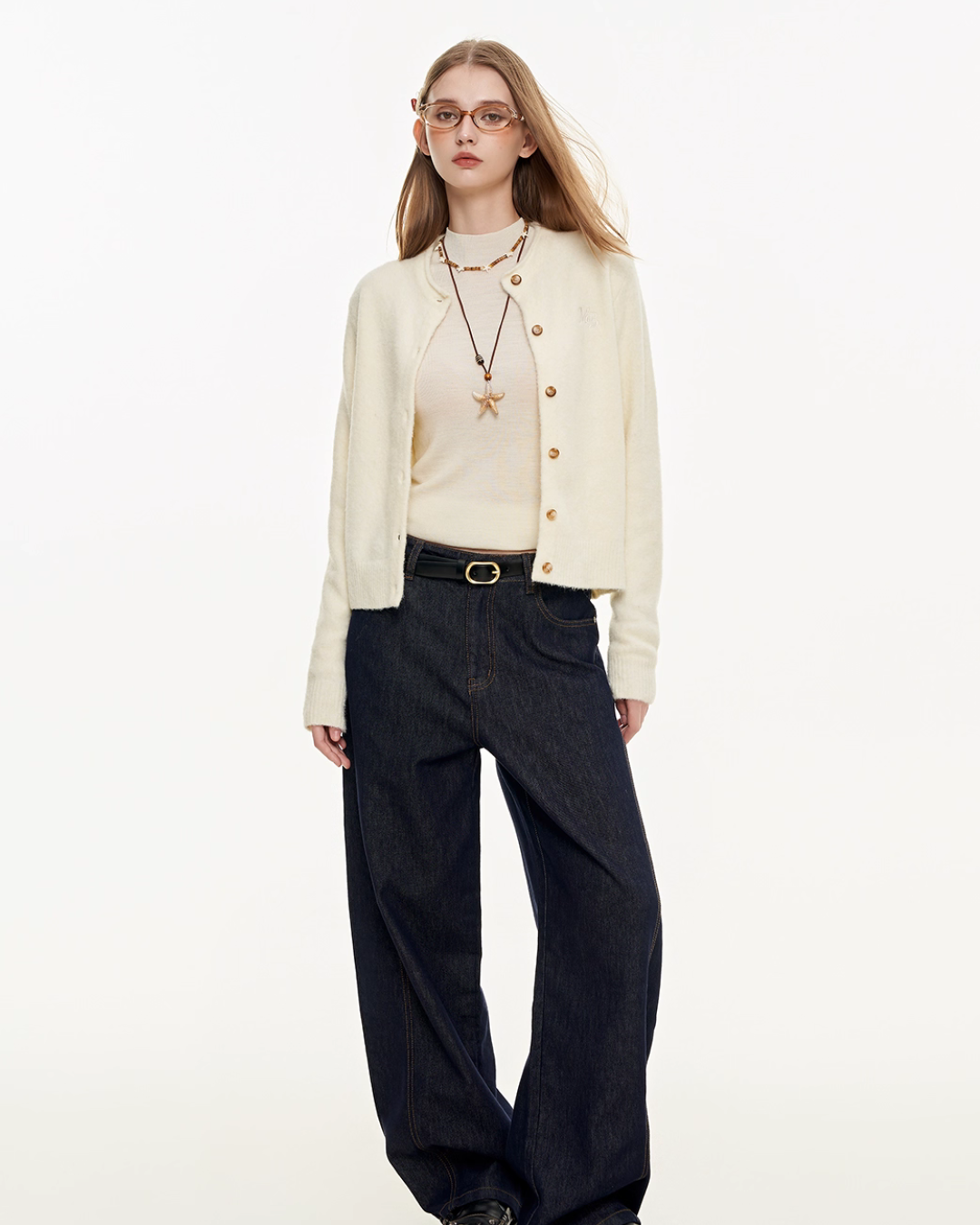 A knit cardigan that accommodates a wide range of styles from casual to feminine.