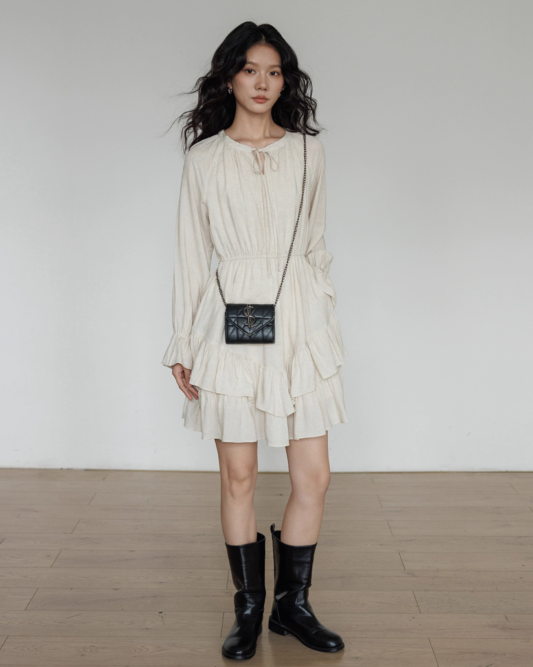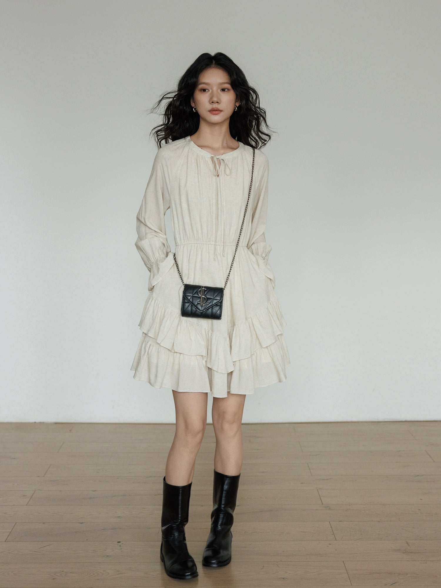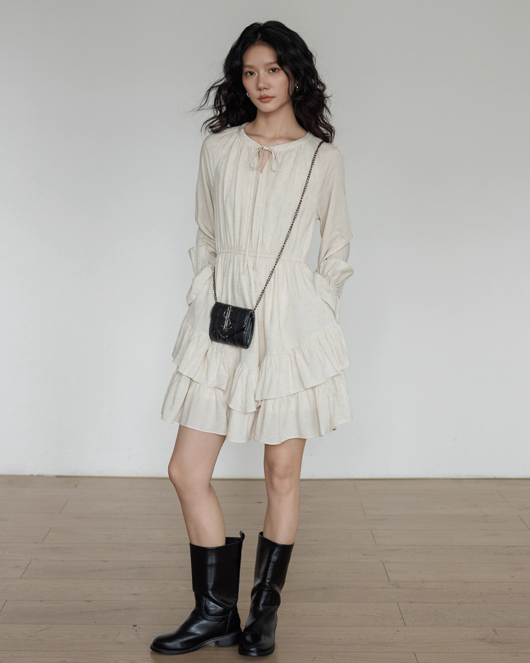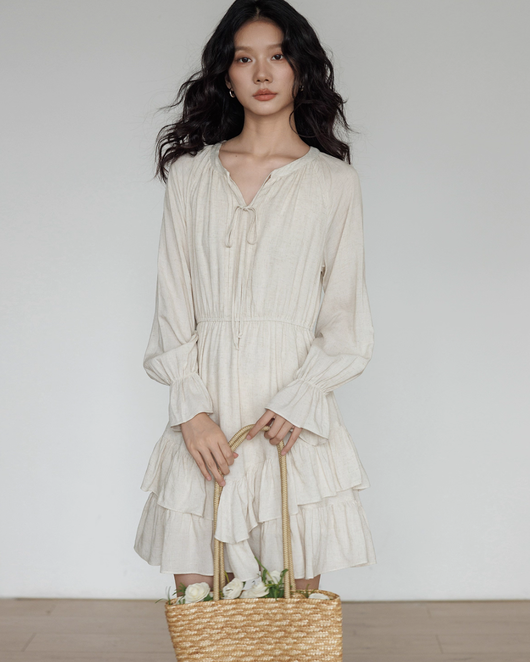 A one-piece dress with a natural and clean feel, creating an adult girly atmosphere.