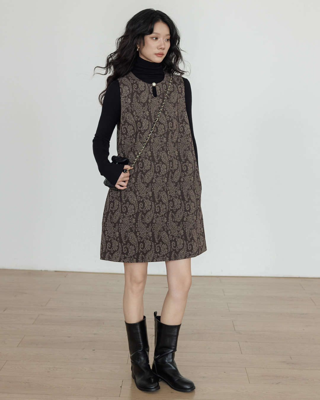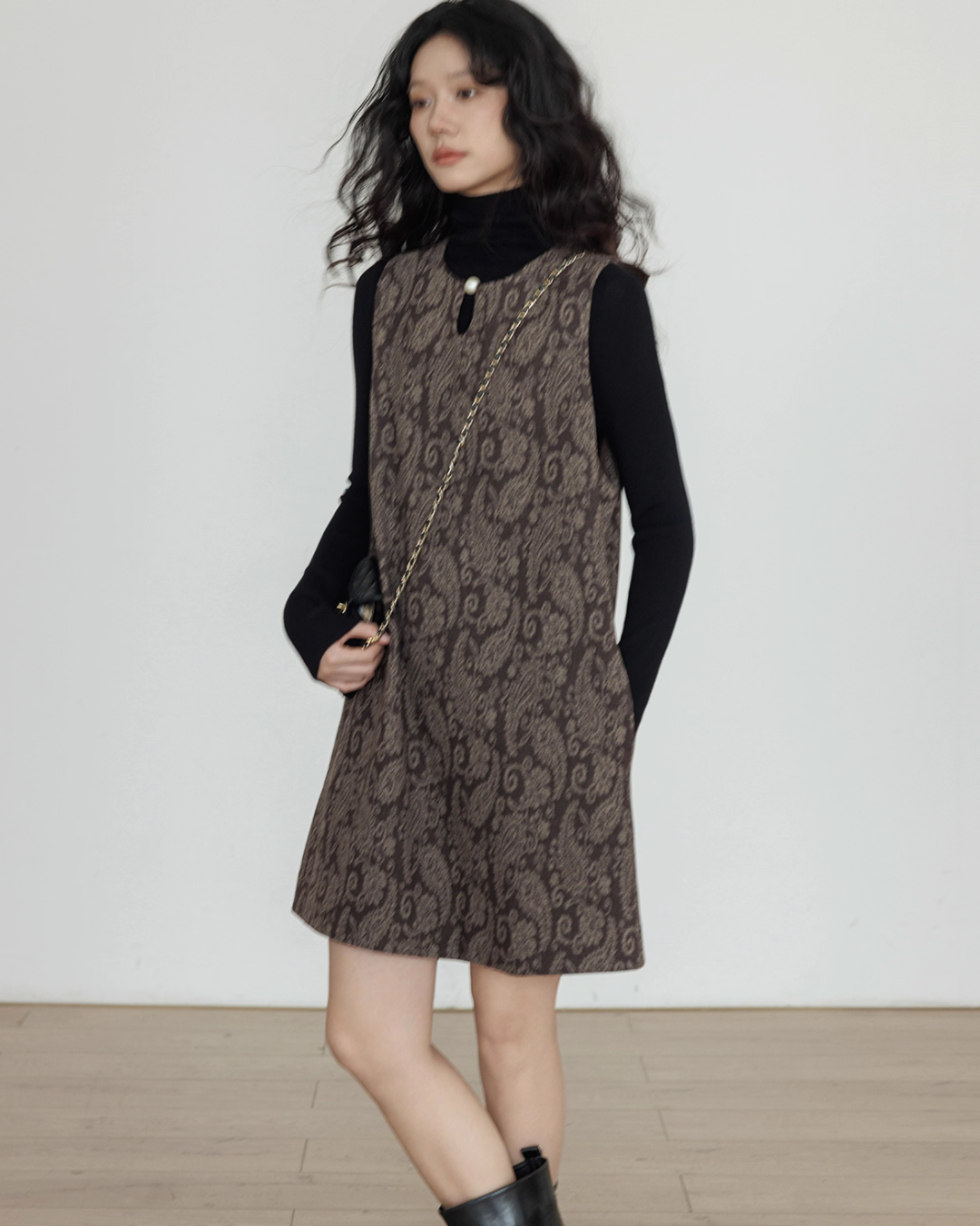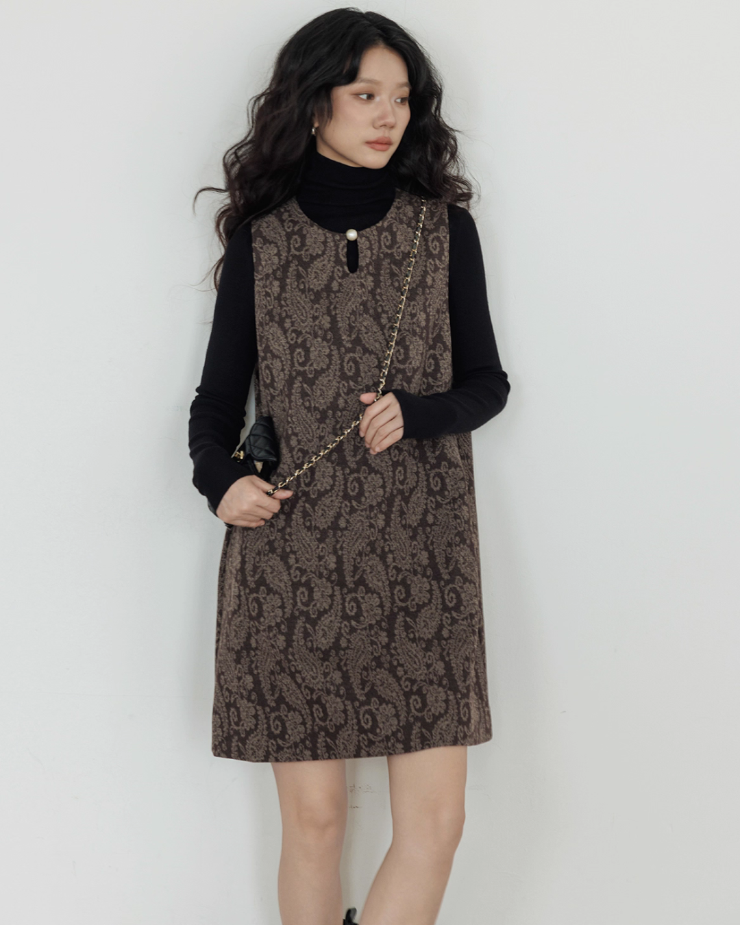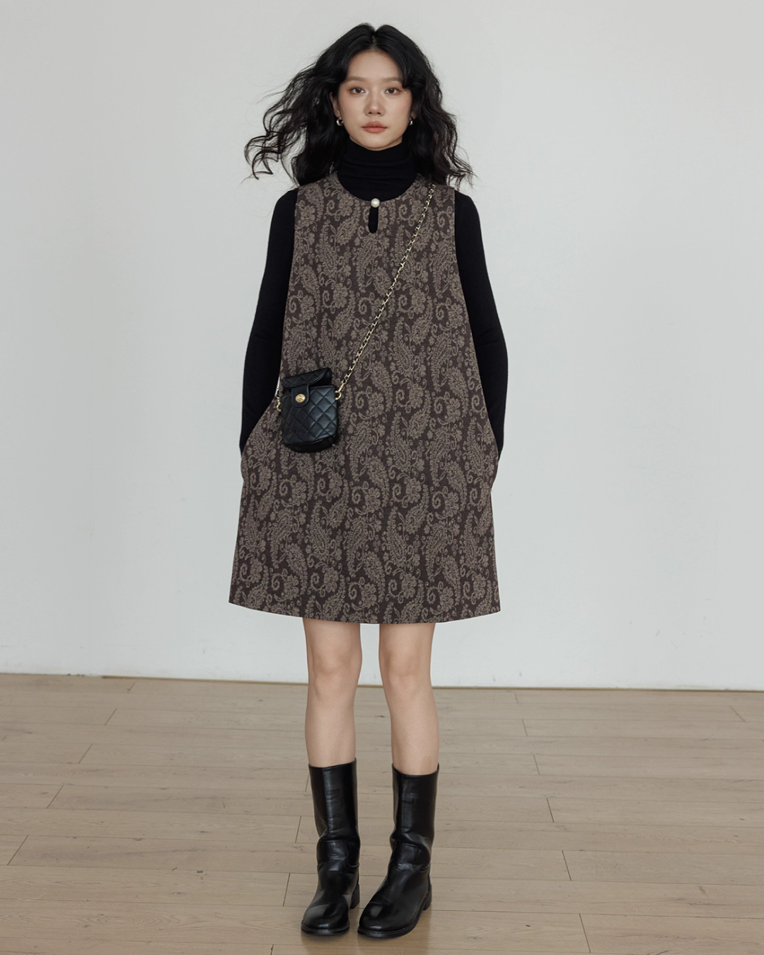 A jumper skirt with a classical expression featuring a paisley pattern.