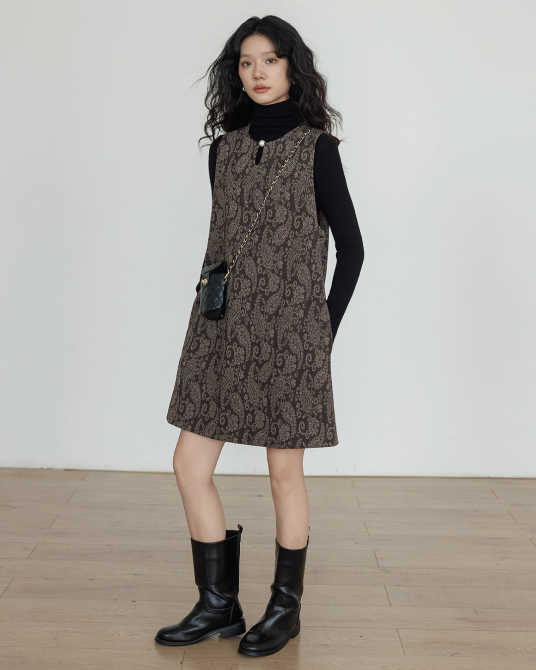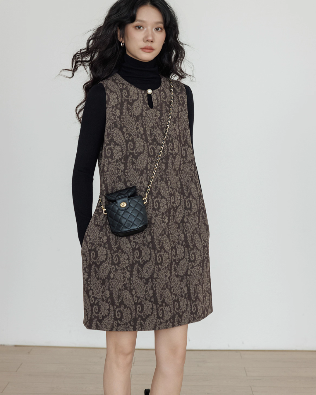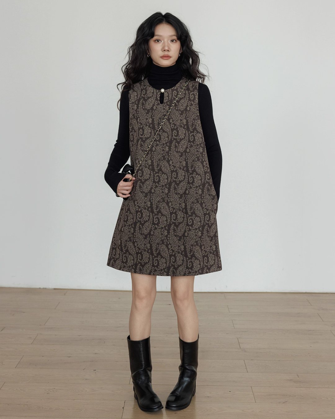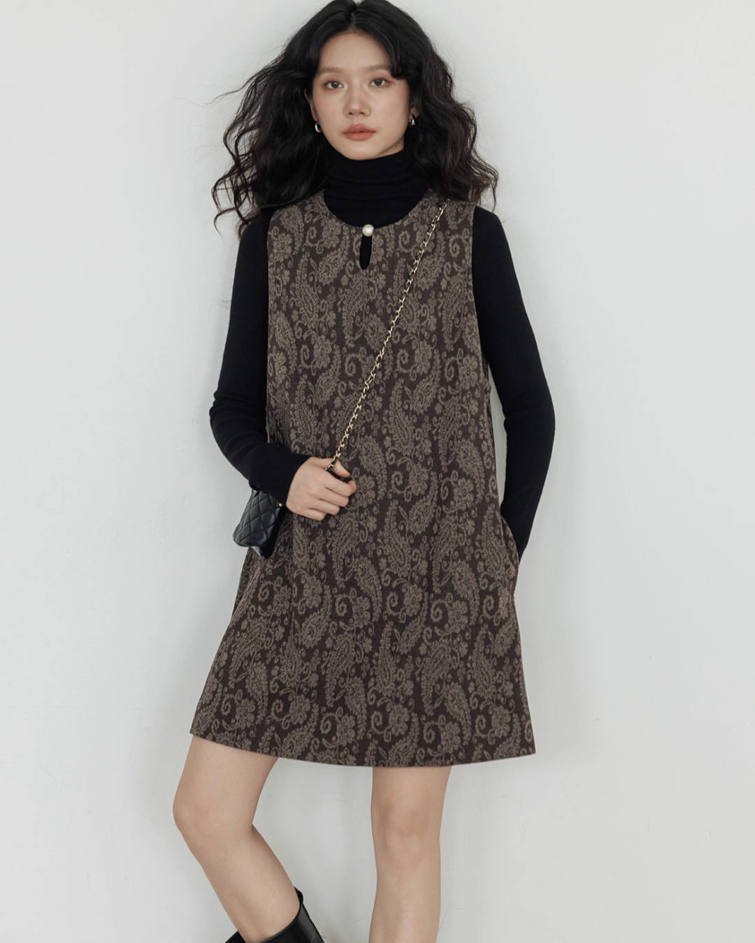 A jumper skirt with a classical expression featuring a paisley pattern.