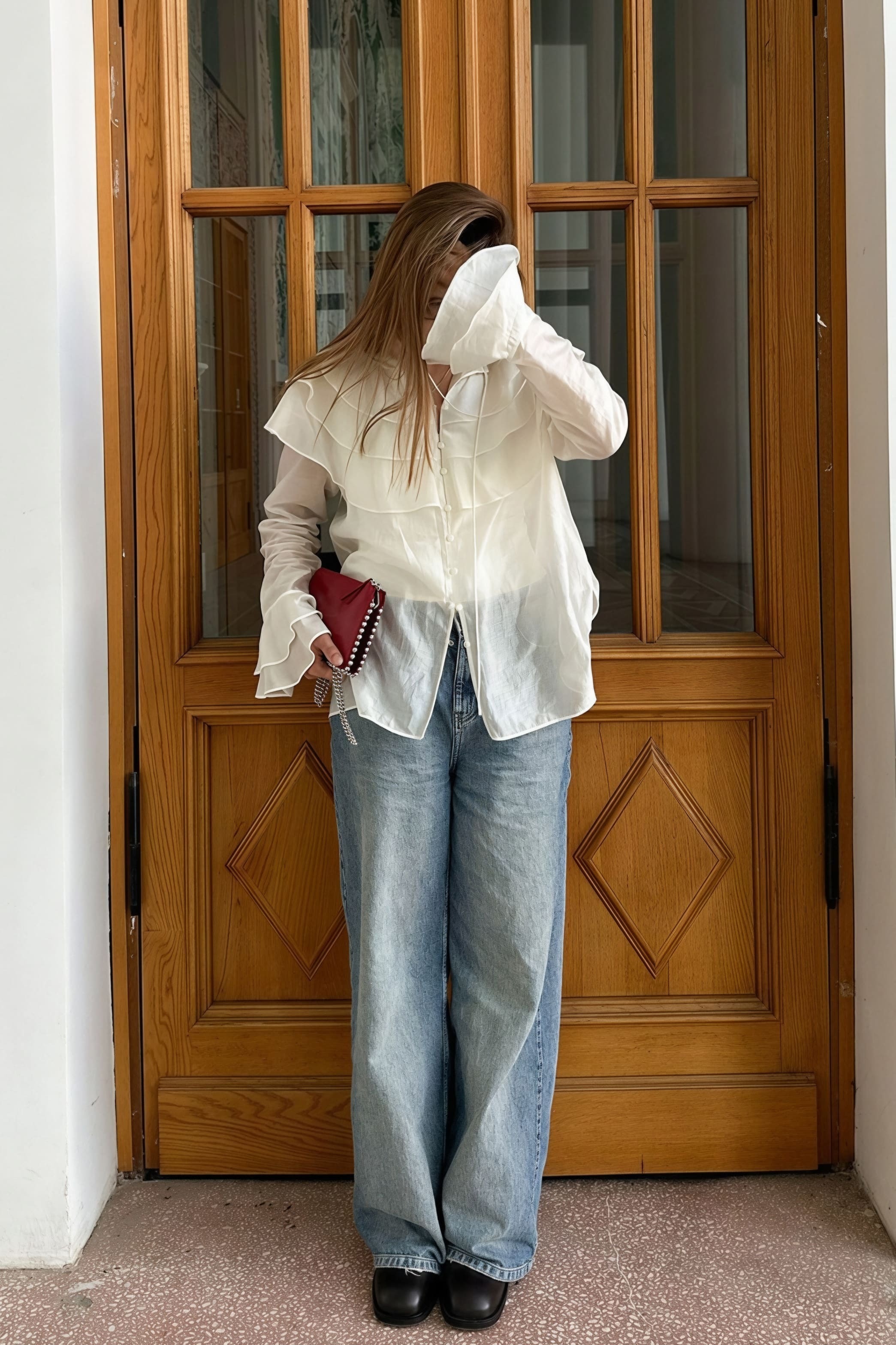 Ruffled Flare Sleeve Tencel Chiffon Blouse