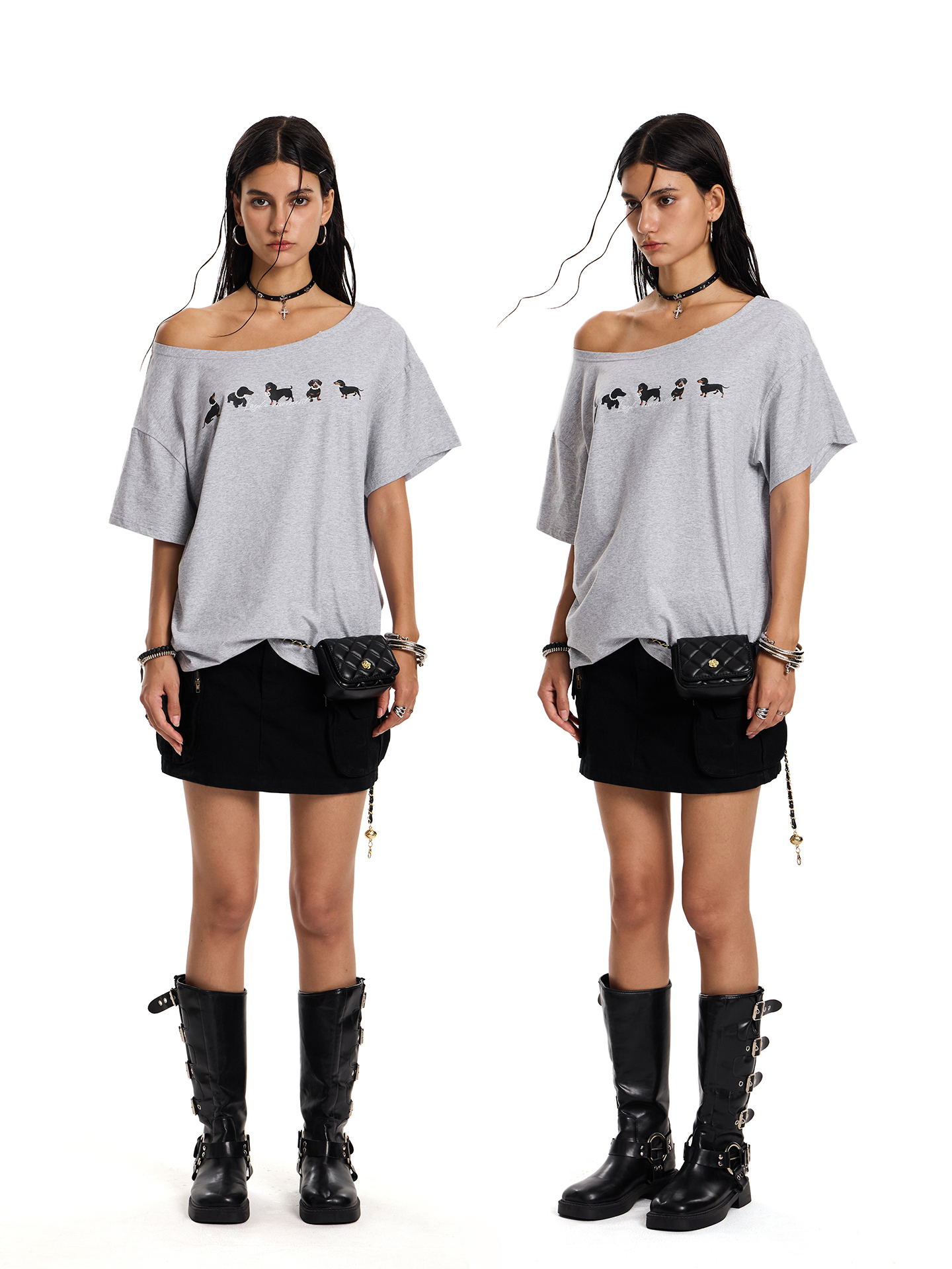 Elevate your summer wardrobe with our Sausage Dog Off-Shoulder Short Sleeve T-Shirt, designed for the ultimate blend of comfort and style. This loose-fit, slimming top features a playful sausage dog print, perfect for those embracing Y2K and casual aesthetics. Its off-shoulder design adds a touch of flirty charm, making it ideal for sunny days out or relaxed gatherings. Don’t miss out on this must-have addition add it to your cart today and step out in style!