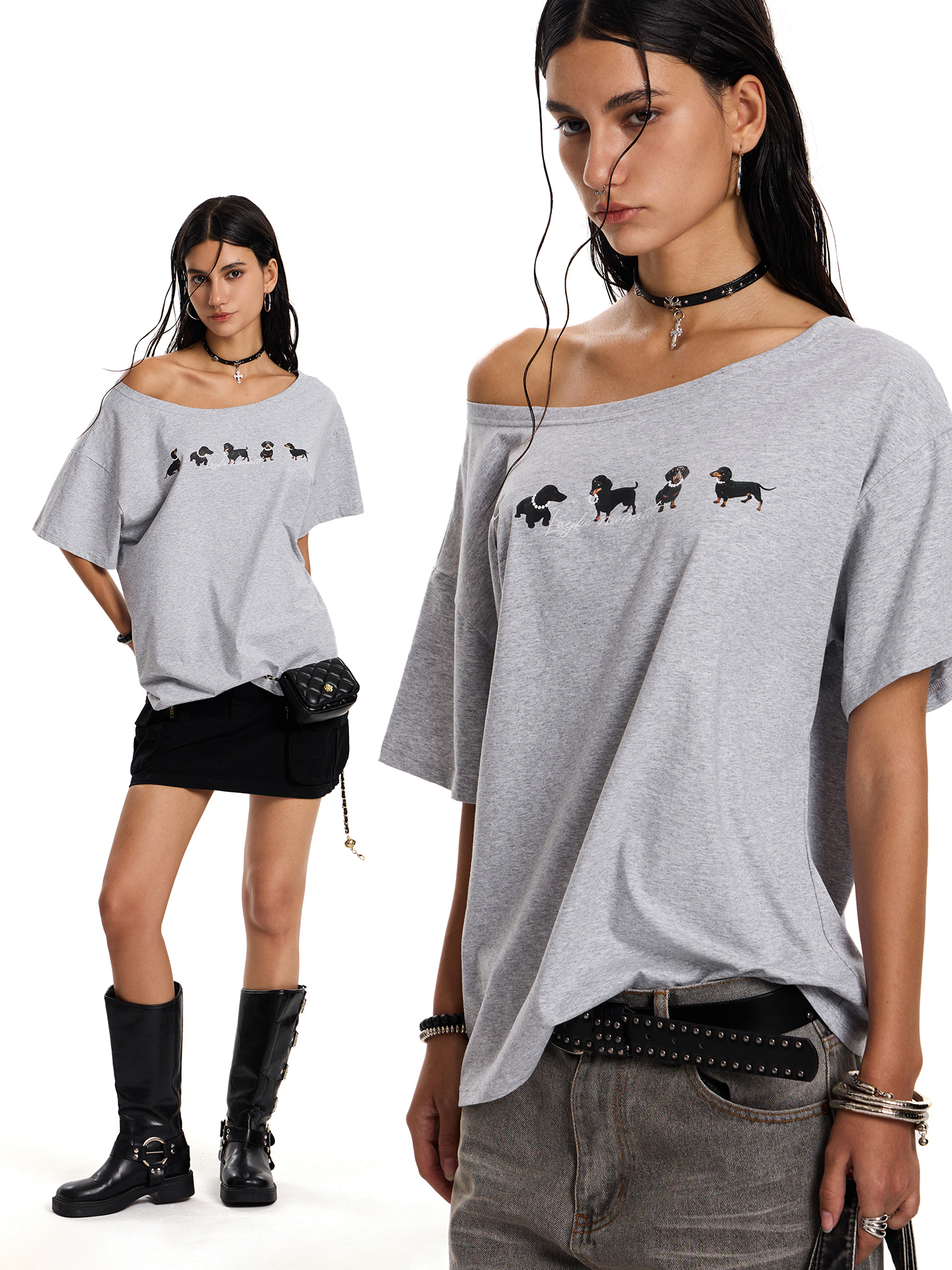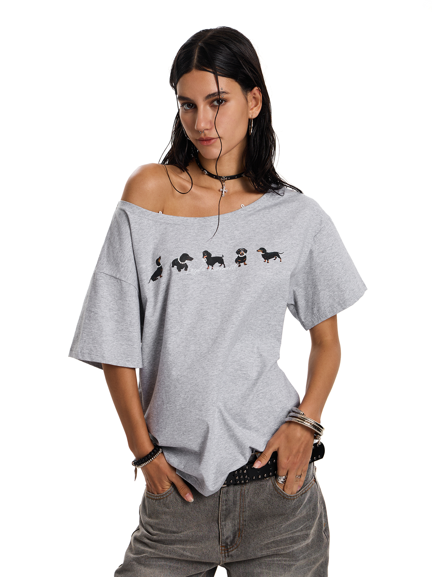 Be the first to review “Sausage Dog Off Shoulder Short Sleeve Summer Loose Fit Printed Top Y2K, Casual” Cancel reply