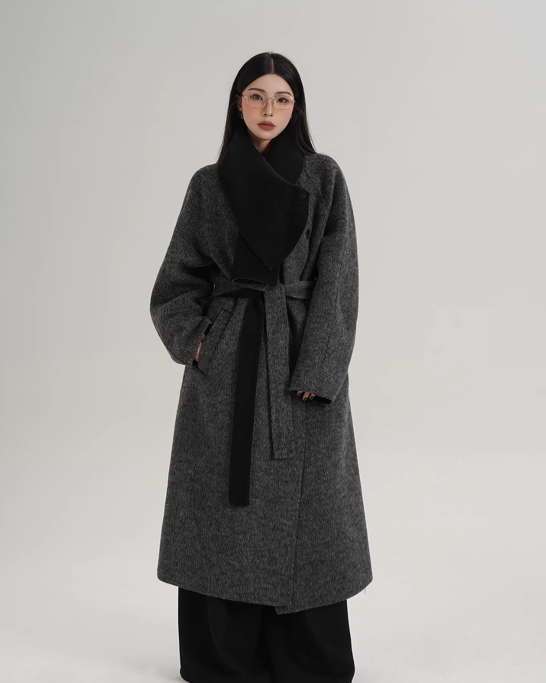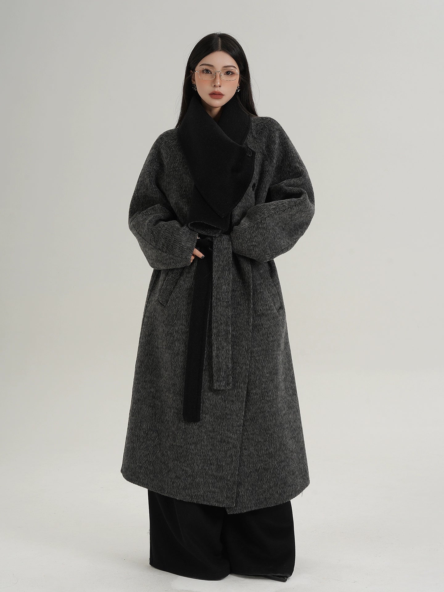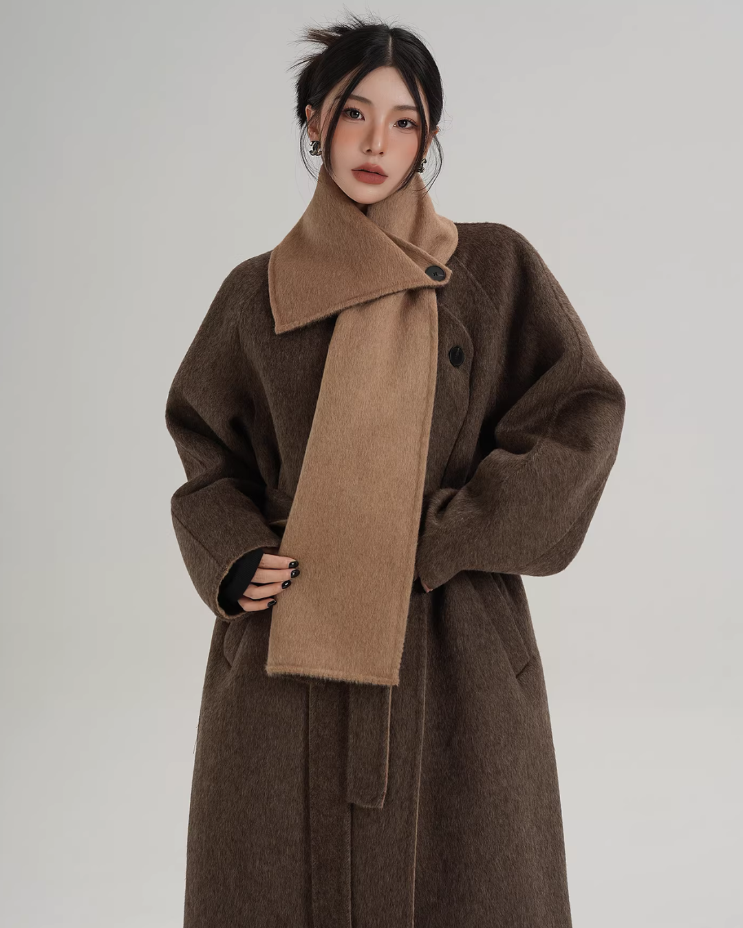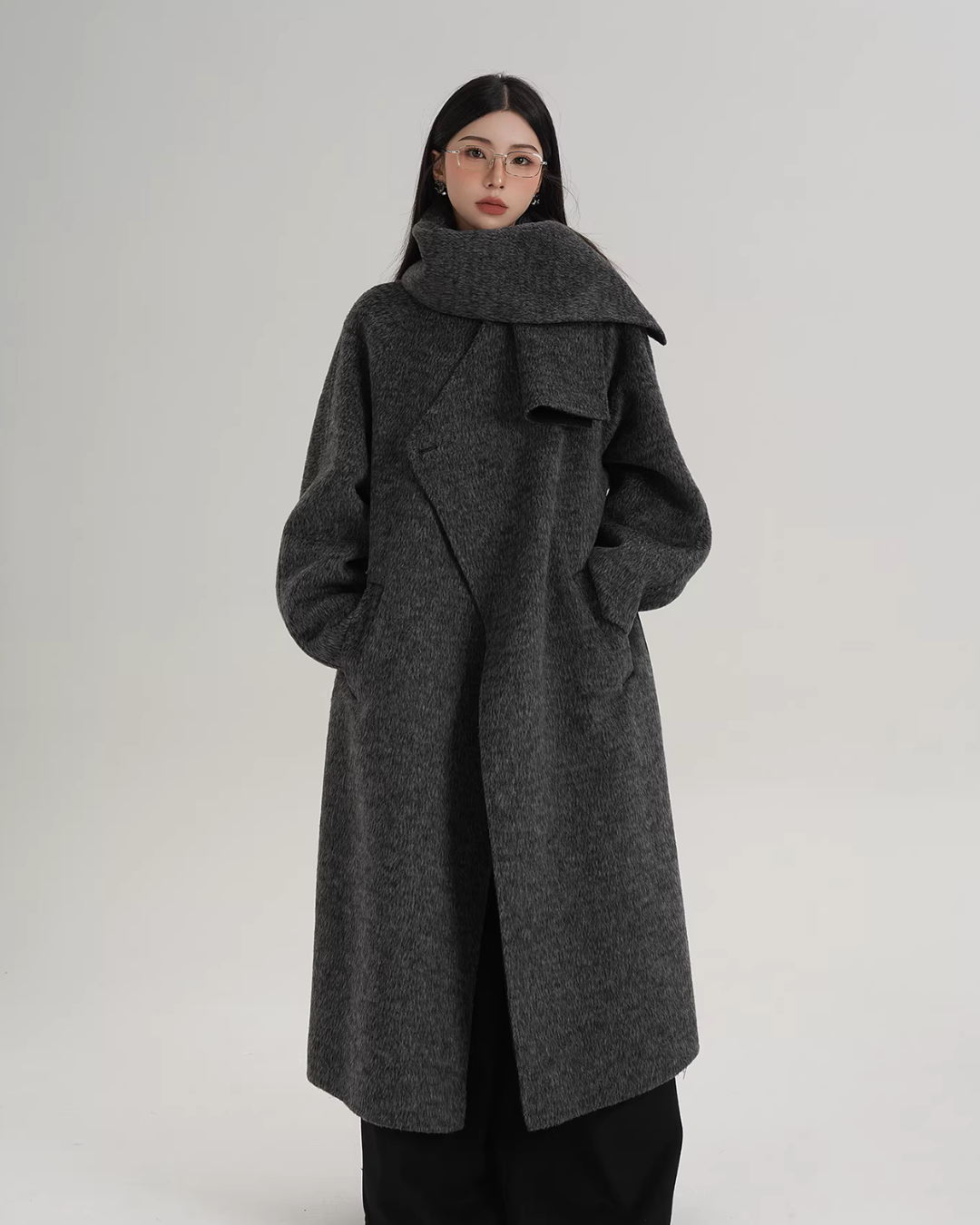 A long coat that can instantly complete an adult casual coordinate with a muffler design.