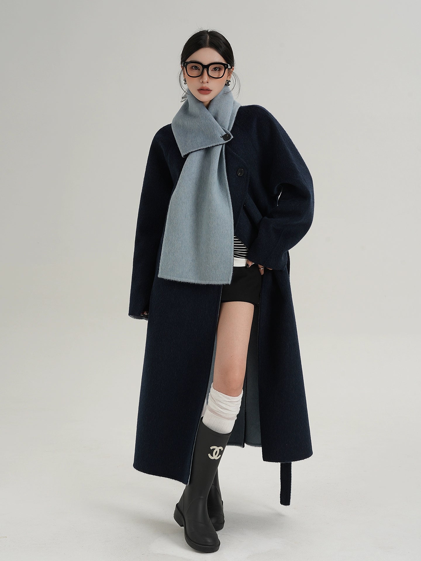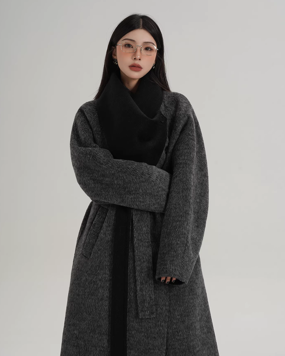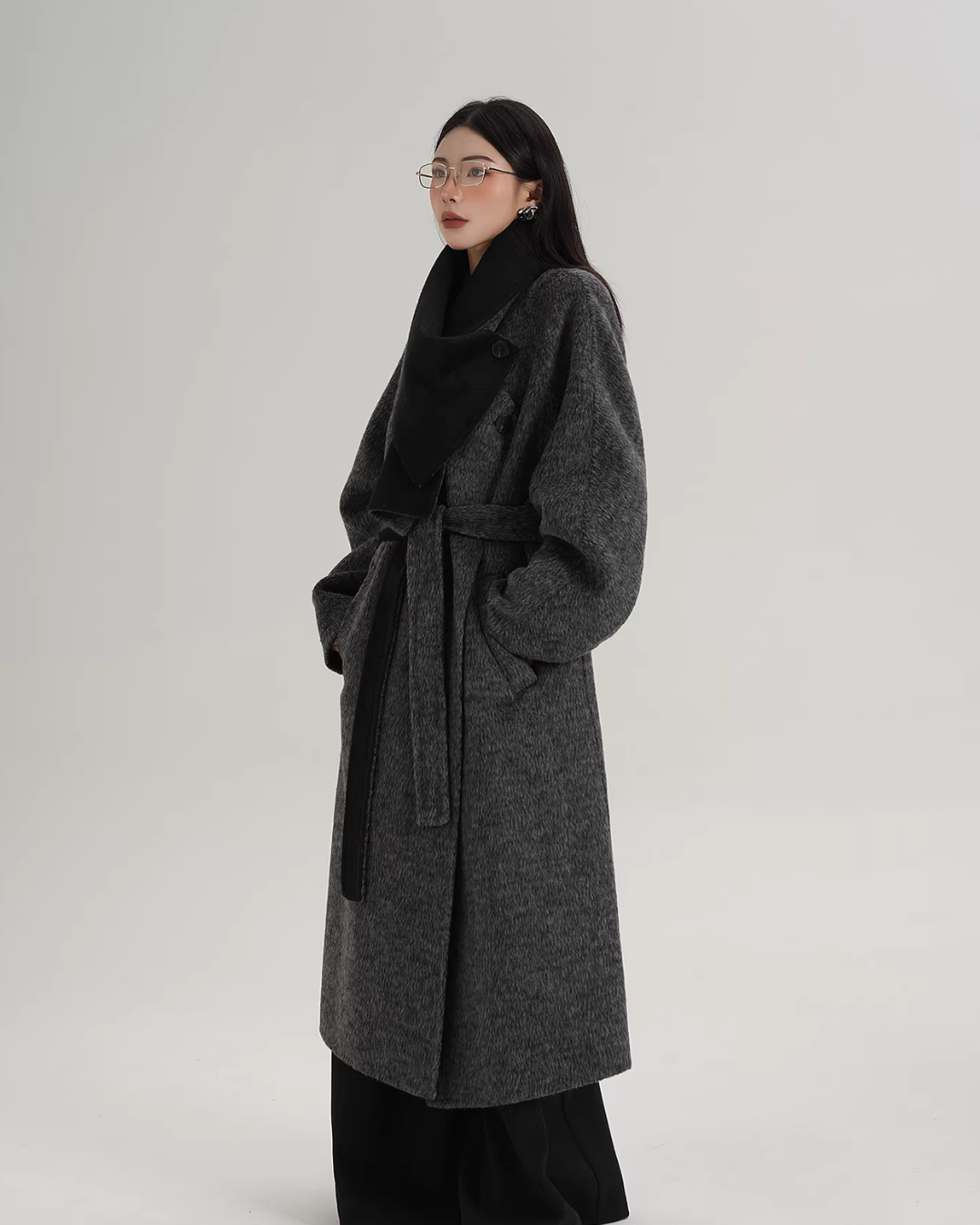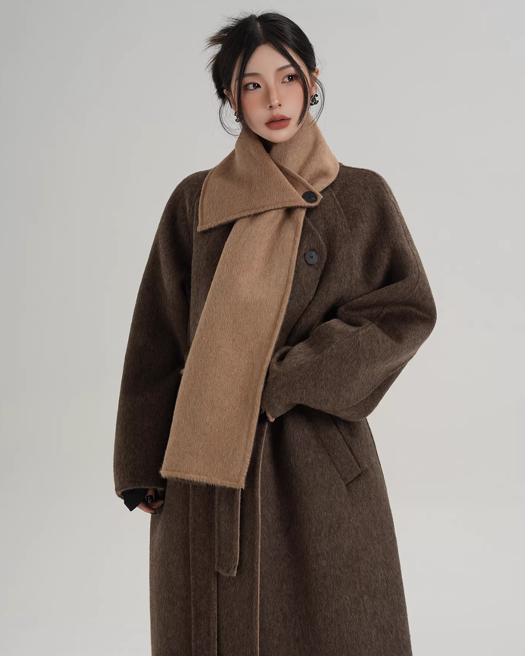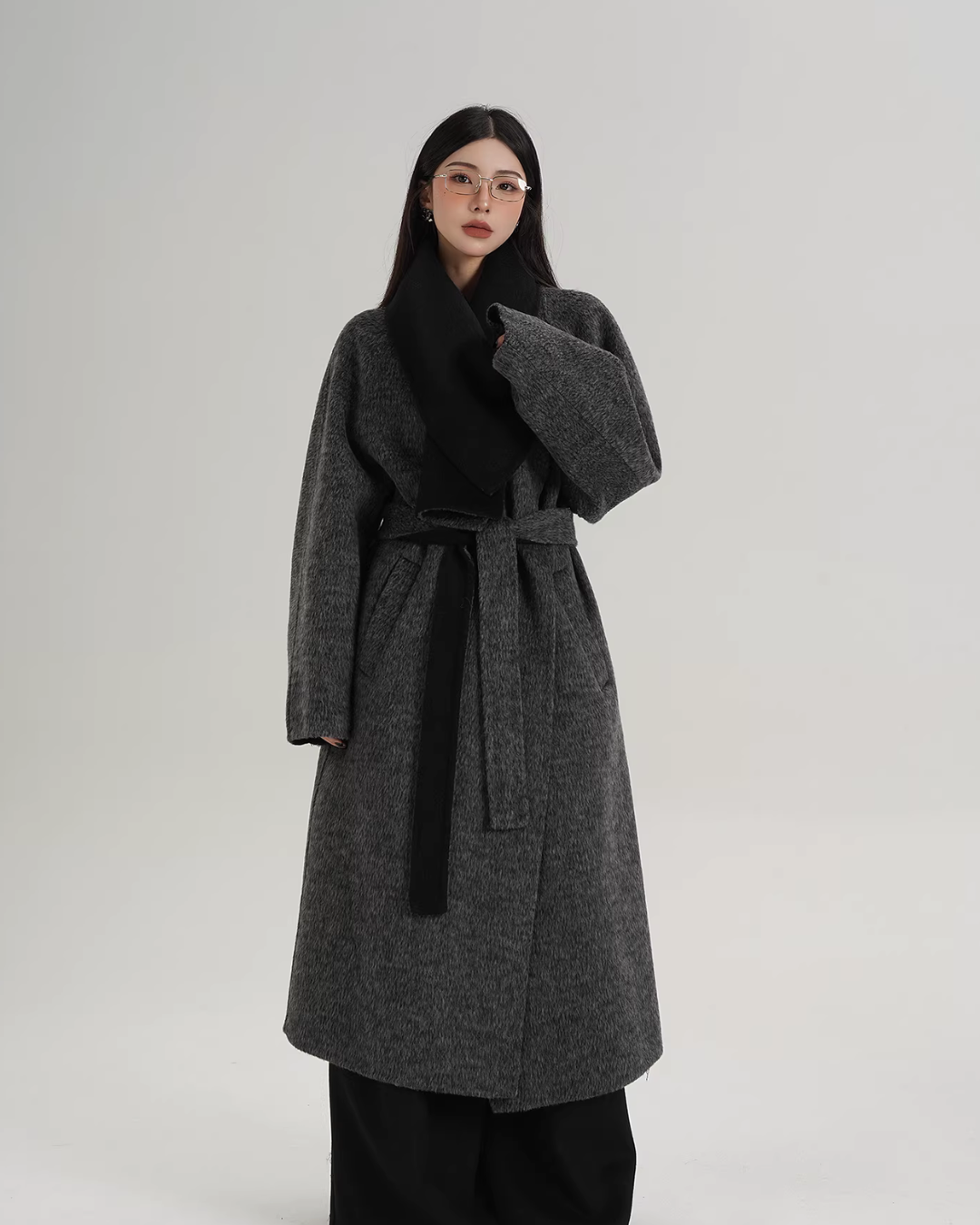 A long coat that can instantly complete an adult casual coordinate with a muffler design.