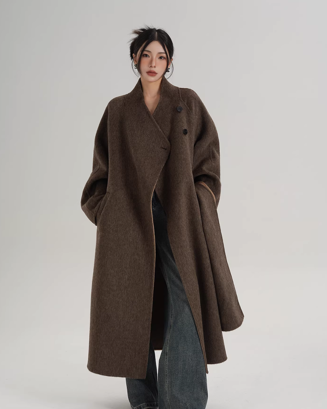 Just by throwing it over a basic coordinate, it creates a stylish outfit.