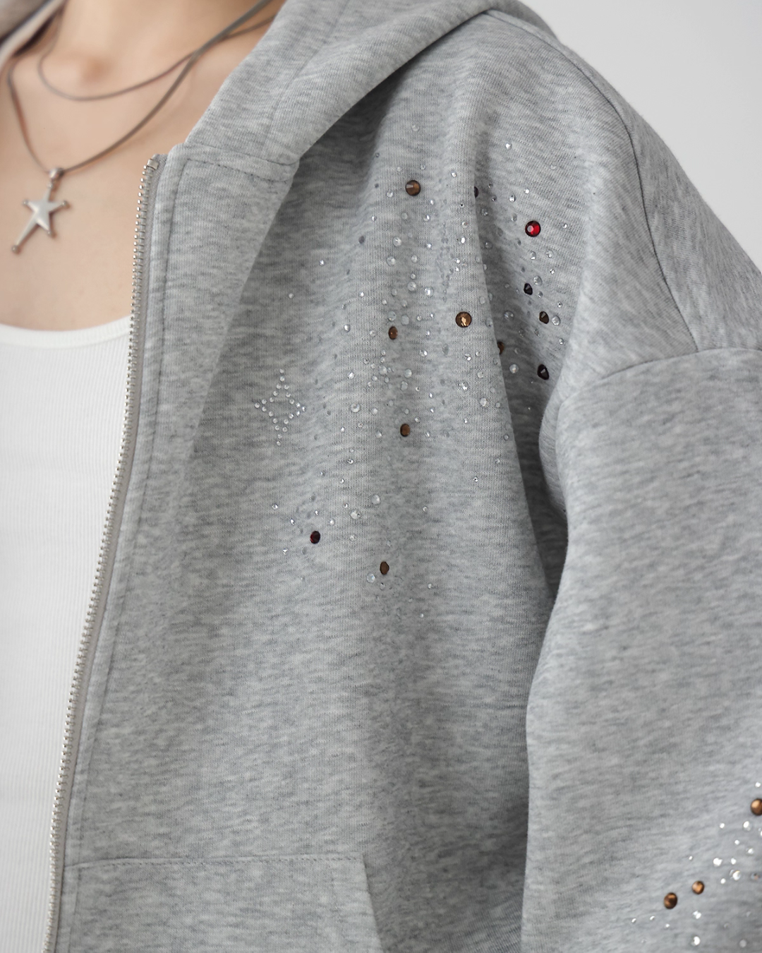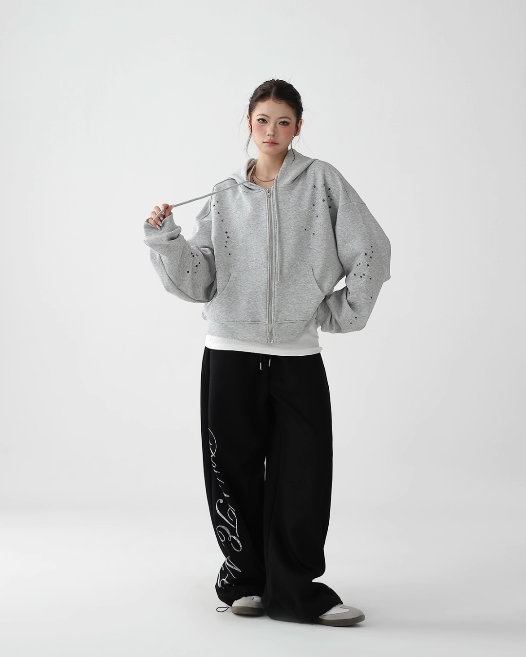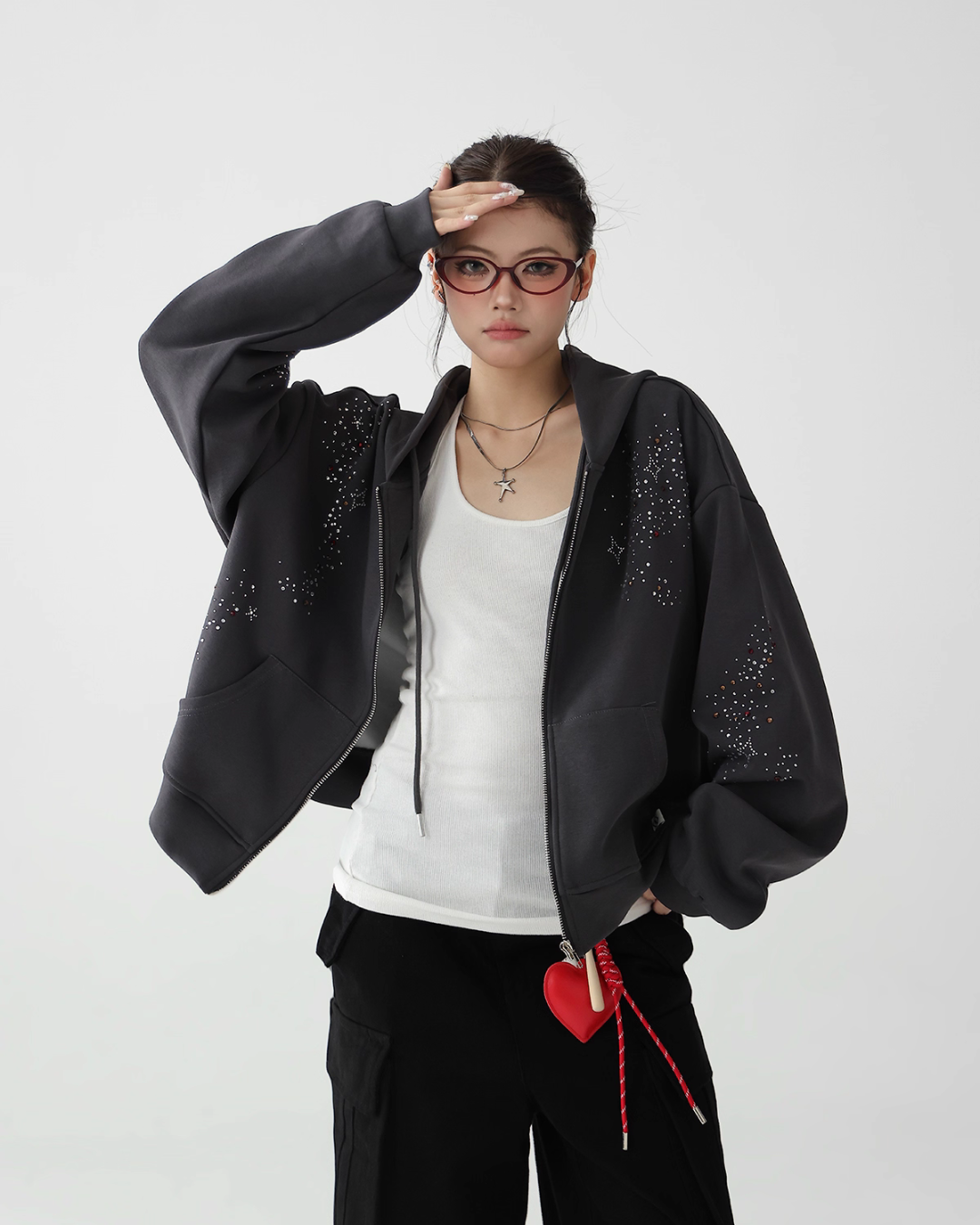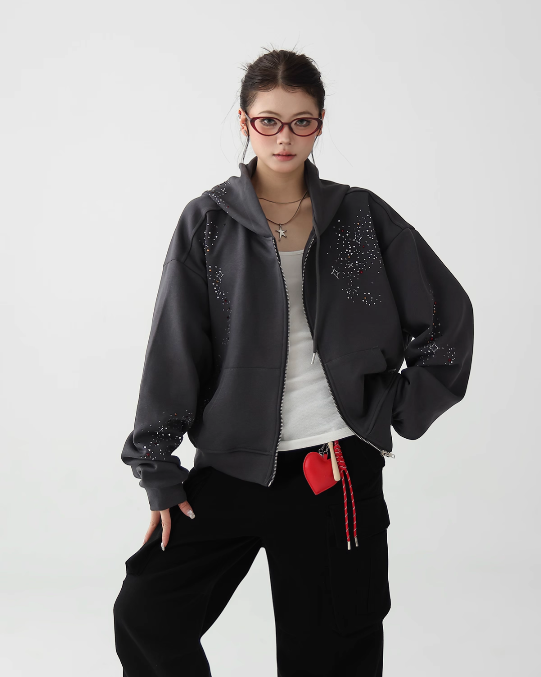A cute zip hoodie with a playful sequin design.