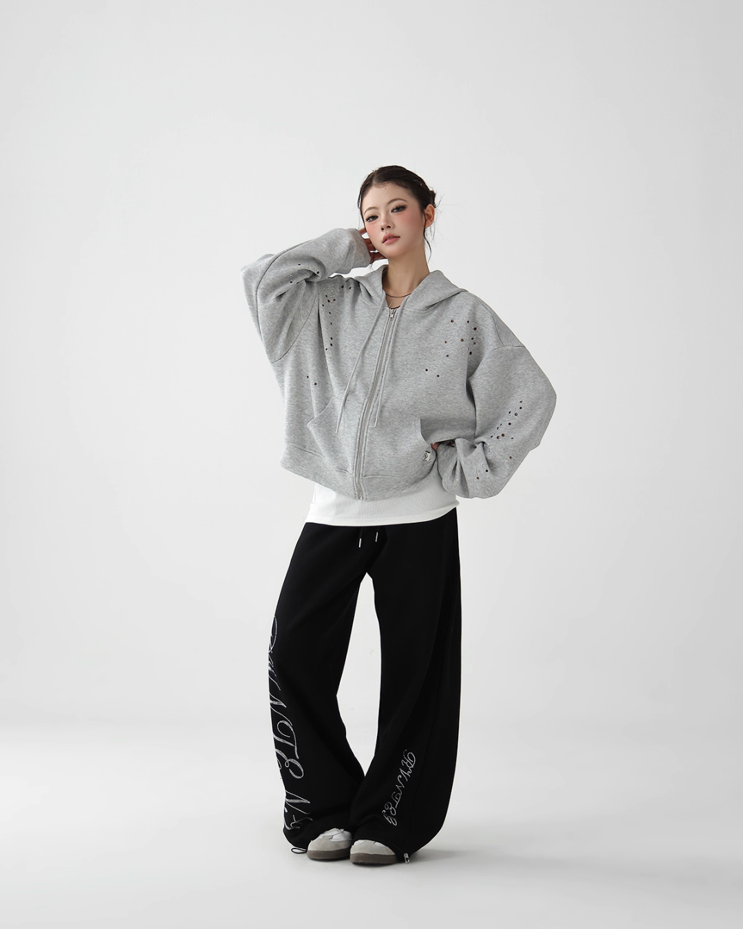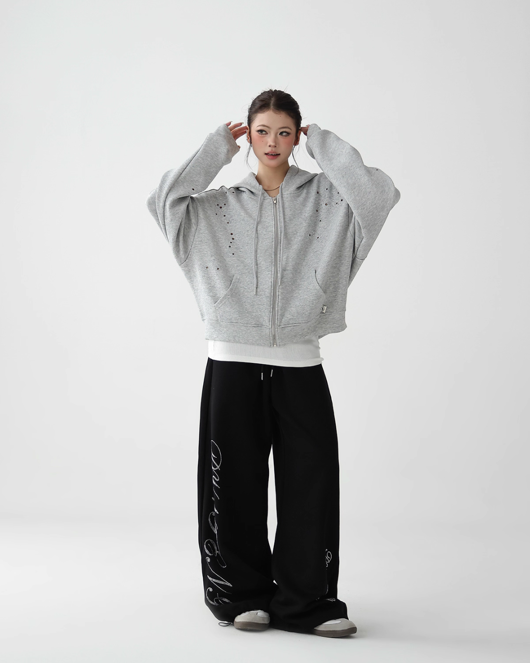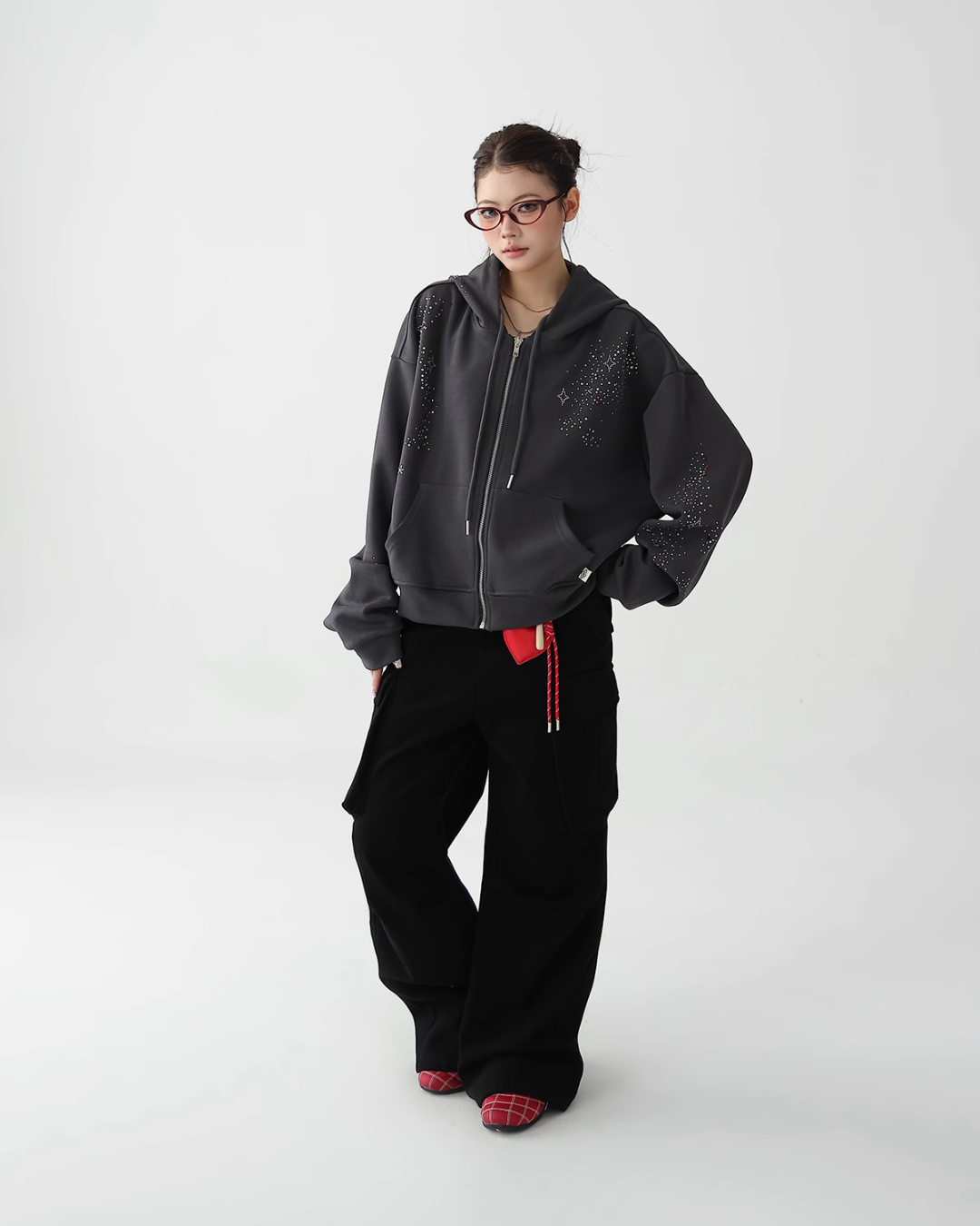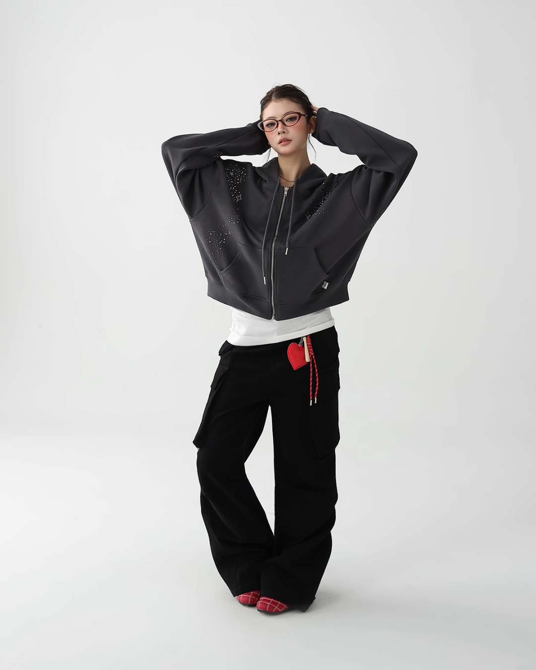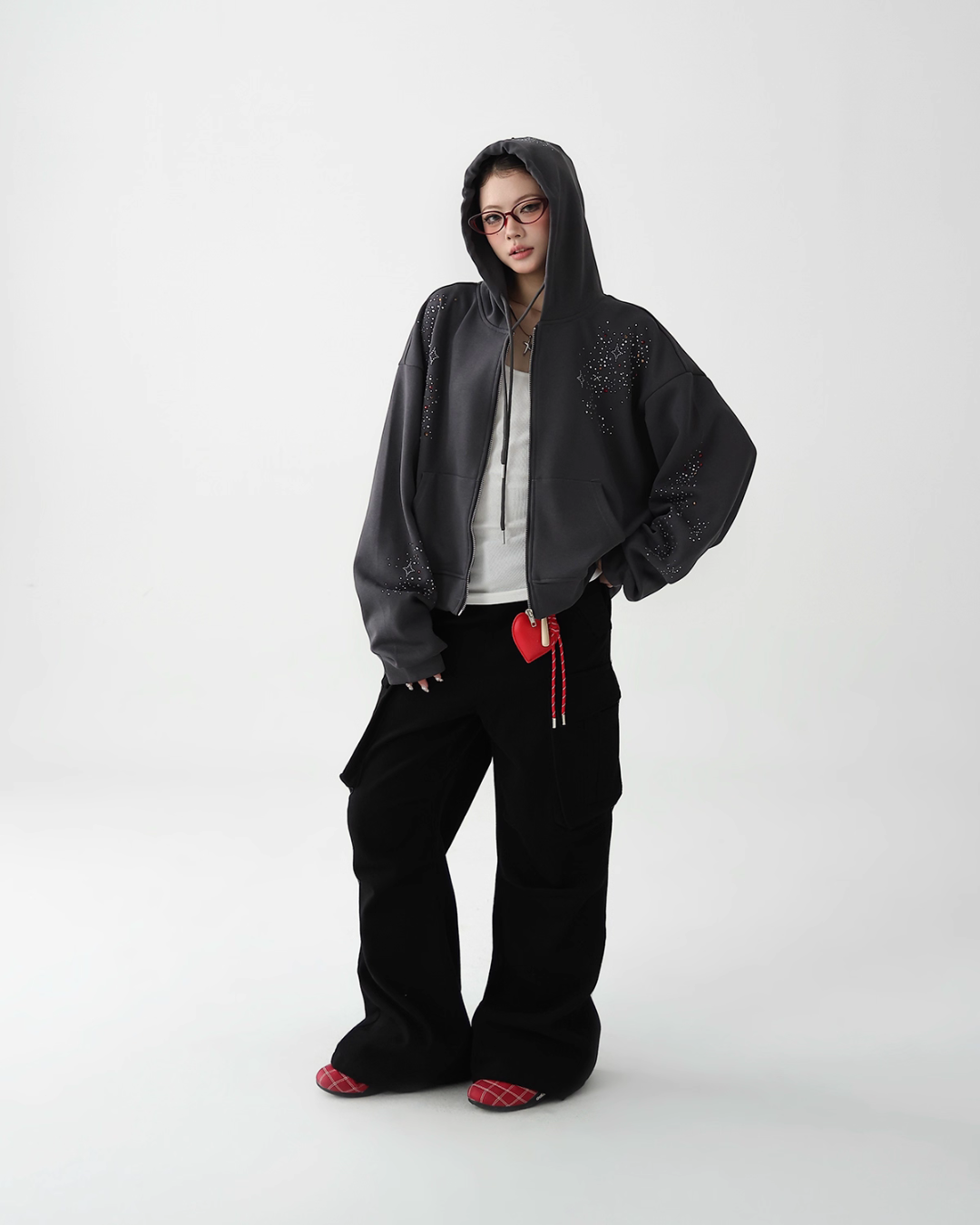 A cute zip hoodie with a playful sequin design.