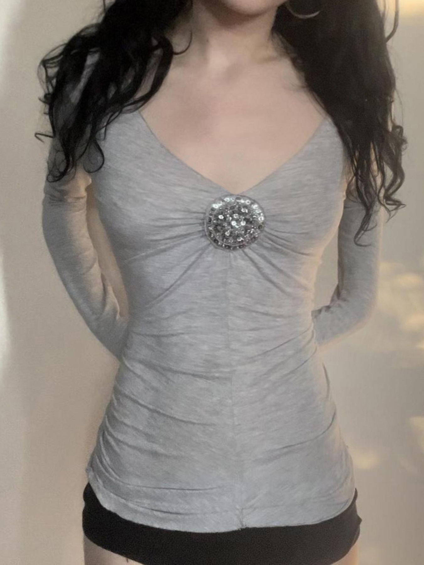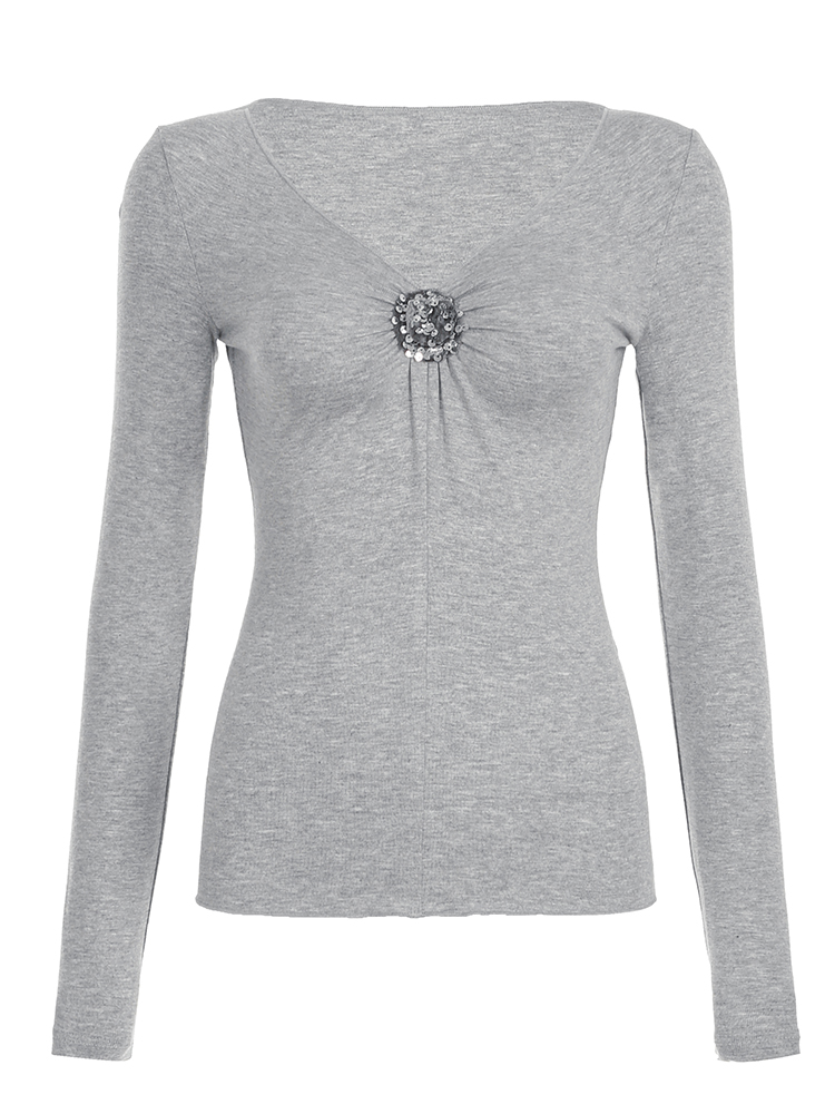 Elevate your wardrobe with our Sequin Flower Patchwork V-Neck T-Shirt, a chic blend of solid color and 90s-inspired flair. This slim-fit knitted top features stunning sequin embellishments that add a touch of sparkle to any outfit, making it perfect for both casual outings and dressy occasions. Its versatile design ensures you can easily pair it with jeans, skirts, or shorts for a stylish look. Don’t miss out on this must-have piece add it to your cart now and shine in every setting!