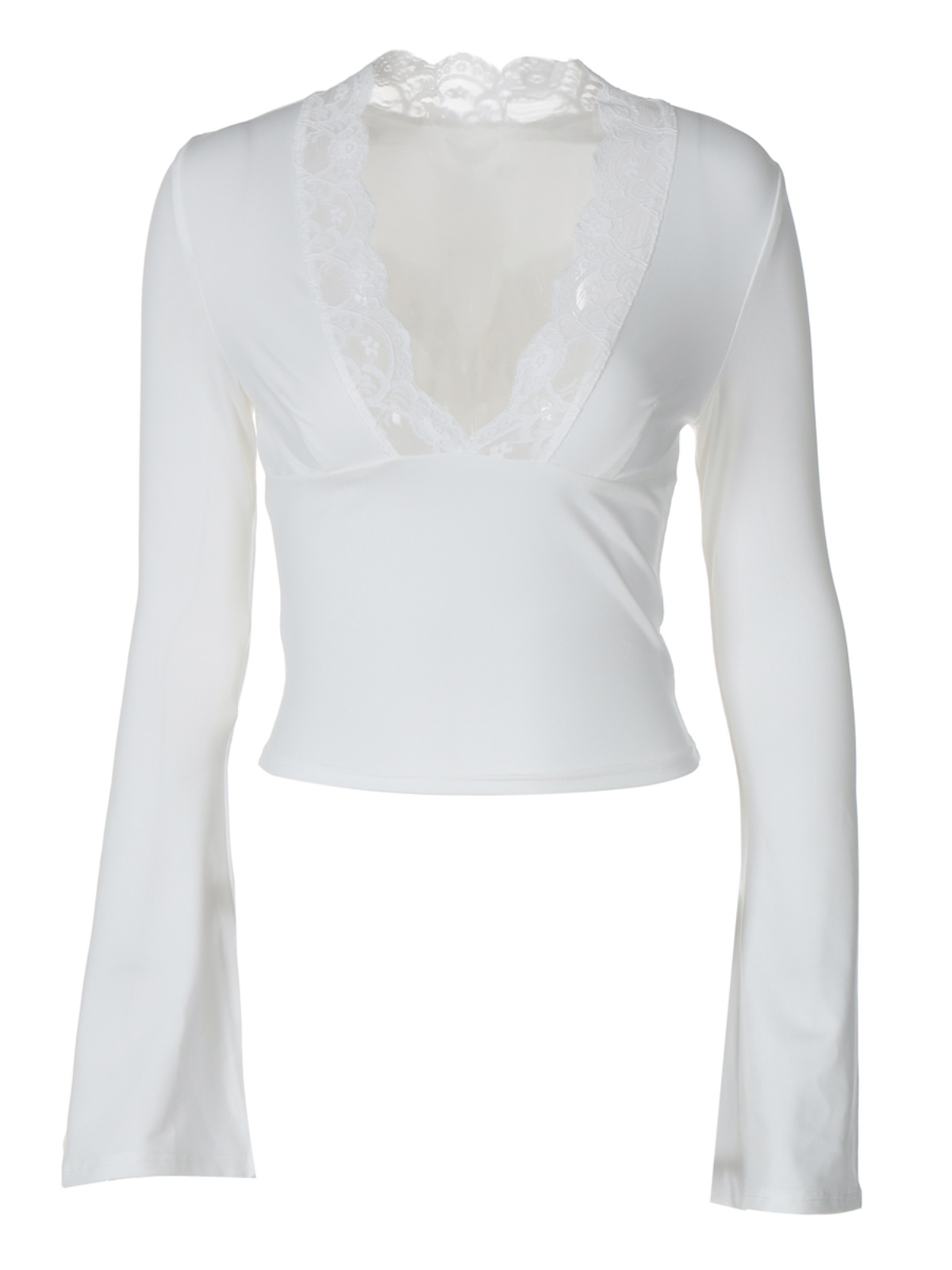 Be the first to review “Deep V- Neck Lace Flared Long Sleeve Women Solid Slim Fit Top, European, Y2K” Cancel reply